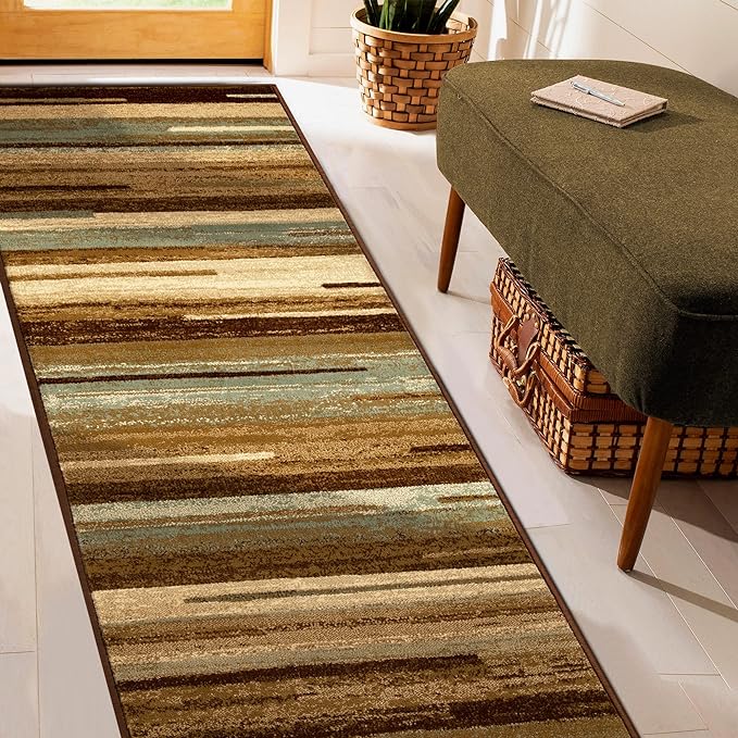 The perfect contemporary touch, the Superior Fulgor Contemporary Abstract Lines Indoor Area Rug or Runner is sure to light up any family-friendly room in your home with its unique stripe pattern. The Polypropylene construction is incredibly durable while being soft and comfortable. This beautiful area rug can handle the most frequented indoor areas of your home, including the kitchen, family room, basement, and entryway. This rug features modern lines in a stunning artistic design. Finished with a well-made Jute backing, this rug is a long-lasting and durable option for homes with children and pets (rug pad recommended).