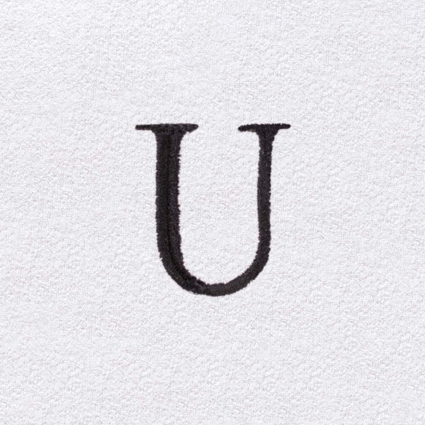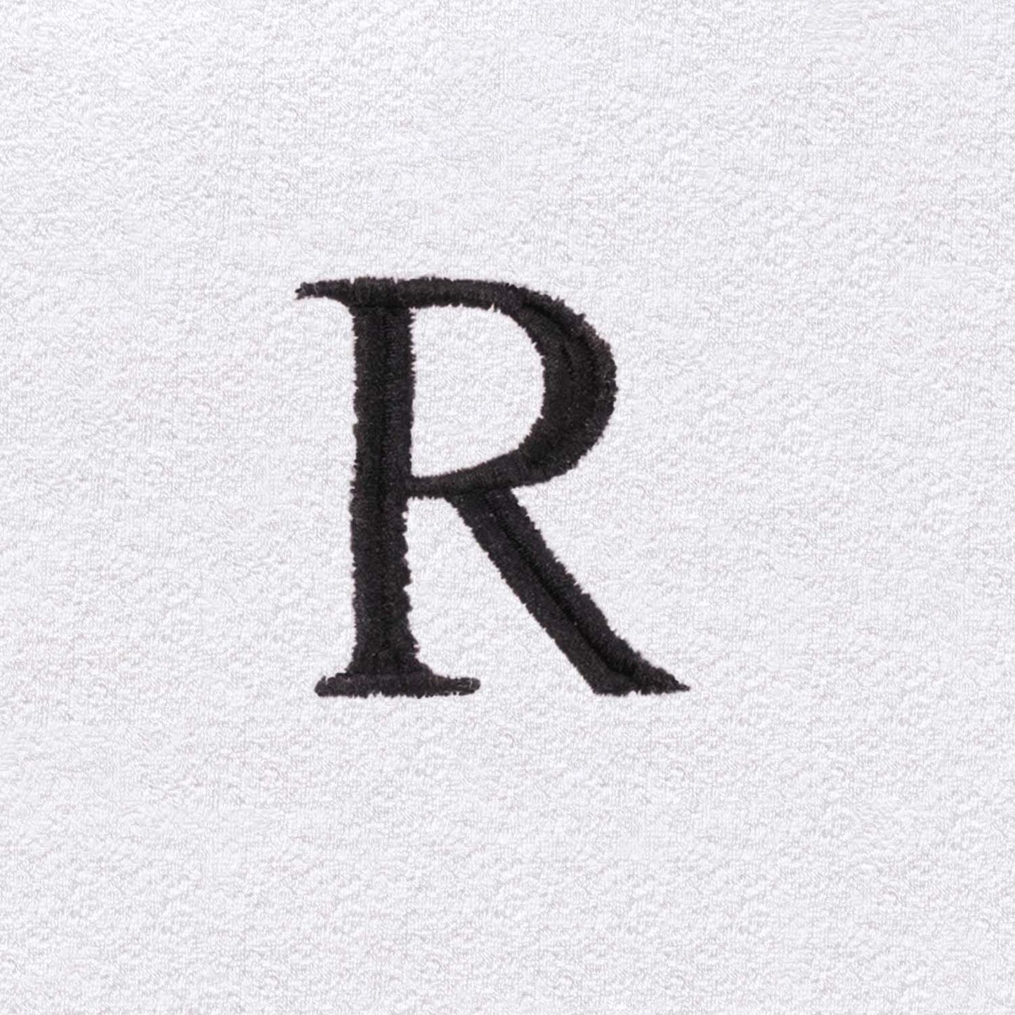 - Design Details: Solid white bathrobe with black piping and your choice of monogram: alphabet, His/Hers, Superior logo, or no monogram.