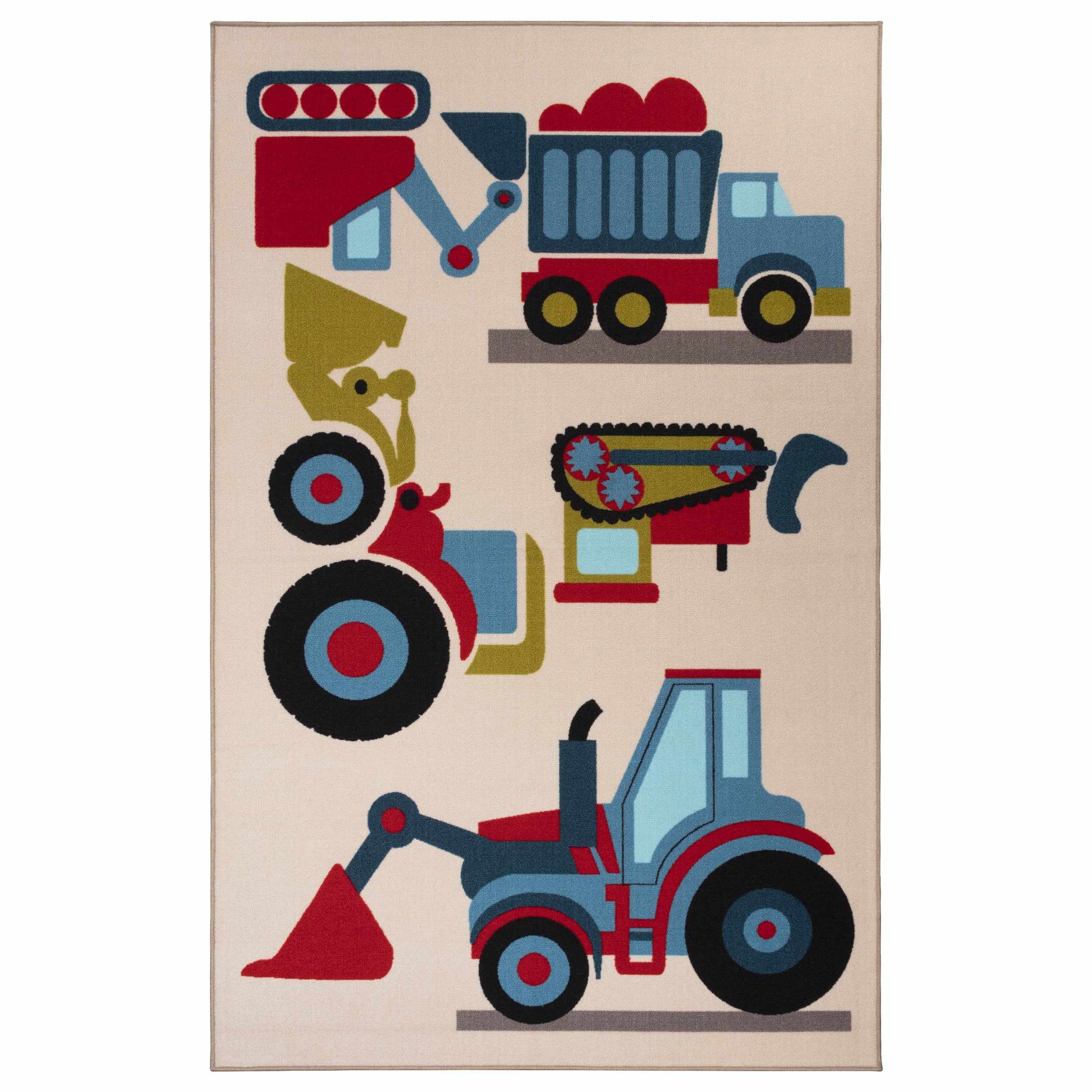 Your boys will love the Superior Country Trucking Non-Slip Kids Indoor Washable Area Rug. Well-made with premium, 100% Nylon fibers, and a soft 0.18" pile height, this rug can handle the most playful rooms of your home while remaining cozy underfoot. This vibrant rug gets kids engaged in play with its colorful work trucks. Shades of blue, red, green, and black drive over an ivory backdrop and will keep little ones learning and interacting. The Country Trucking rug's non-slip design is perfect for a bedroom, playroom, or classroom. For your convenience, this rug is easily rolled, machine washable, and non-slip, eliminating the need for a rug pad. This area rug is a desirable option if you are looking for outstanding value at an affordable price, which can only be found at Superior.