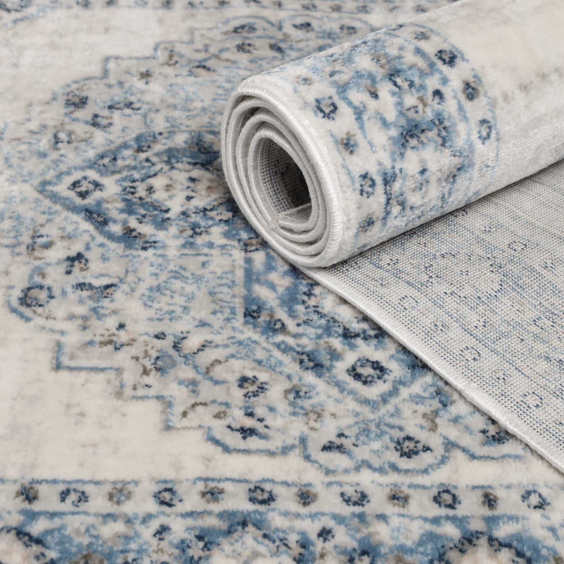• Colors: Available in Blue (with shades of Ivory and Grey), Grey (with shades of Ivory), and Taupe (with shades of Ivory and Cream) color options.