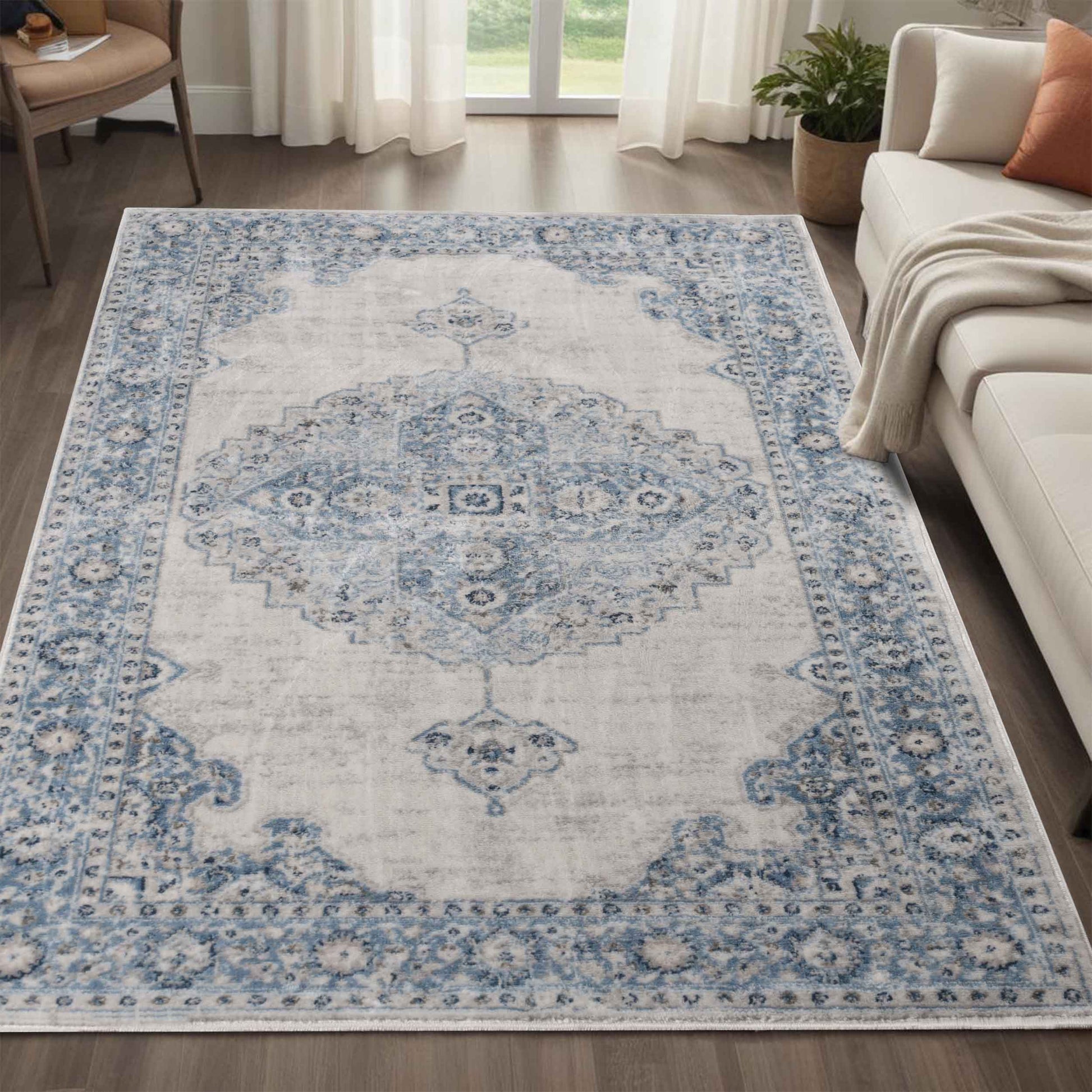Breathe life into your favorite space with our Demelza Indoor Area Rug. The carefully curated large-scale center medallion brings a sense of easygoing elegance to your favorite indoor living space. The polyester material is incredibly durable while remaining soft and comfortable. This practical and convenient rug boasts a low 0.20 inch pile height that is easy to clean, making it an ideal option for homes with children and pets. Available in an assortment of rectangular sizes, this rug lends a tailored and vintage-inspired finish to any space.