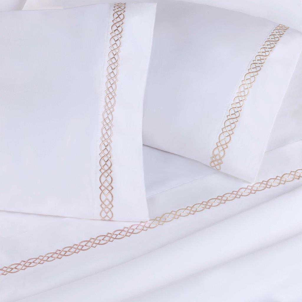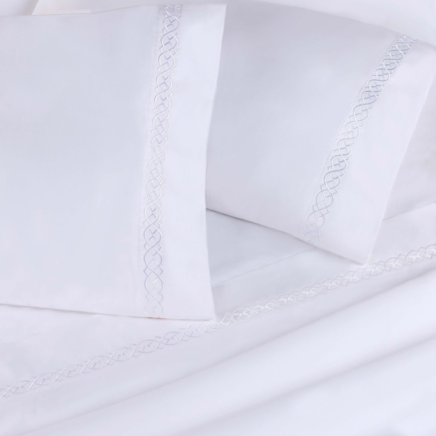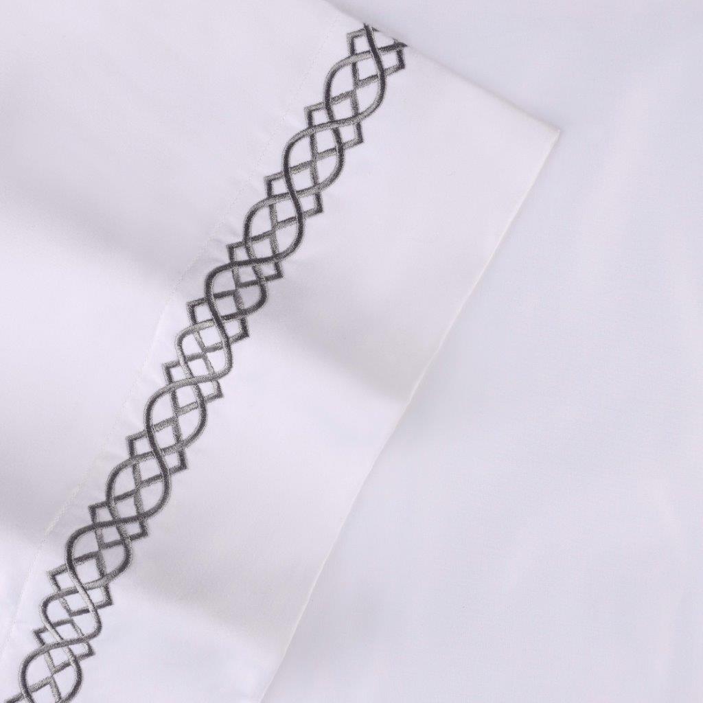 - Design Details: Each pillowcase features an opening on one end for easy access; Finished with an elegant 4 inch hem|| Pattern: Solid with colored, infinity scroll embroidery. Ultra-soft and smooth texture; Single-ply design; Subtle shimmer from sateen weave finish.