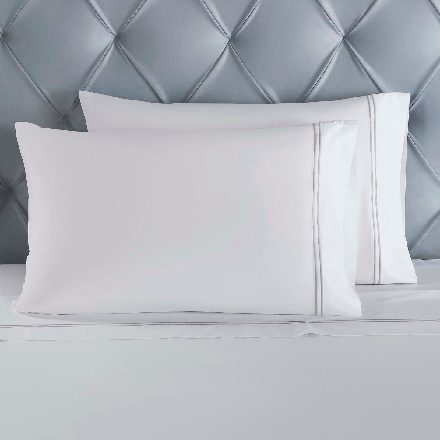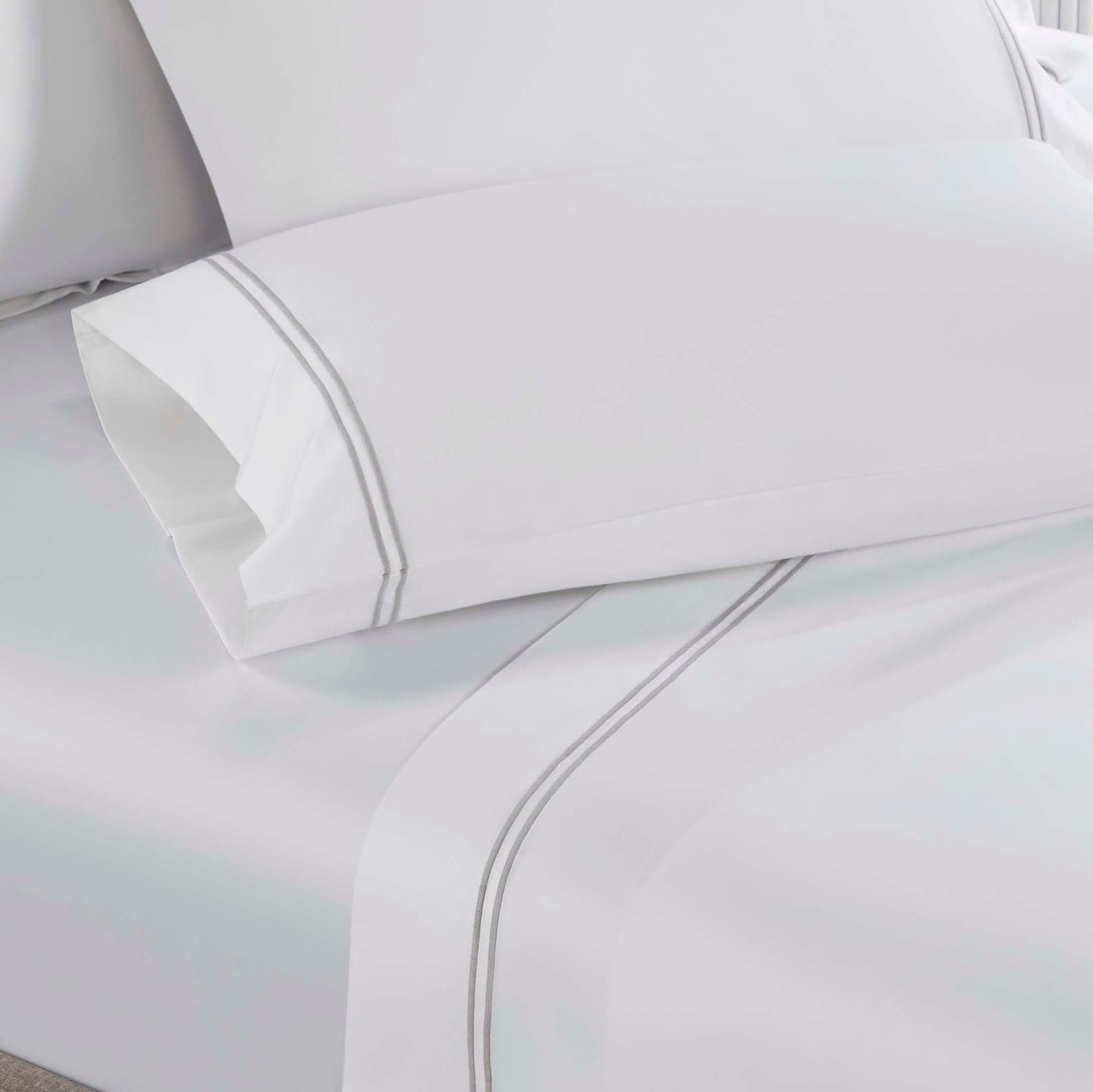 Perfectly accent your bedroom decor with our Fieldstone Cotton Two-Line Embroidered Sheet Set. Crafted from naturally soft cotton, this cozy sheet set is breathable, durable and long-lasting. This sheet set is available in a wide range of sizes to perfectly fit your bed, so your bedding looks pristine and luxurious. Featuring an elegant two-line embroidery and finished with a subtle shimmer, this sheet set is a comfortable and luxurious addition to your bedding essentials.