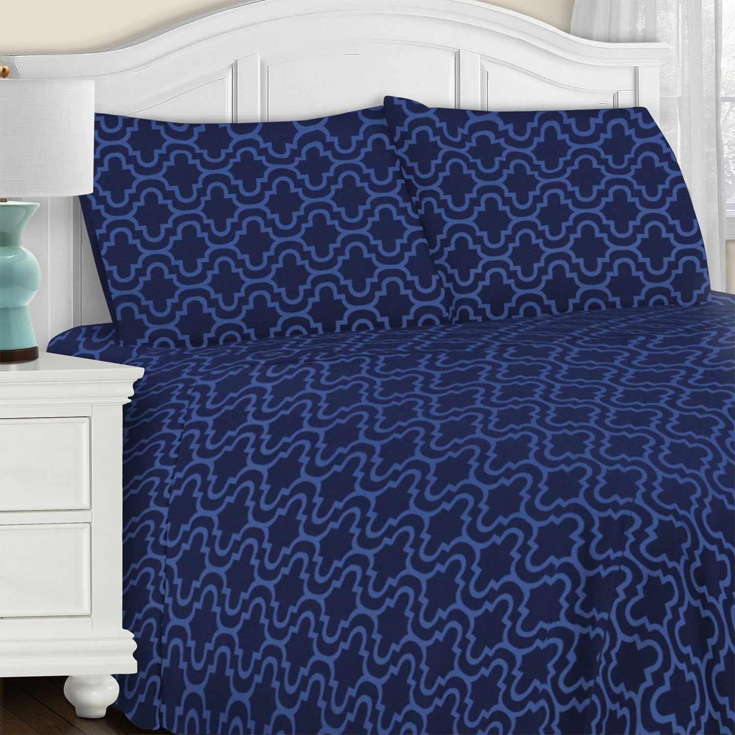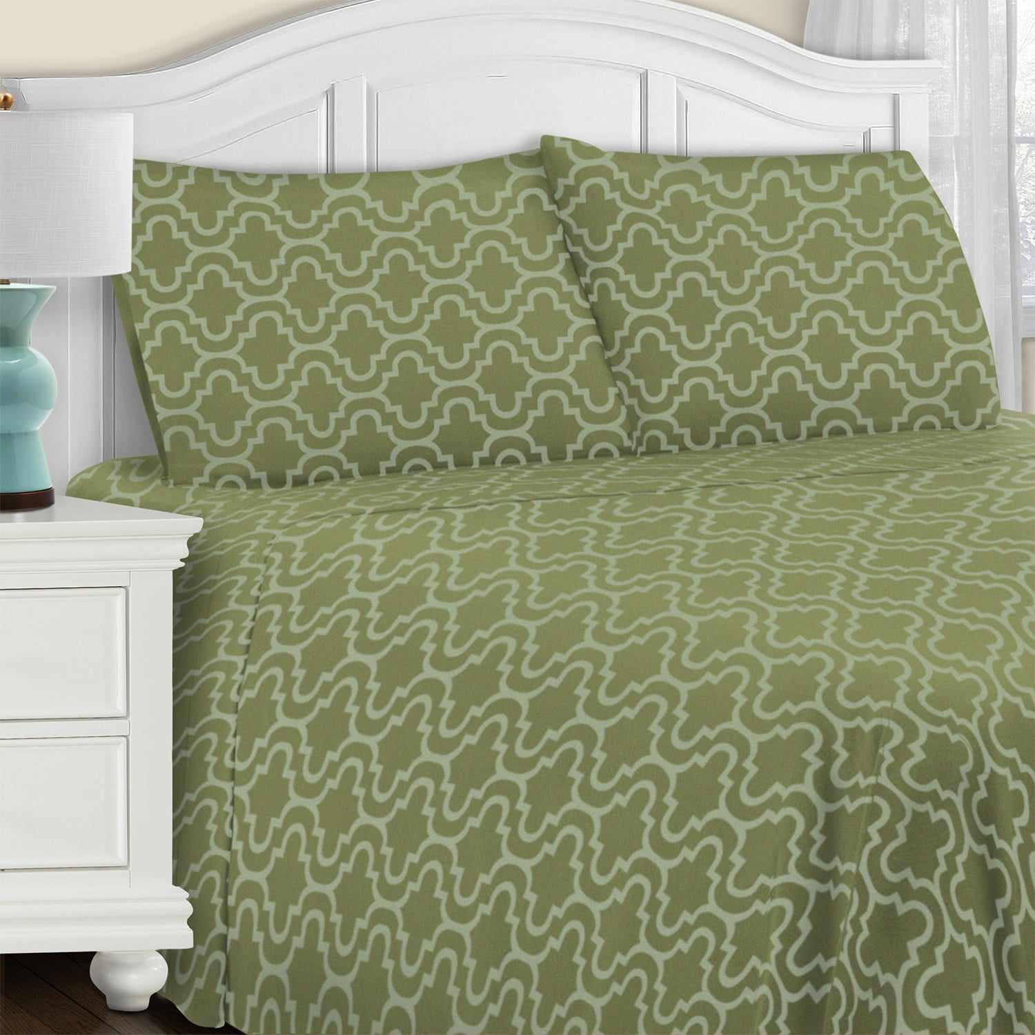 Flannel Brushed Cotton Trellis Geometric Bed Sheet Set