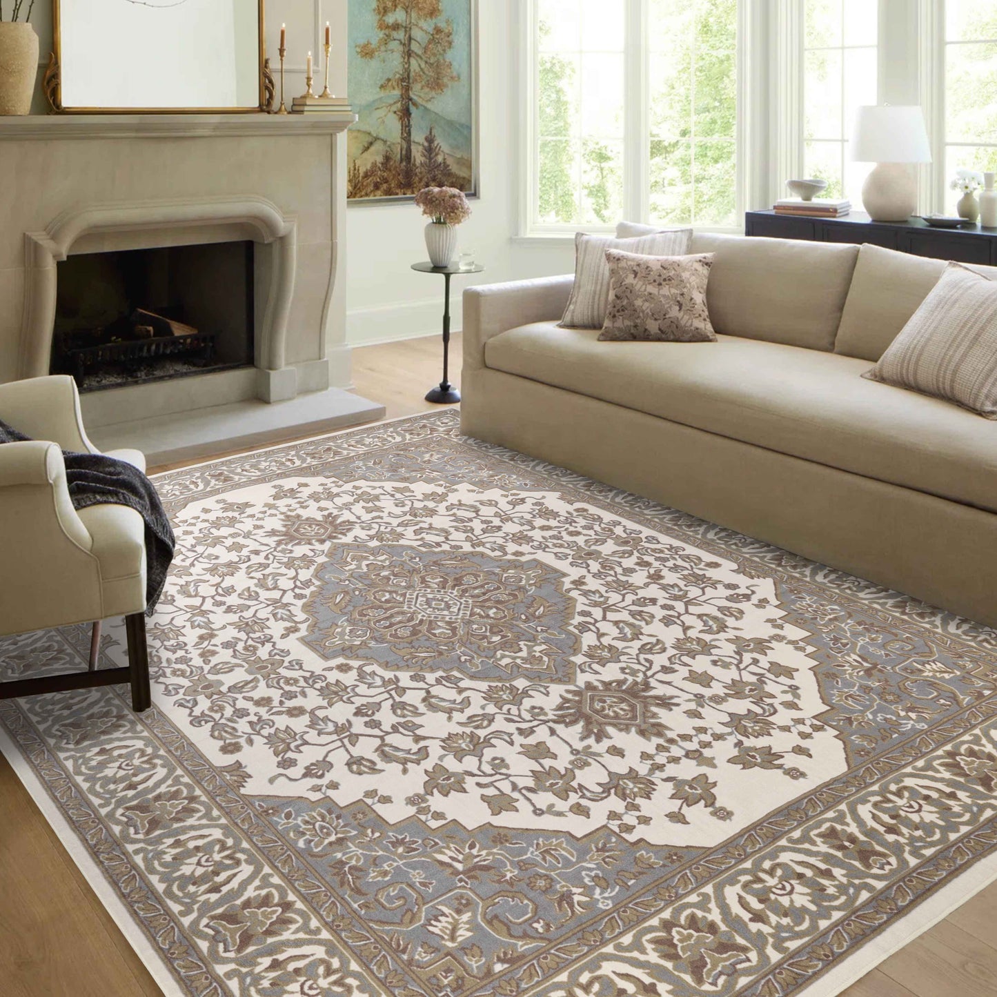Elevate your living space with our Glendale Indoor Area Rug. Made from durable materials, this rug is incredibly sturdy while remaining soft and comfortable underfoot. Available in a variety of stunning colorways, this ornate rug will effortlessly refresh your space. The classic floral medallion pattern is ideal for traditional or formal home decor styles. The cozy pile height is plush and easy to maintain, making this rug a long-lasting option for homes with children and pets.