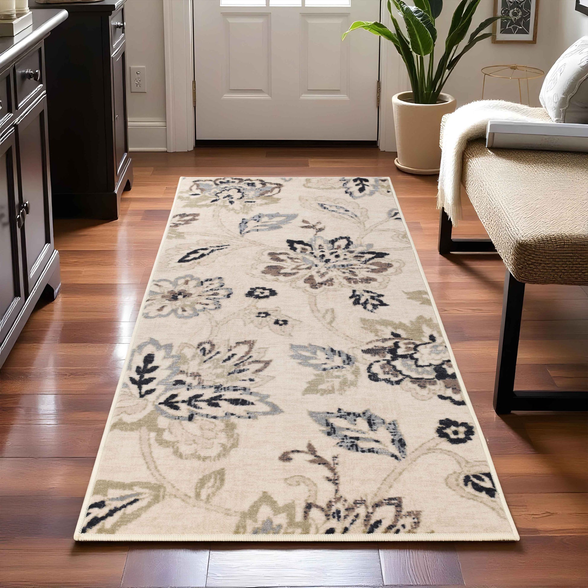 Jacobean Floral Modern Farmhouse Indoor Area Rug or Runner Rug