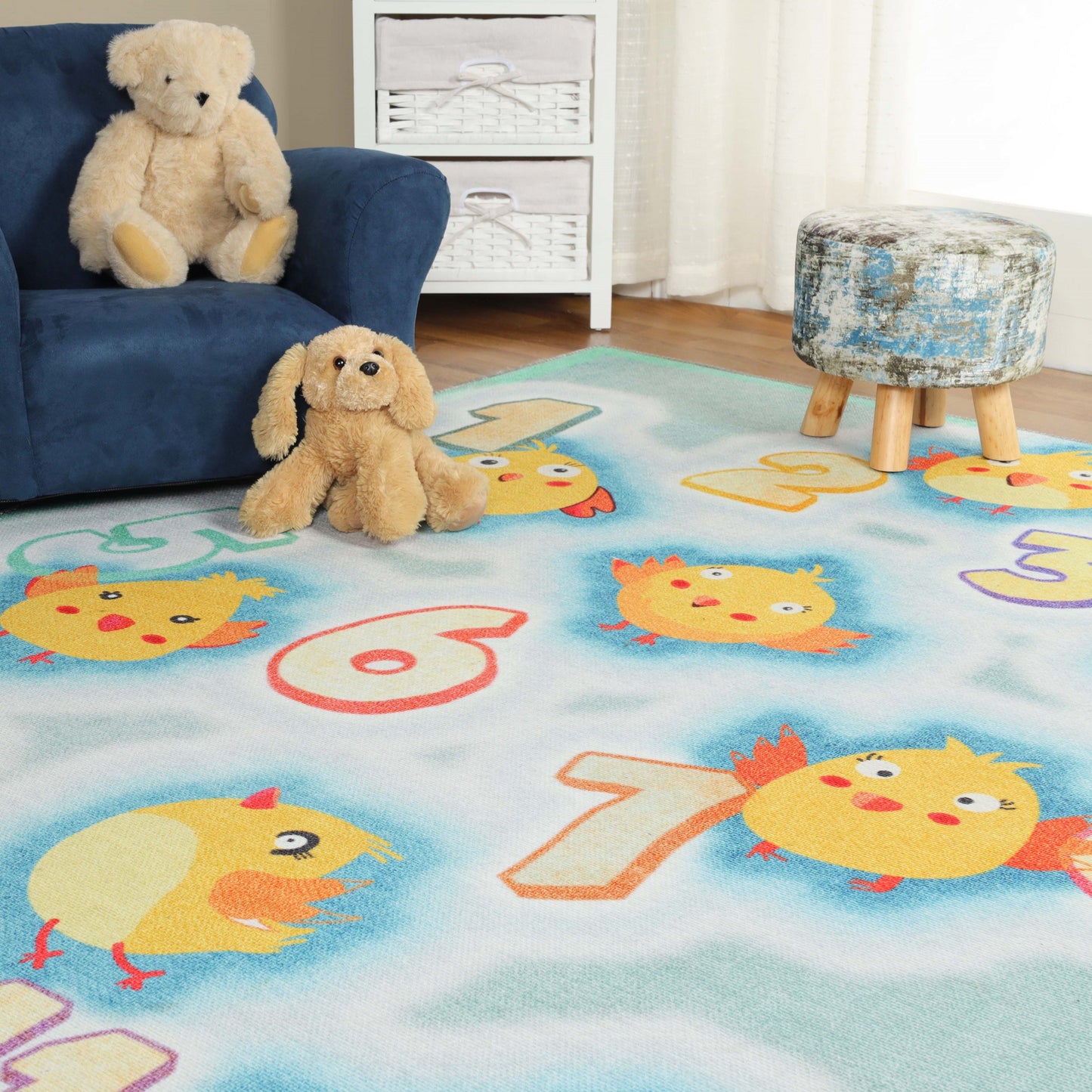 Create an exciting place to learn with the Playtime Numbers Vibrant Kids Power-Loomed Indoor Area Rug. Add a splash of color to any family-friendly room in your home. The Polyester construction is incredibly durable while being soft and comfortable. This beautiful area rug can handle the most frequented indoor areas of your home, including the kitchen, family room, basement, and entryway. Finished with a well-made Cotton canvas backing, this rug is a long-lasting and durable option for homes with children and pets (rug pad recommended).