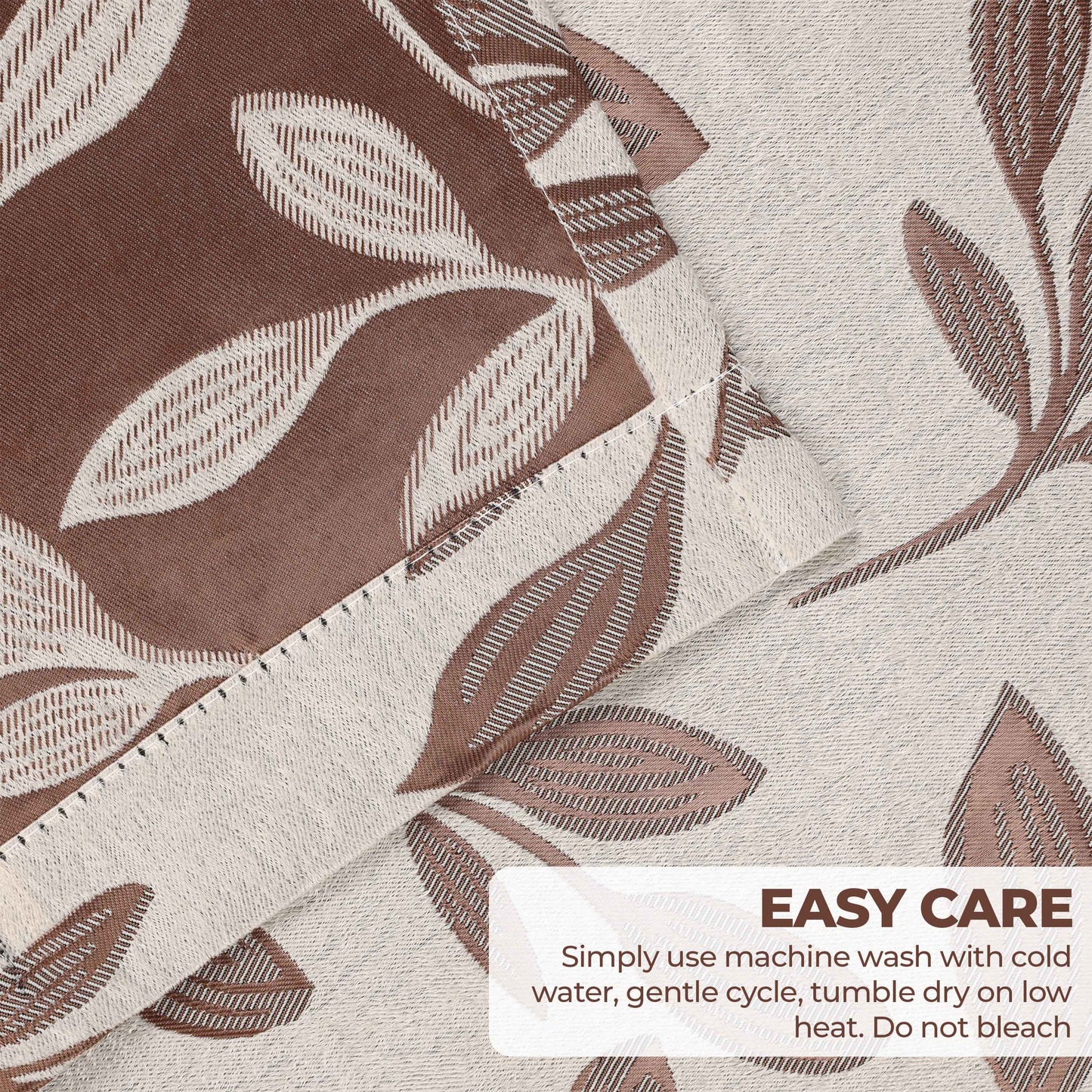Stylish and highly practical, our Leaves Blackout Curtain Set is the perfect addition to your home. The polyester material is incredibly durable, naturally hypoallergenic and wrinkle-resistant. The rust-free grommet header, back tabs or rod pocket (depending on size) makes these panels easy to install while elevating the beauty of your home. These blackout curtains block up to 70% of sunlight and UV rays and are thermal insulating. The stunning botanical accent of these curtains will suit modern, bohemian, vintage, or casual style homes.