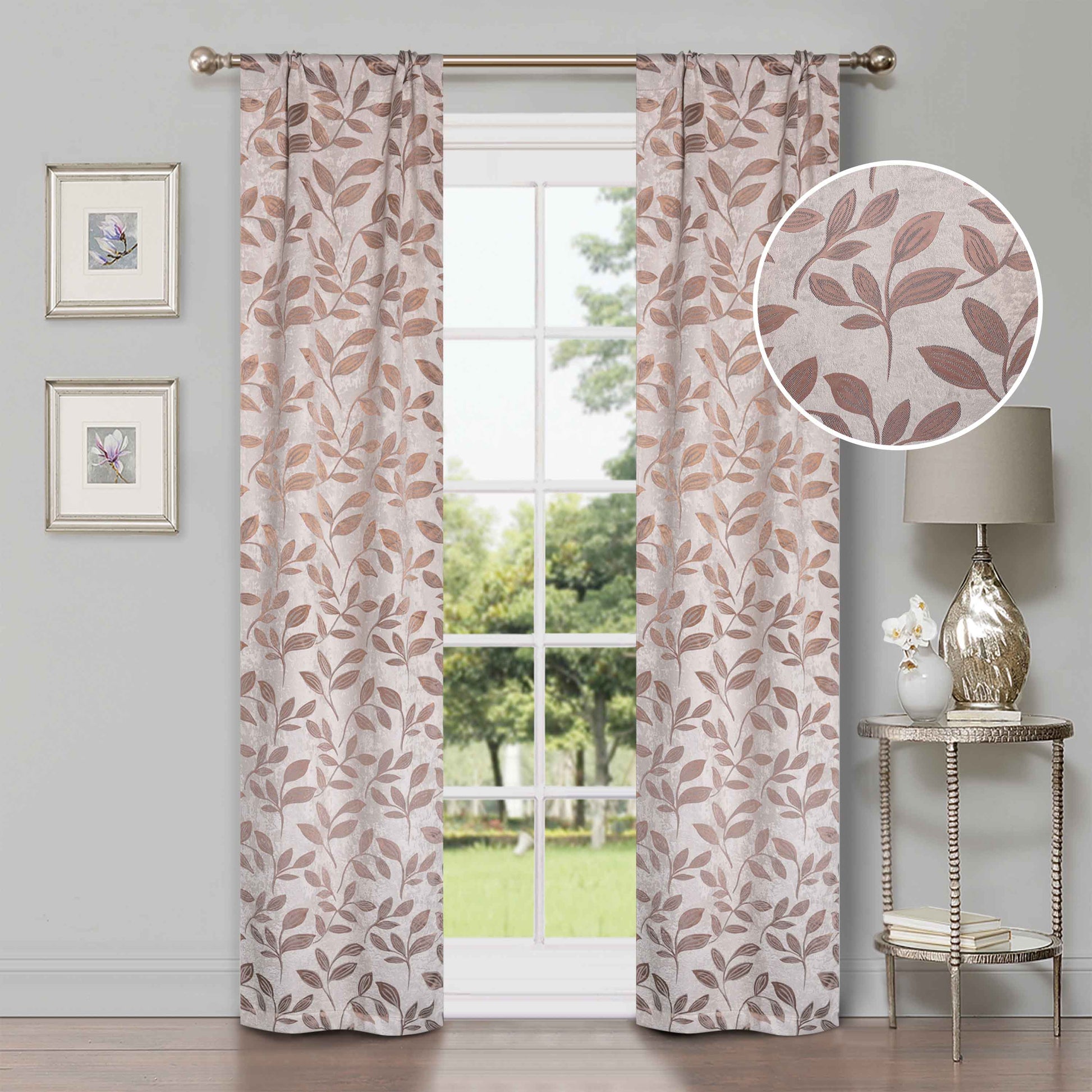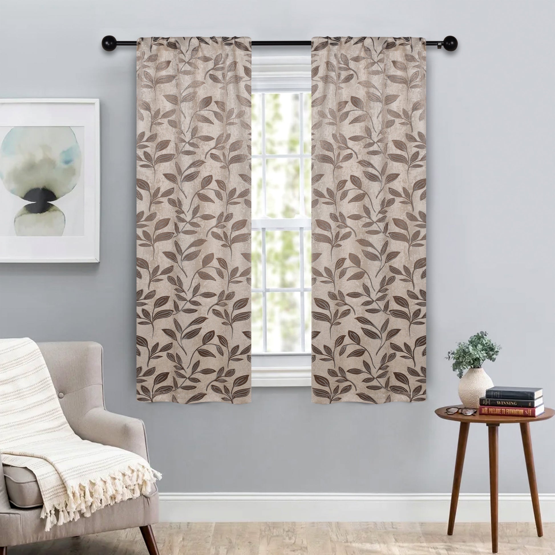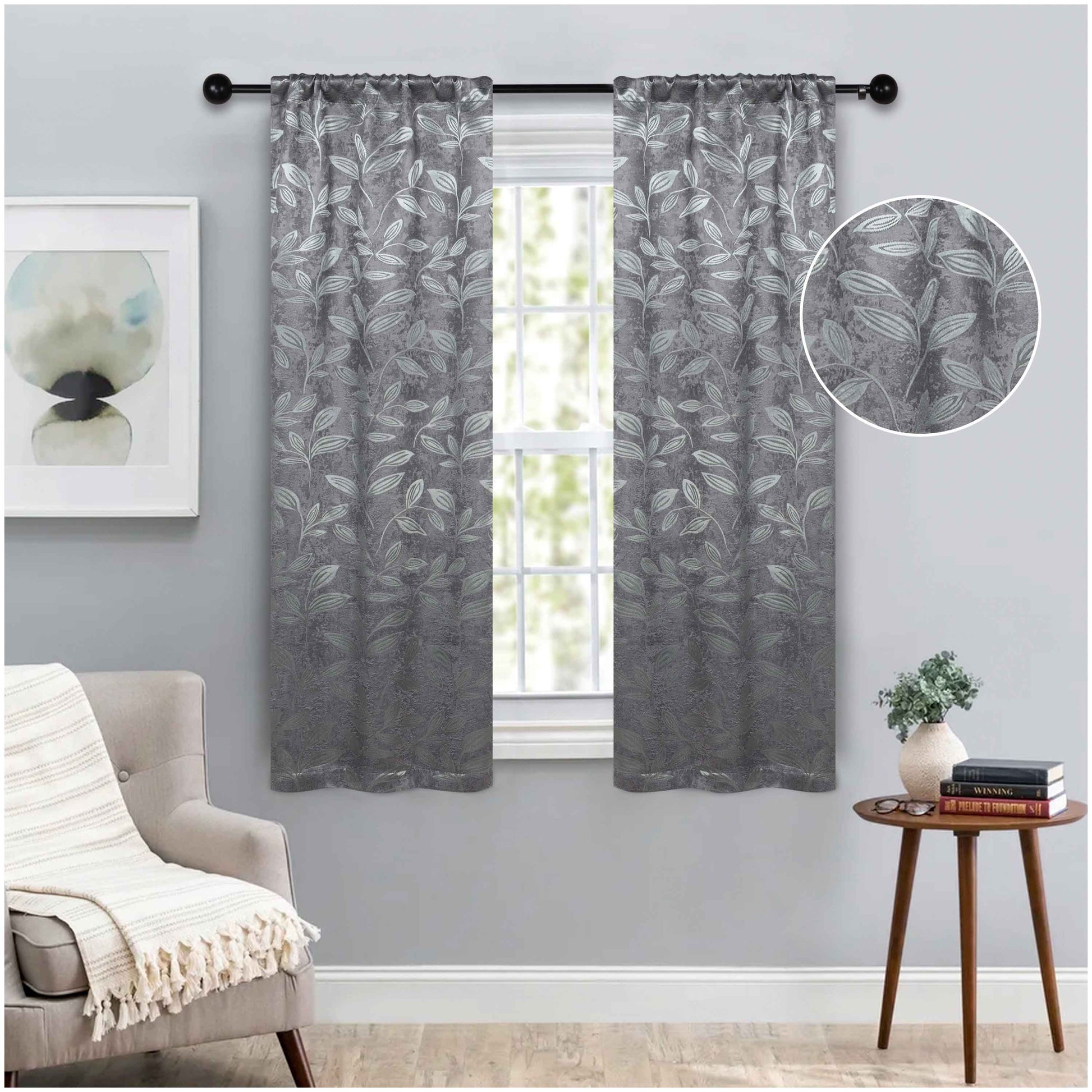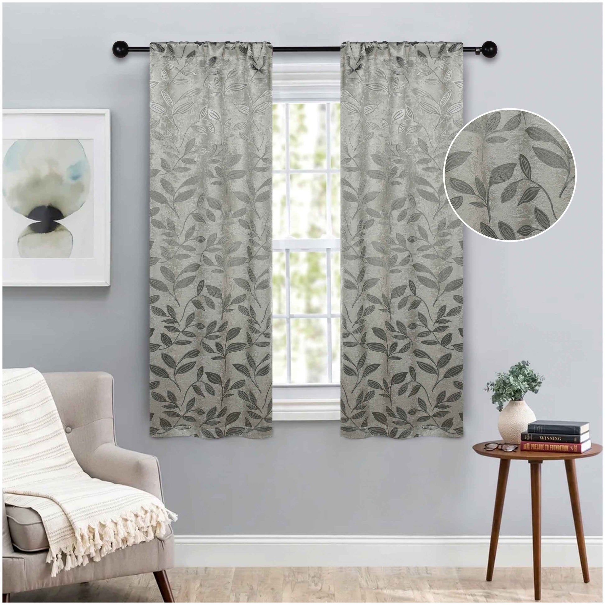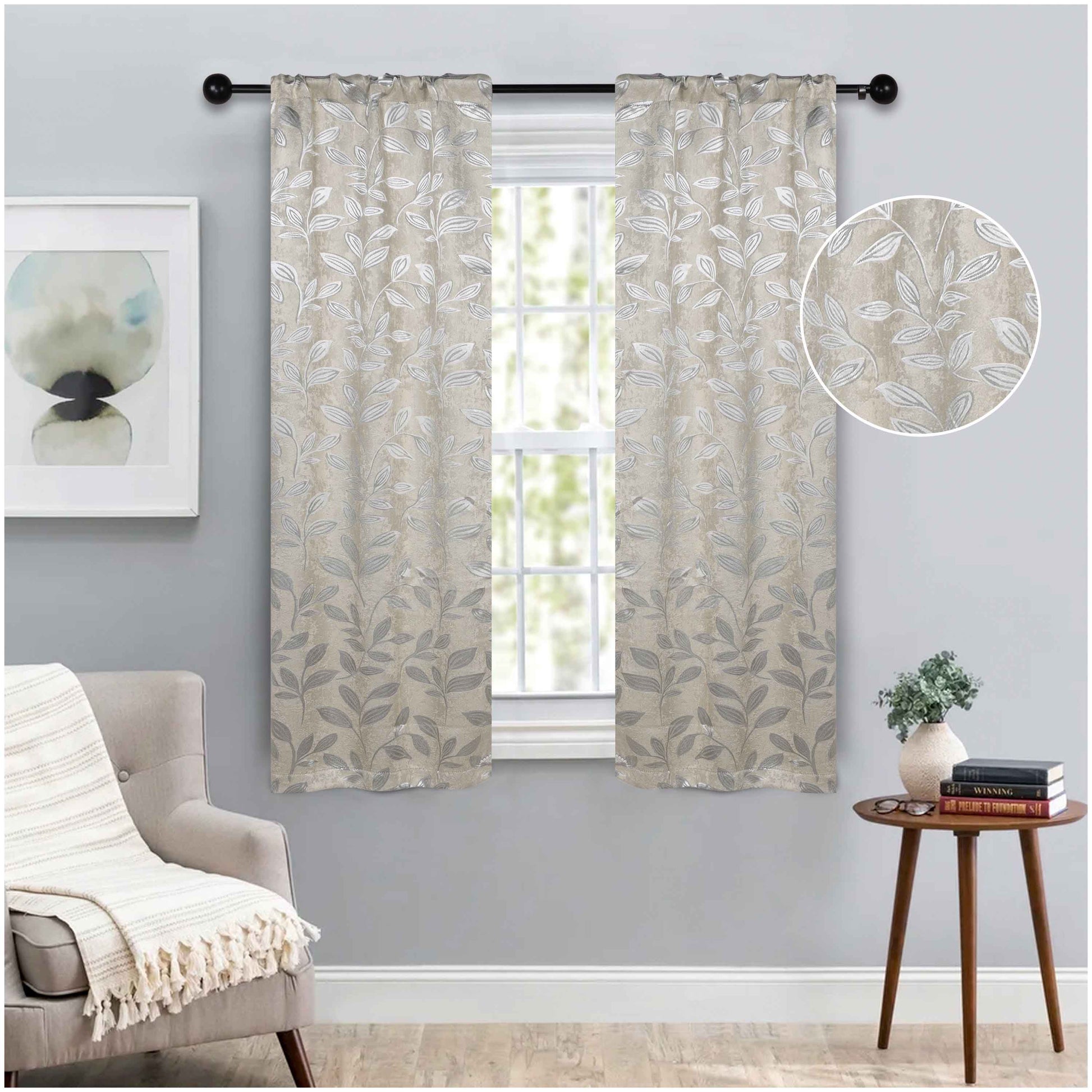 Leaves Room Darkening Washable Blackout Curtain Panels, Set of 2
