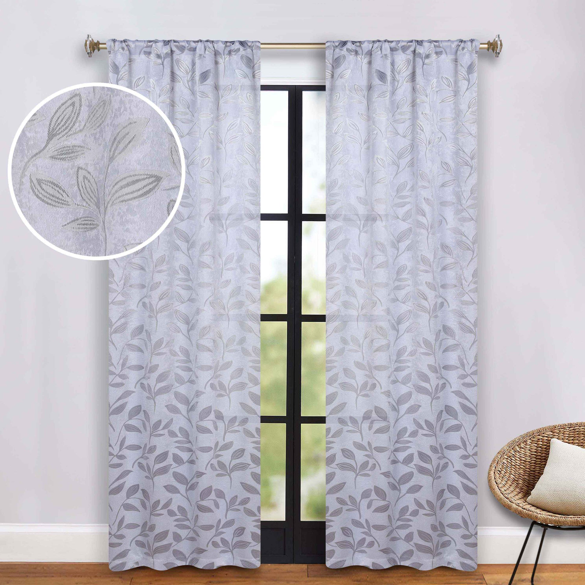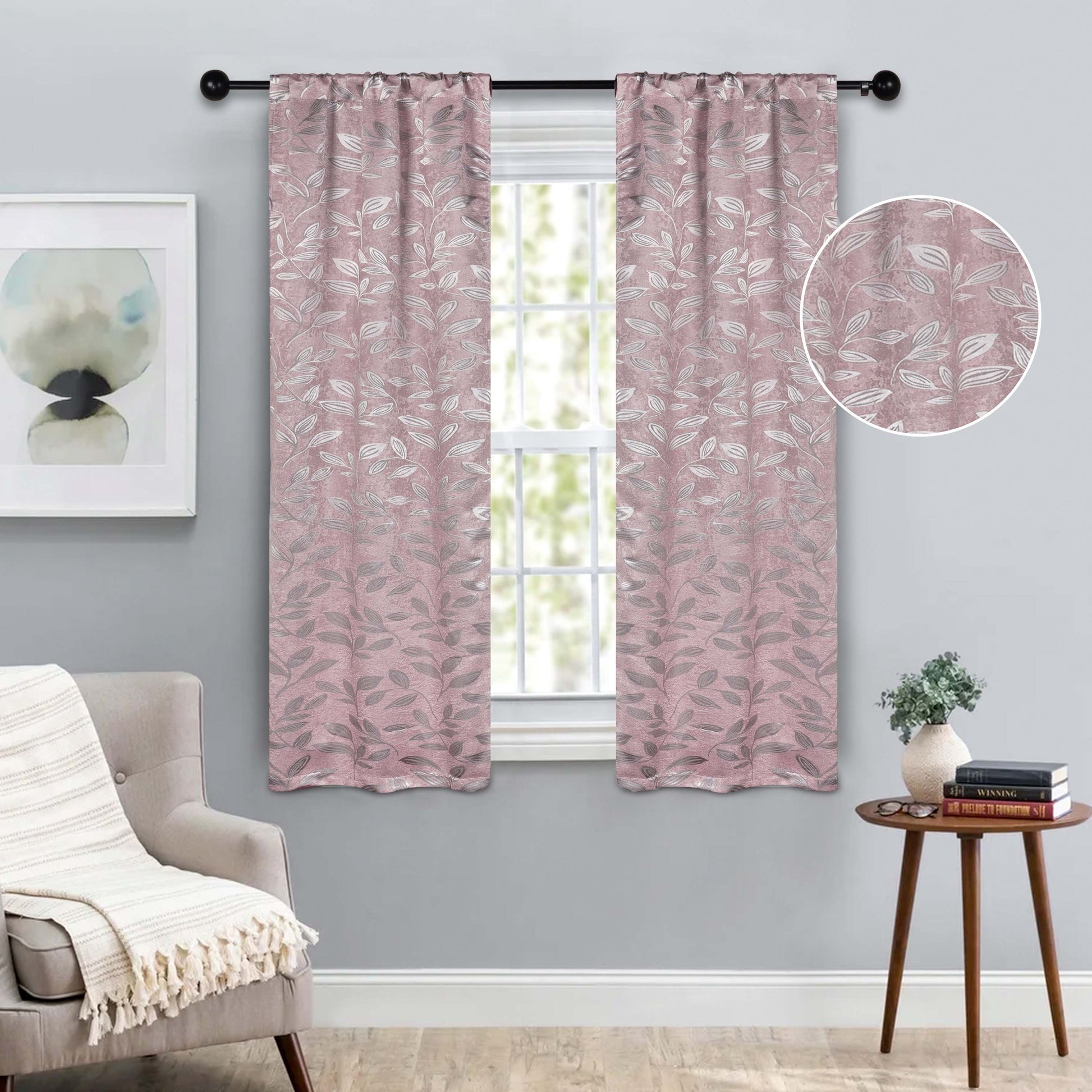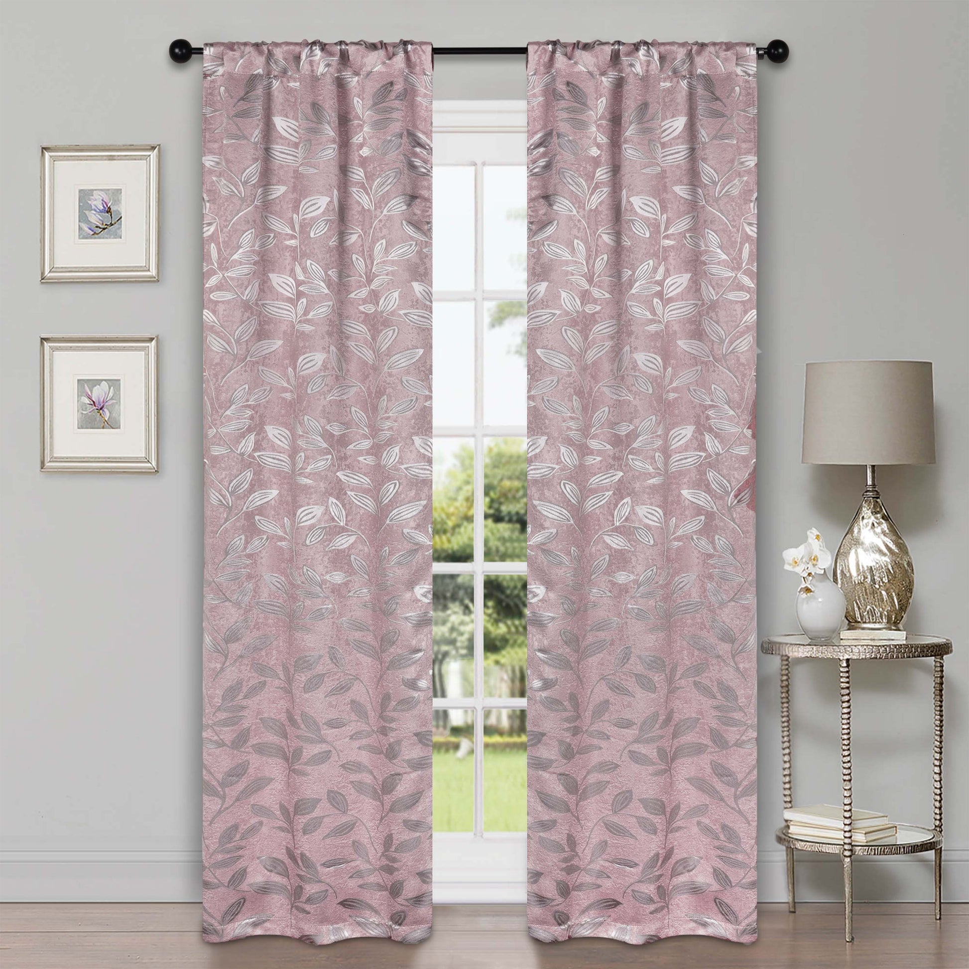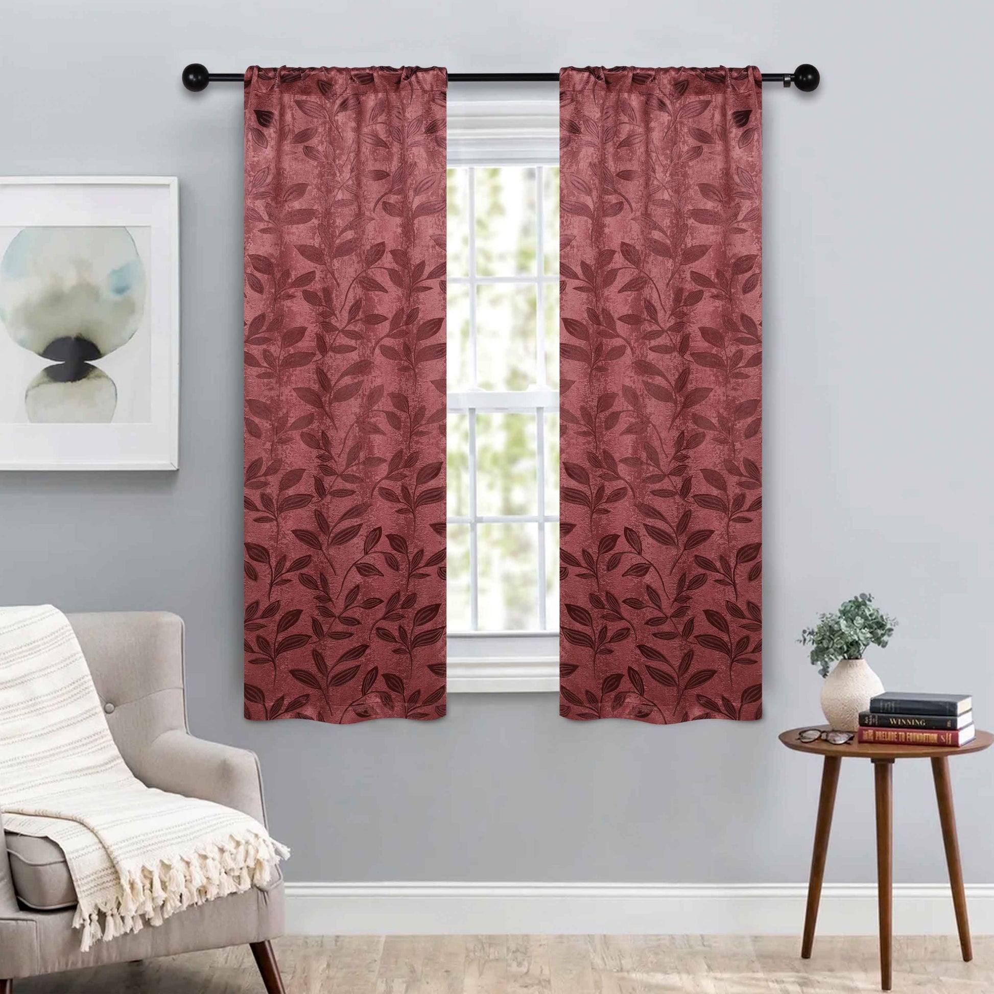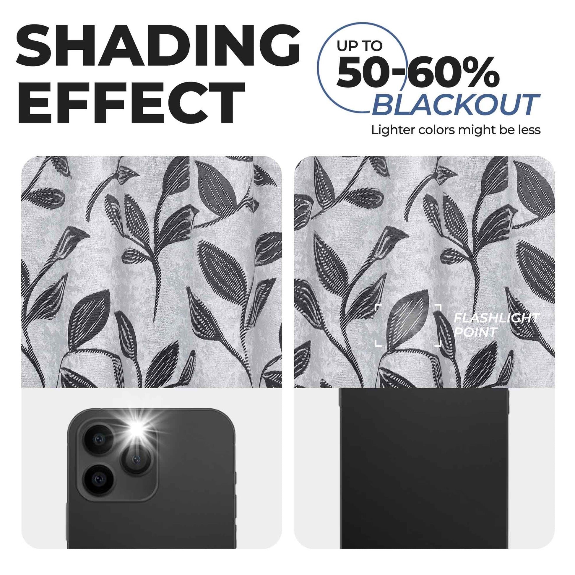 Leaves Room Darkening Washable Blackout Curtain Panels, Set of 2