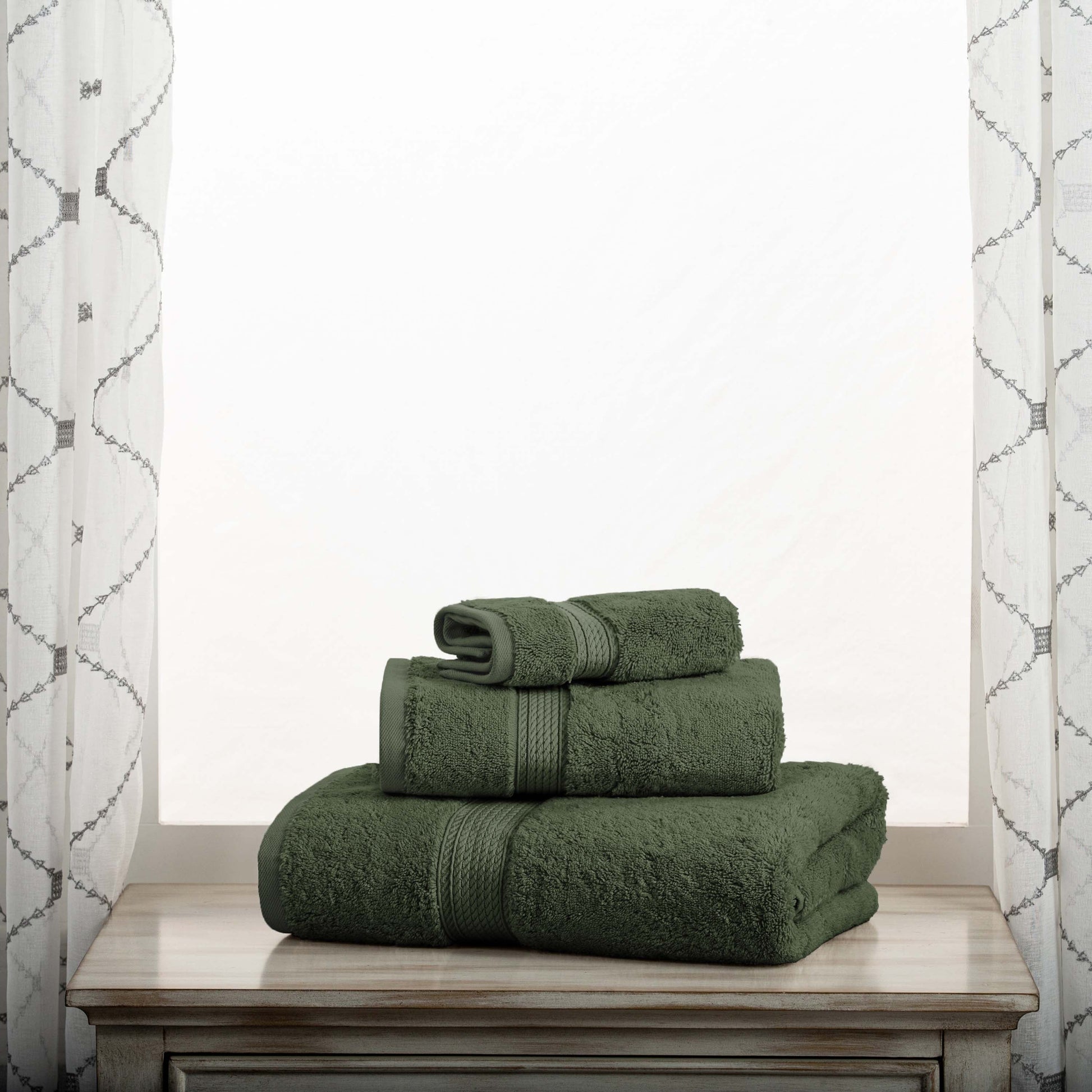 - Set Includes: One (1) Bath Towel, One (1) Hand Towel, and One (1) Face Towel