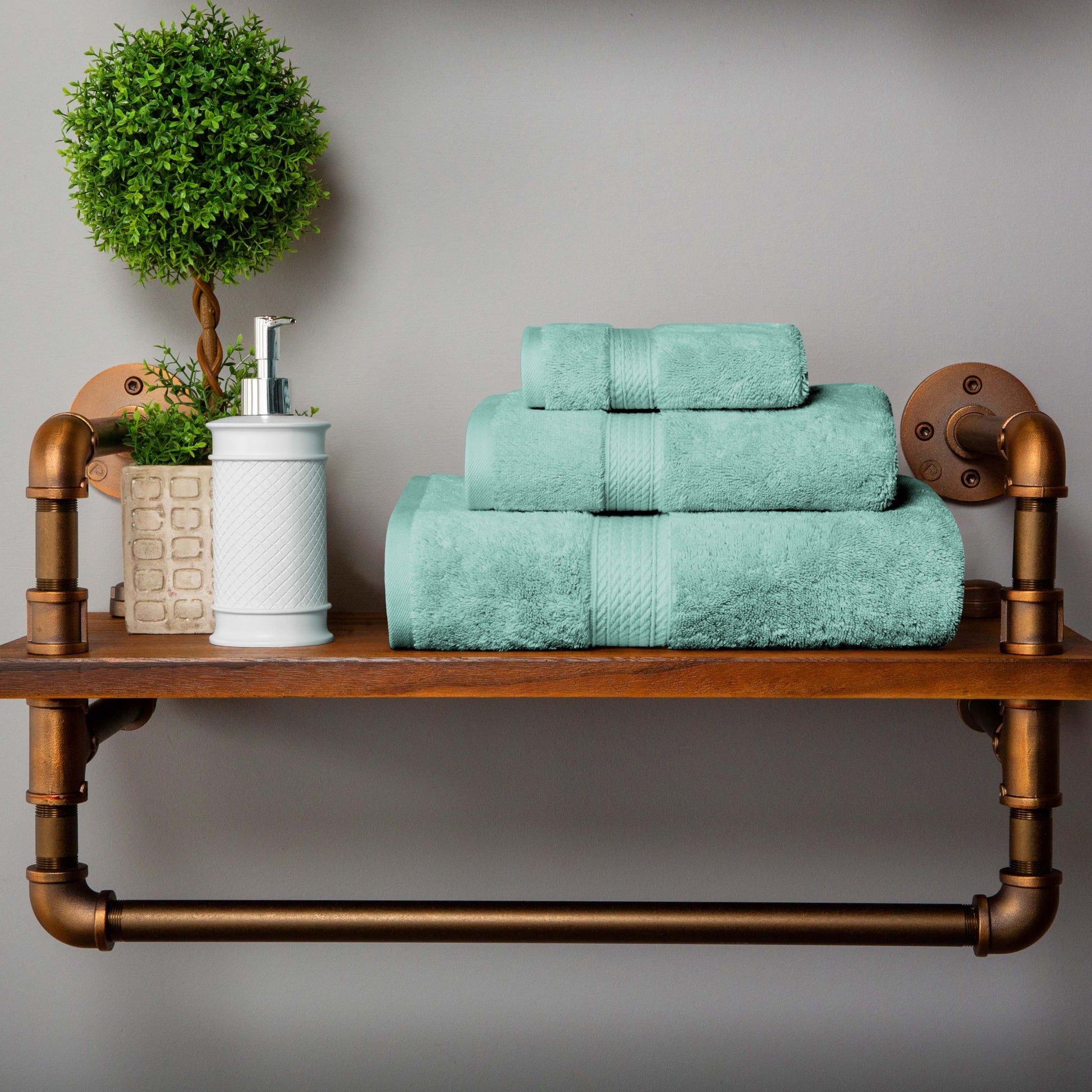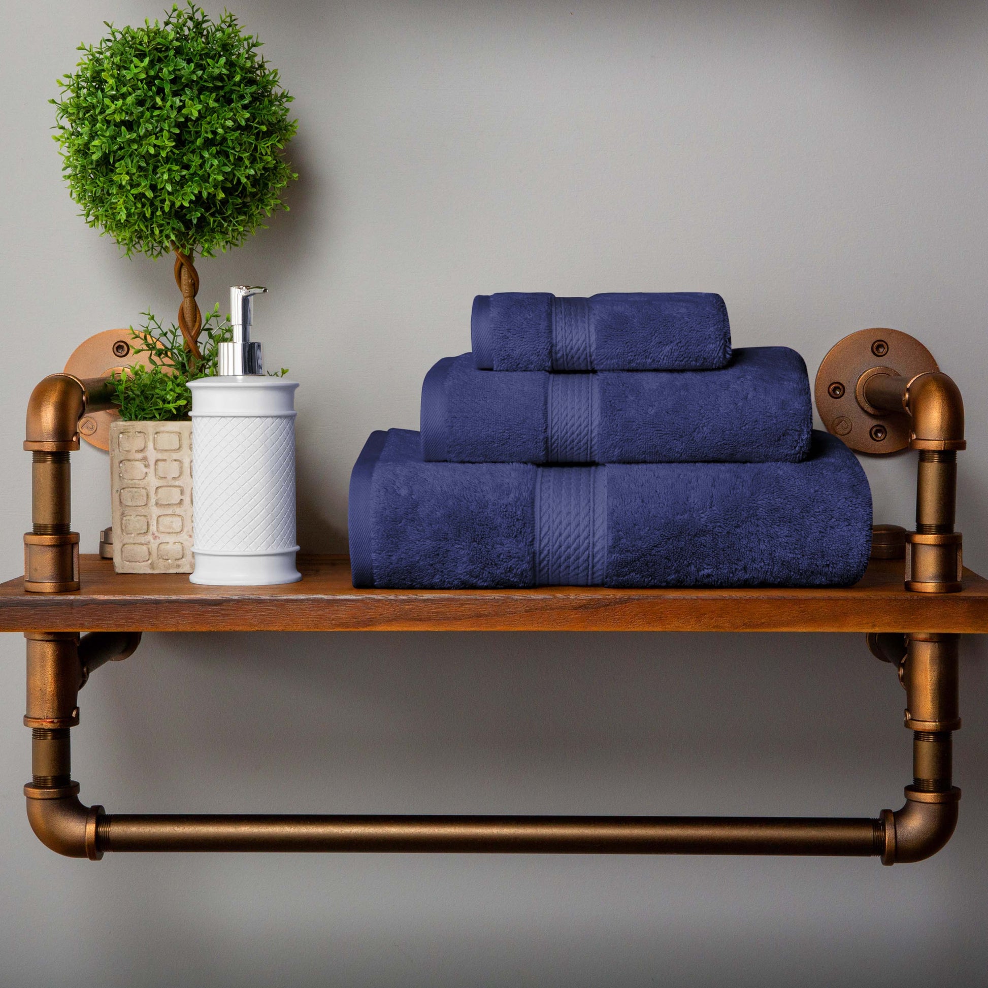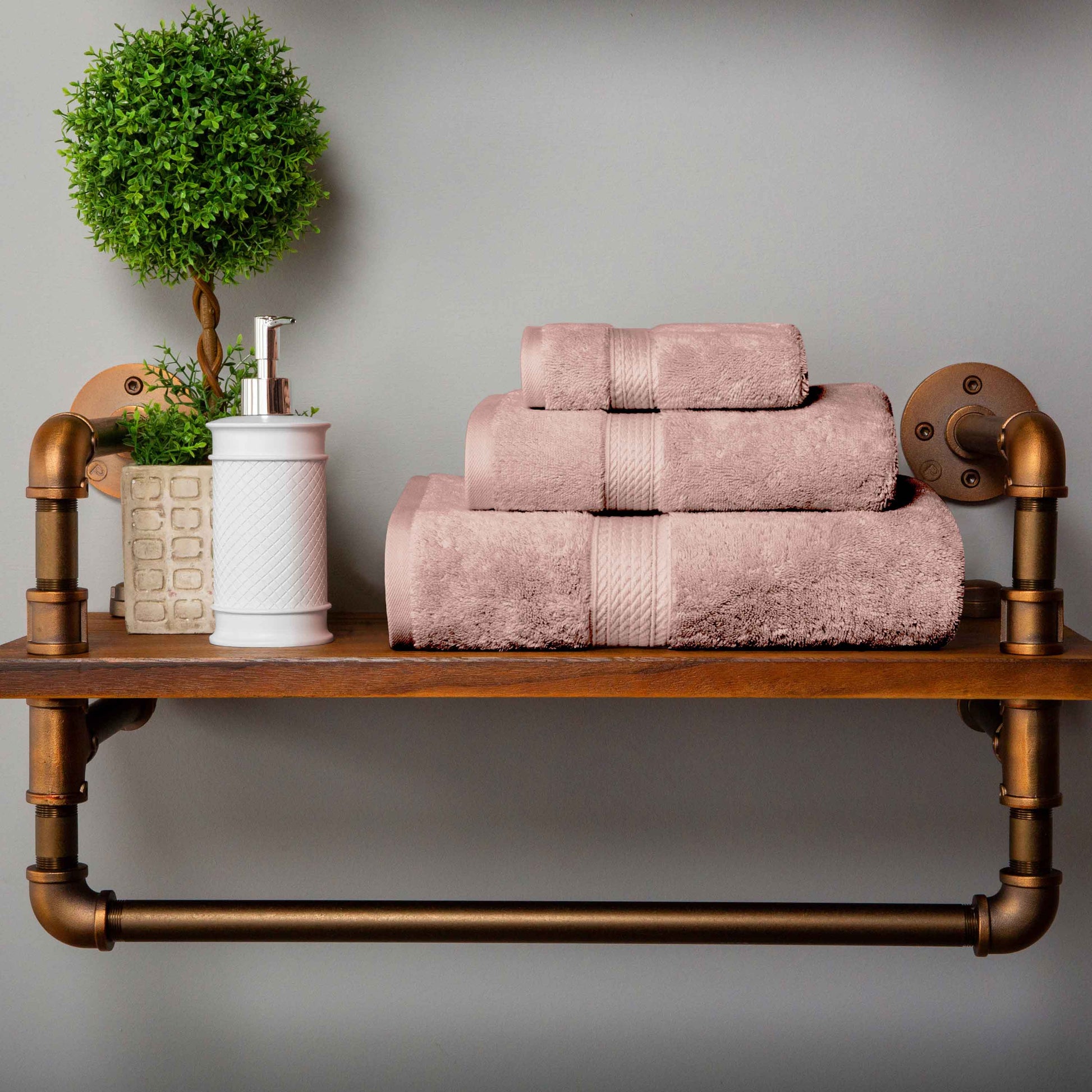Revamp your bathroom into a blissful hotel retreat with our Egyptian Cotton Pile Towel Set. Our most luxurious Egyptian Cotton Pile bathing essentials have a heavyweight thickness to keep you warm and get you dry quickly. Each piece in this plush and fluffy set sops up moisture effortlessly, keeping you cozy as soon as you step out of the shower or bath. For your convenience, the attached hanging loop allows you to easily hang your towel and keep it off the floor. Available in a variety of color options, give your bathroom a luxurious and elegant upgrade with this timeless set.