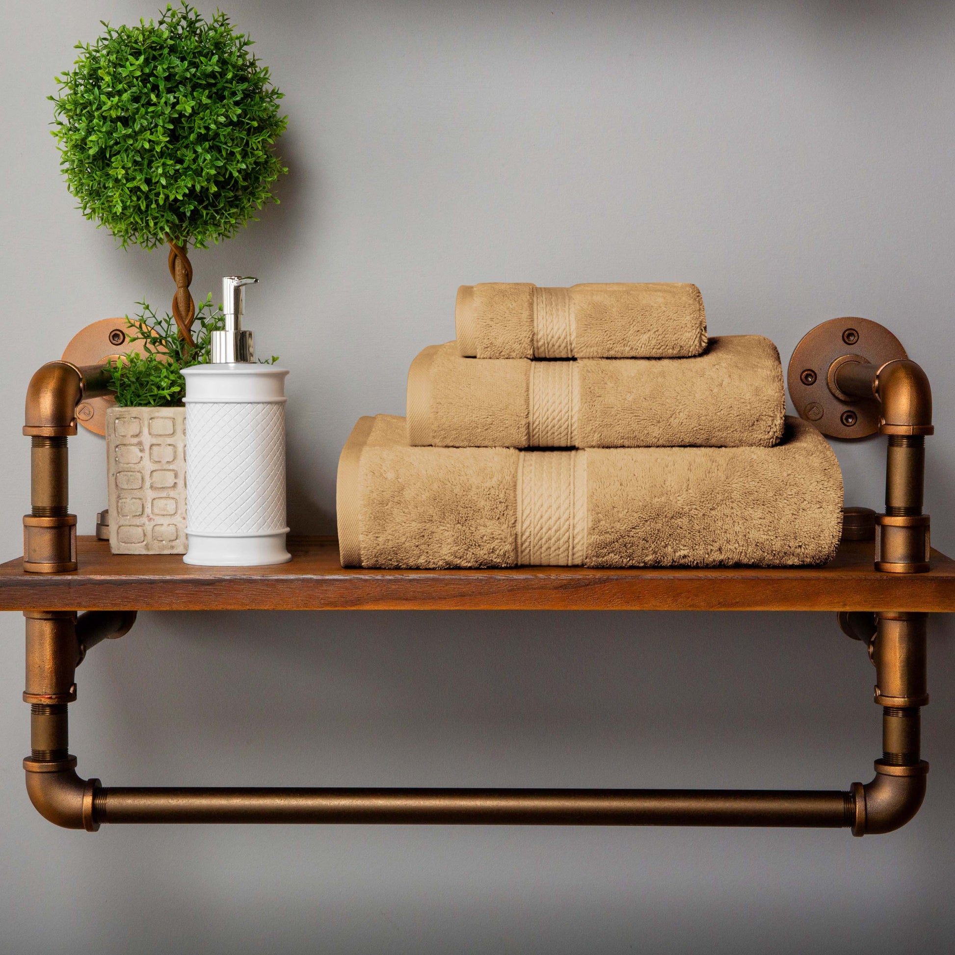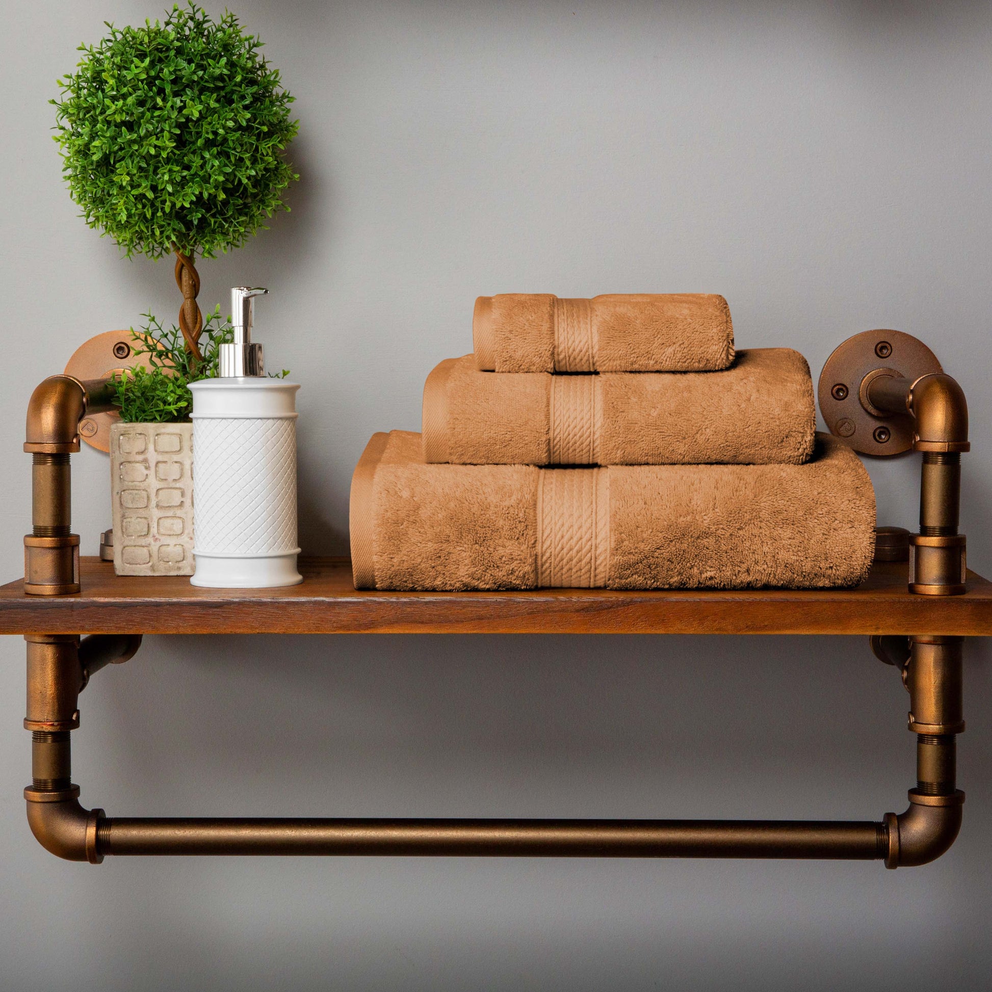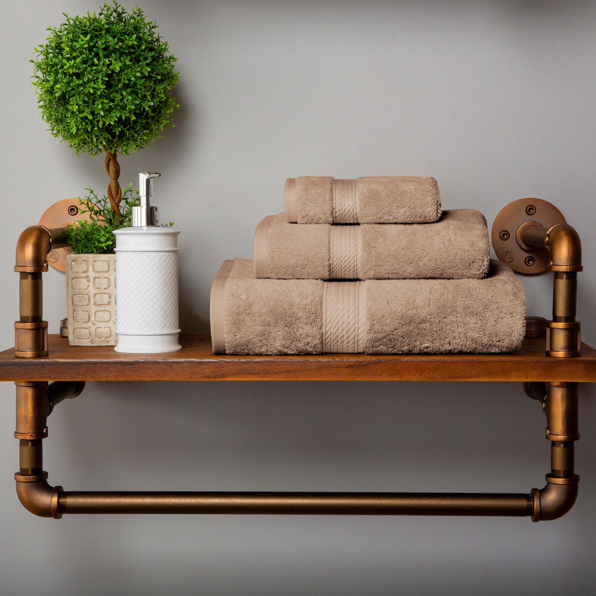 Revamp your bathroom into a blissful hotel retreat with our Egyptian Cotton Pile Towel Set. Our most luxurious Egyptian Cotton Pile bathing essentials have a heavyweight thickness to keep you warm and get you dry quickly. Each piece in this plush and fluffy set sops up moisture effortlessly, keeping you cozy as soon as you step out of the shower or bath. For your convenience, the attached hanging loop allows you to easily hang your towel and keep it off the floor. Available in a variety of color options, give your bathroom a luxurious and elegant upgrade with this timeless set.