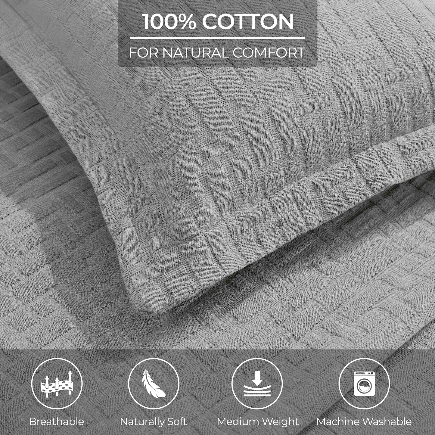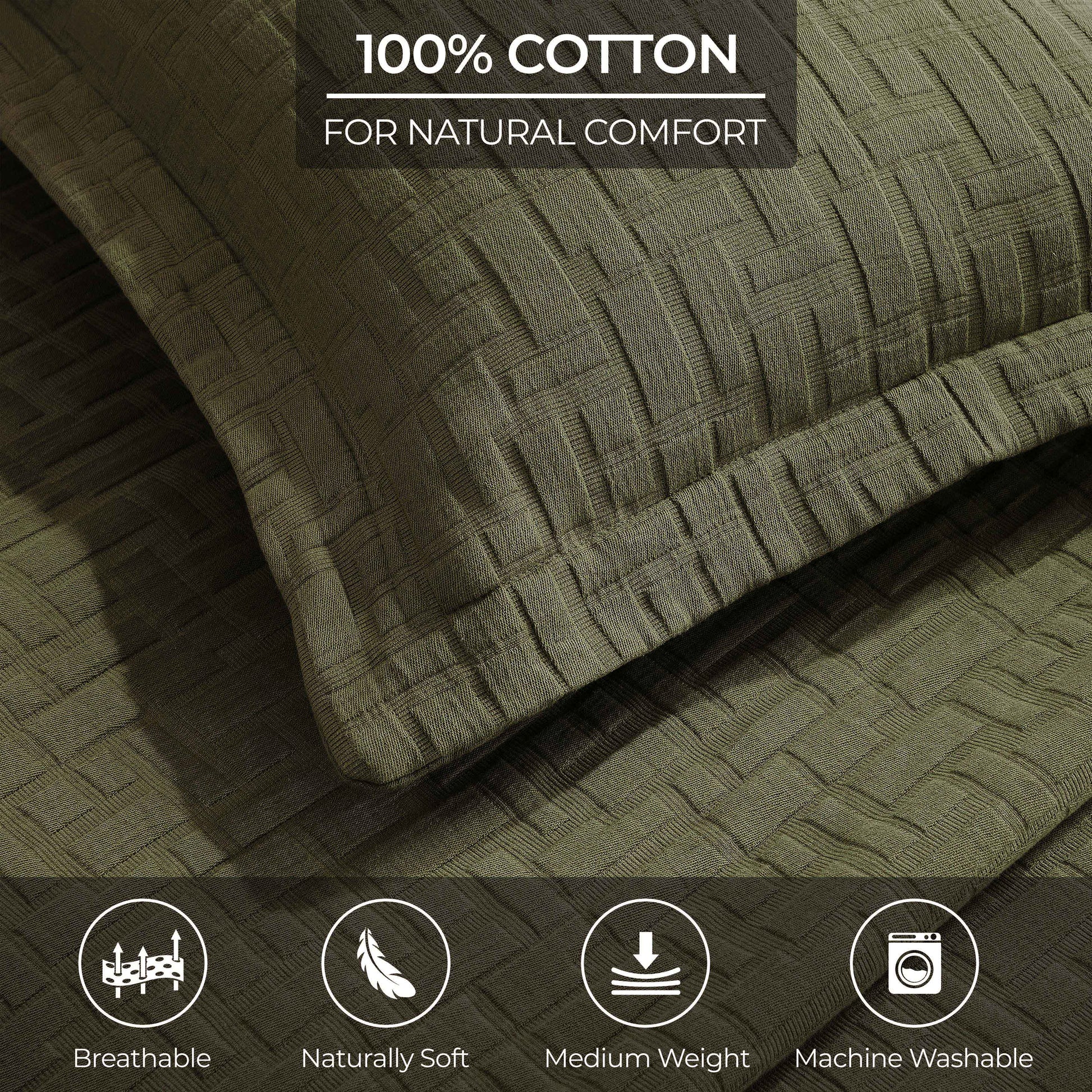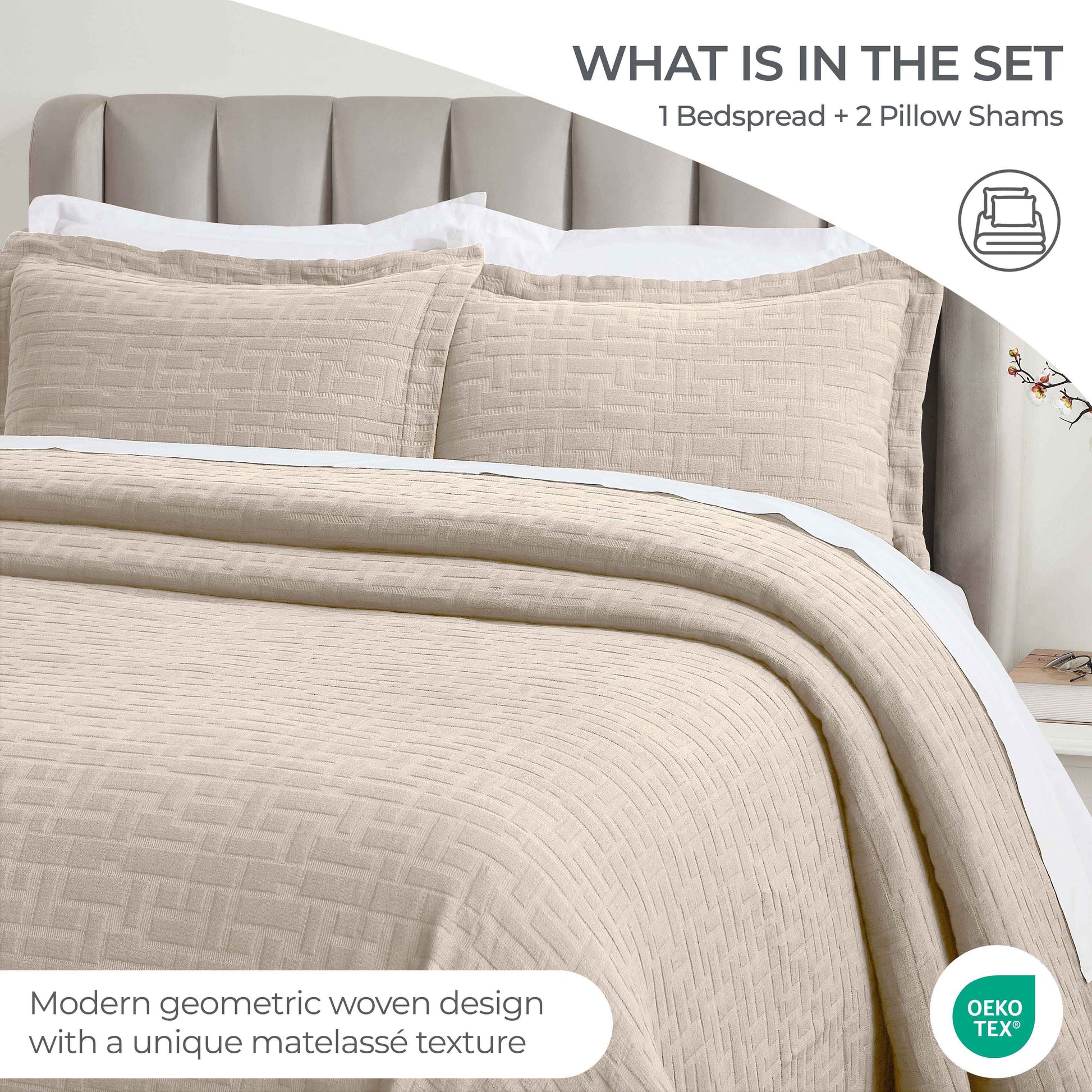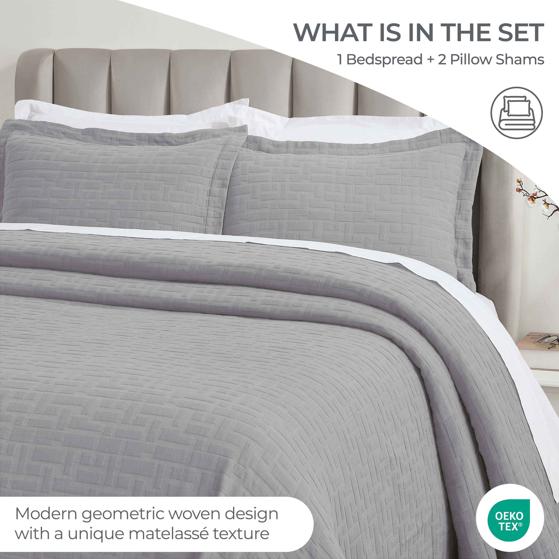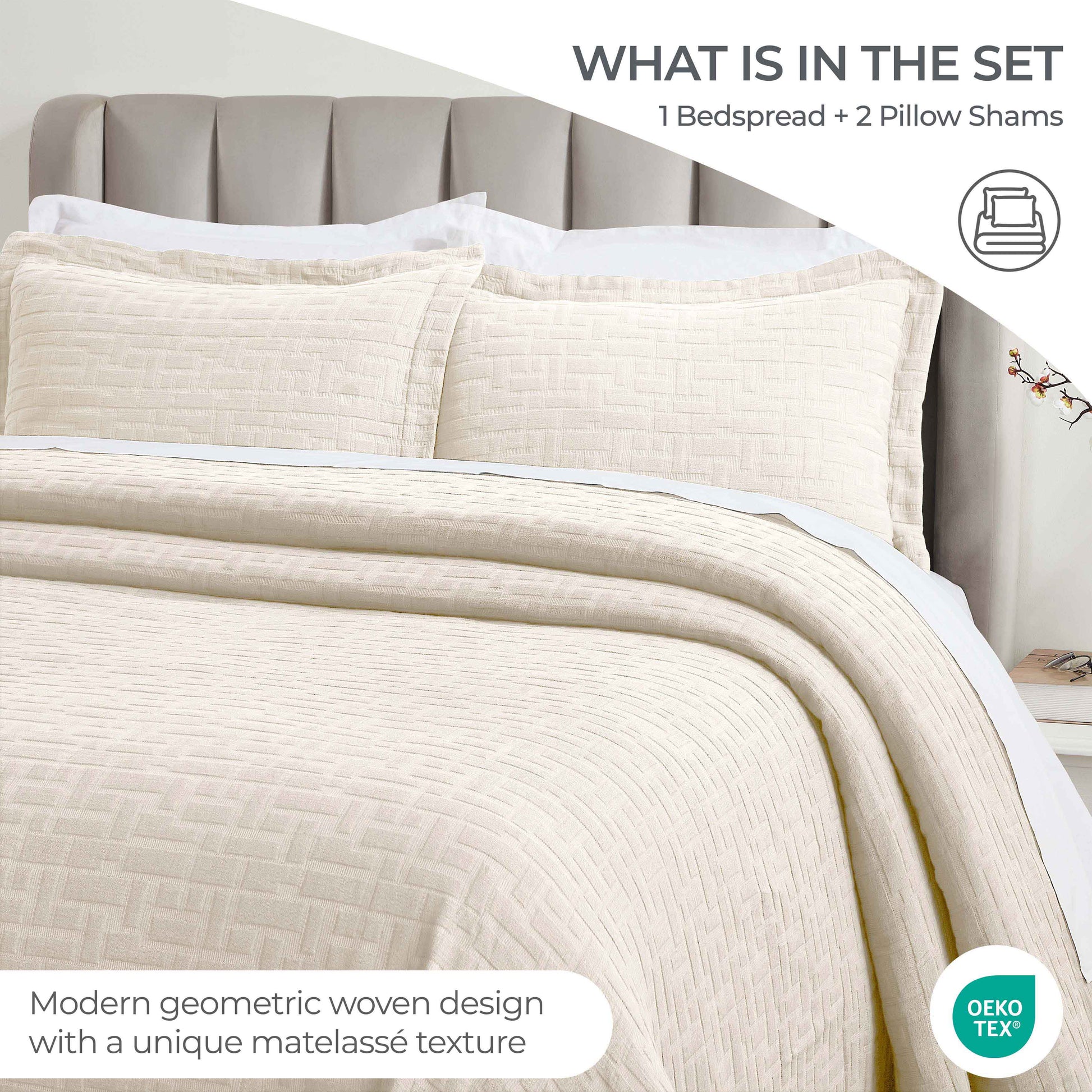 - Additional Features: Raised matelasse woven design adds a rich layer to your bed for a refined look. Medium weight material provides maximum warmth and comfort. Matching pillow shams feature envelope closure for easy access and a neat finish.