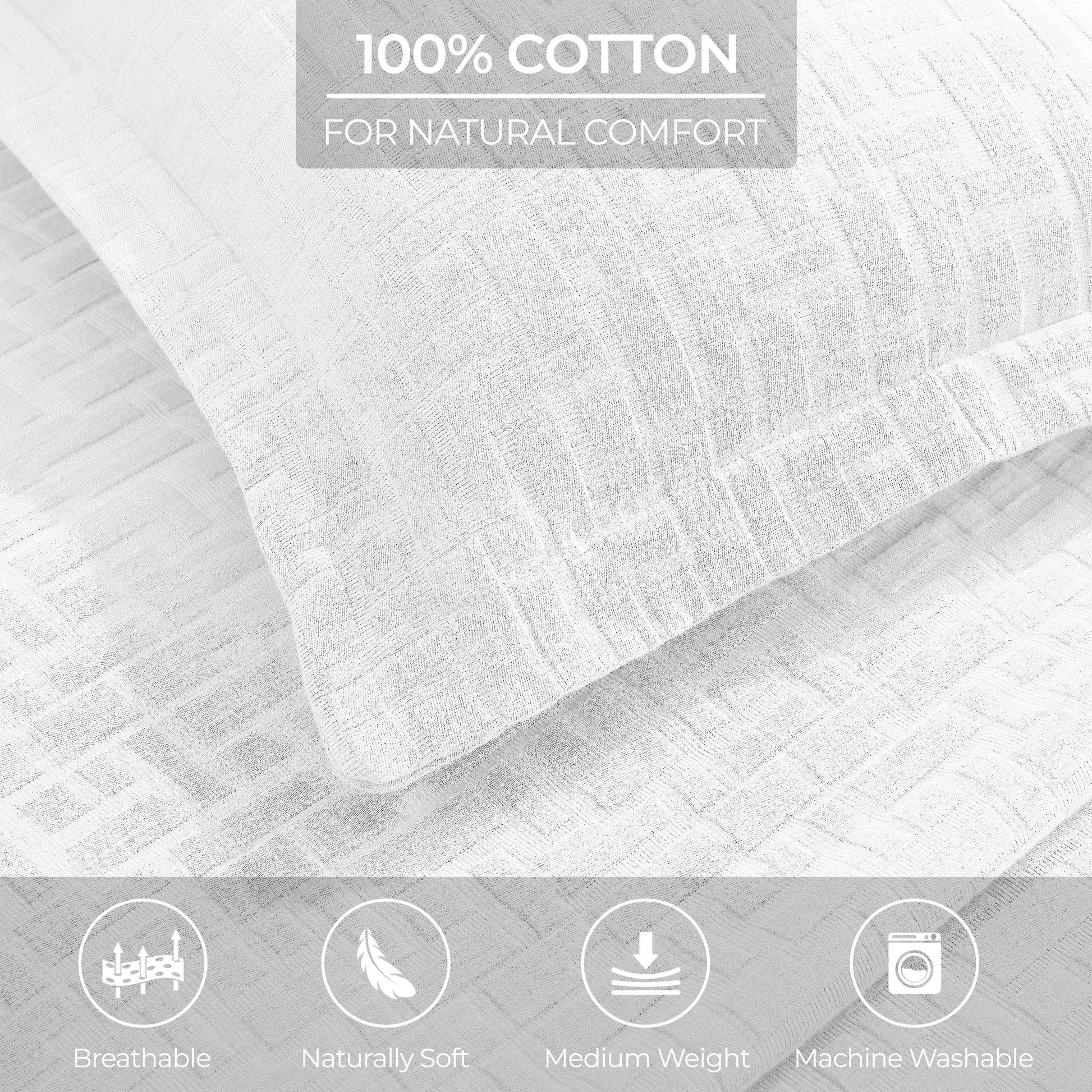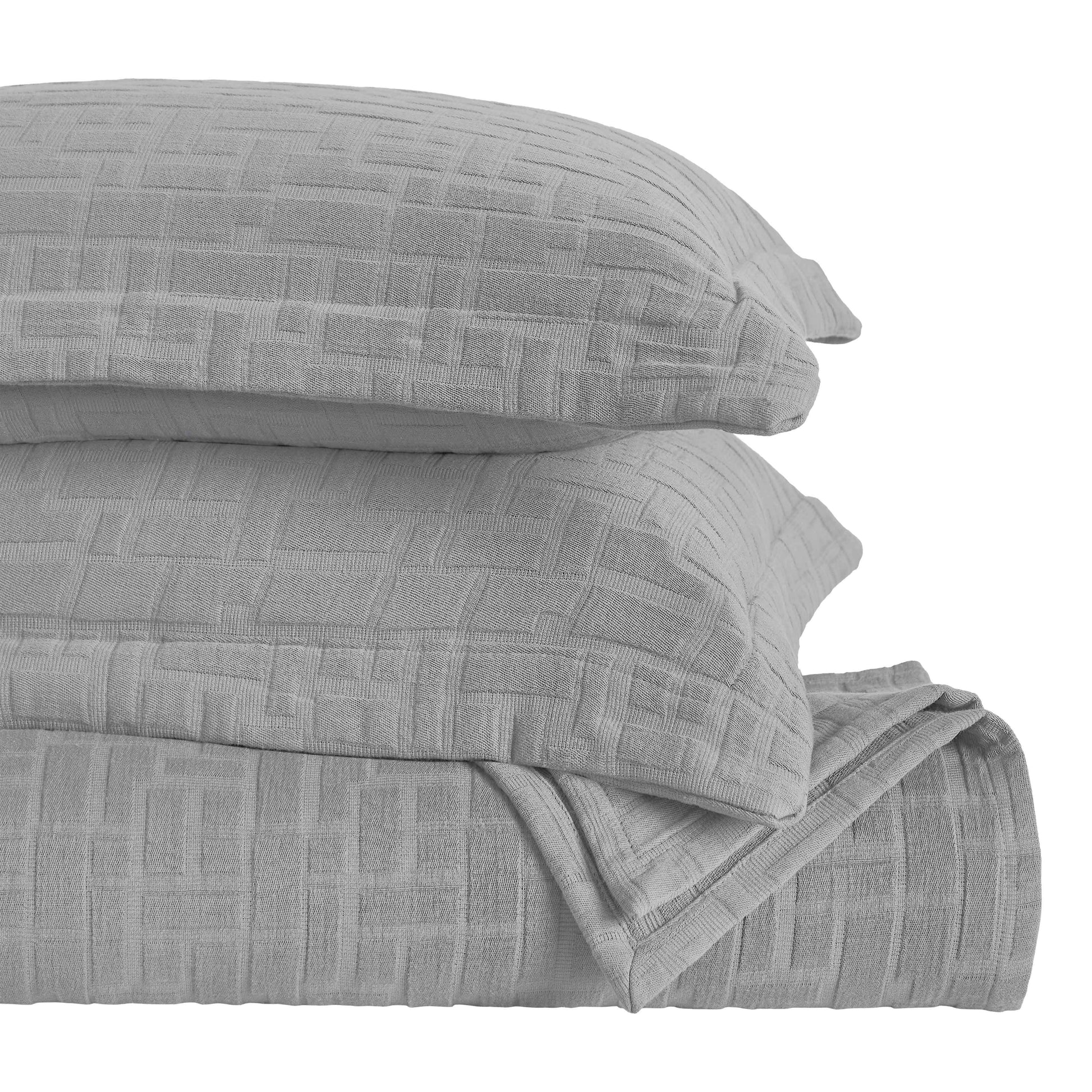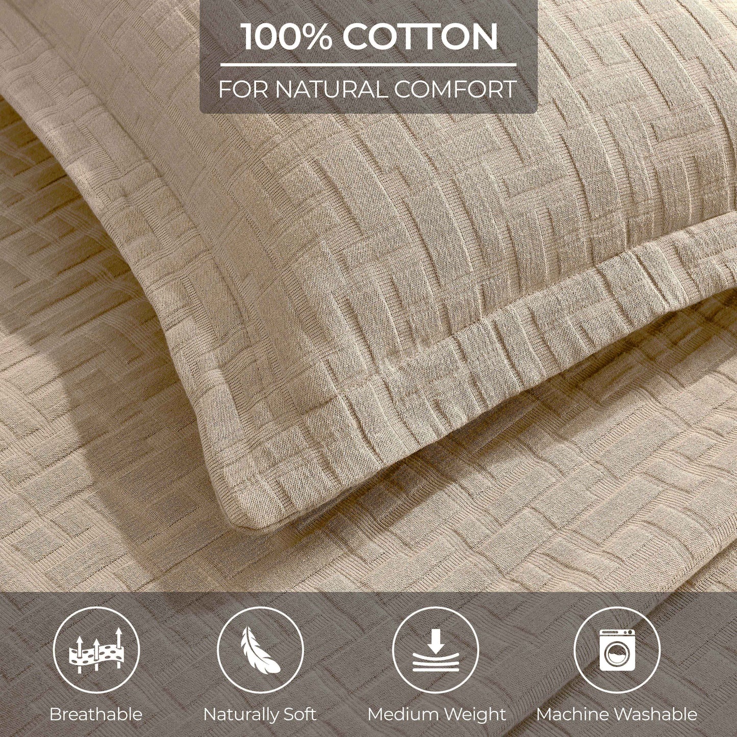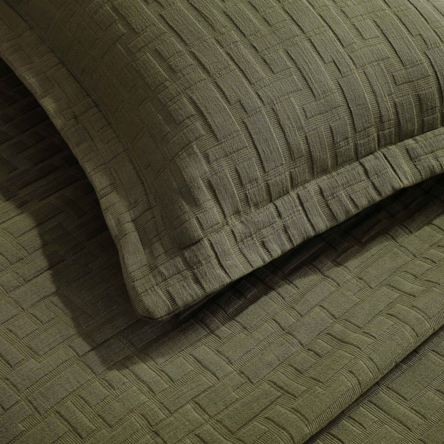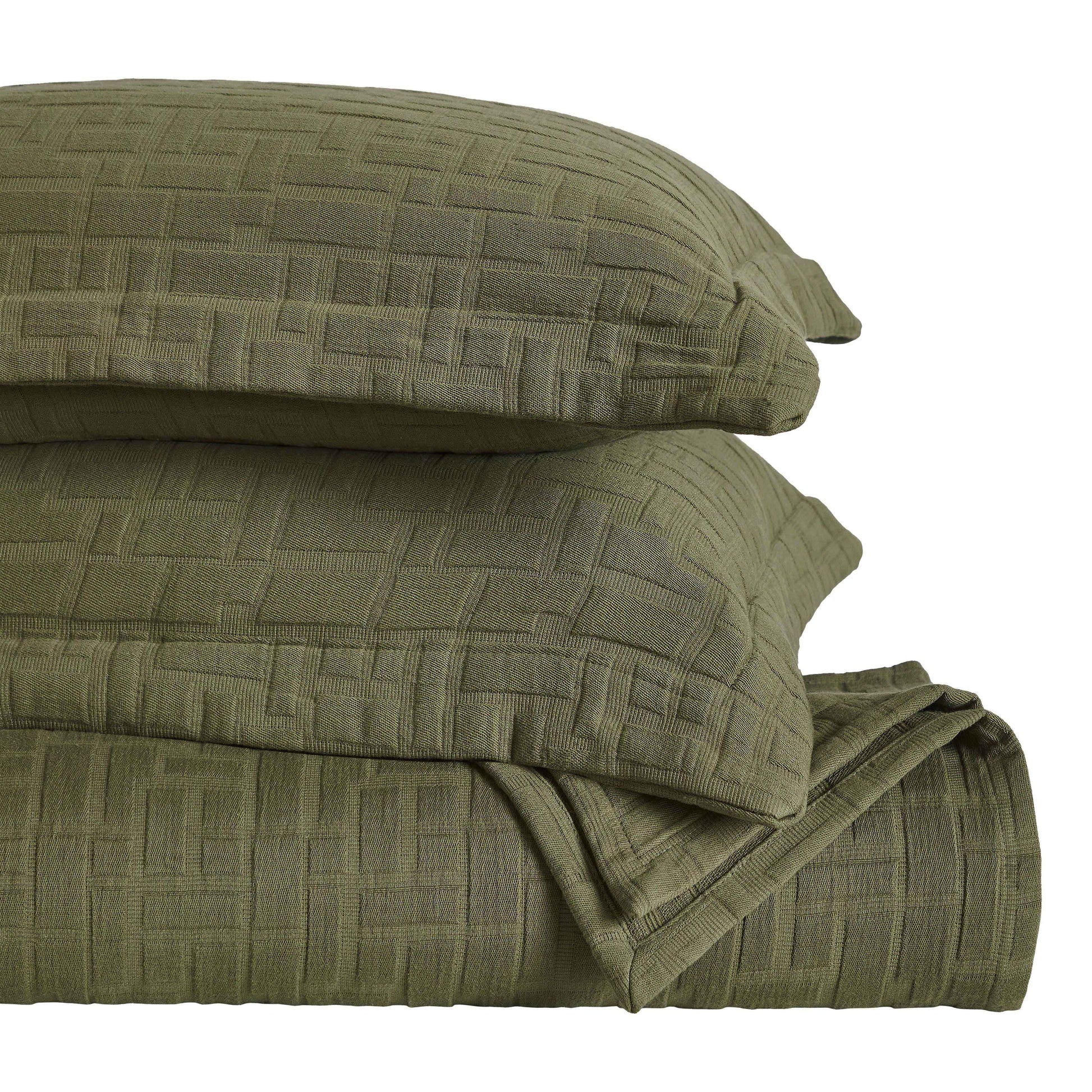 - Additional Features: Raised matelasse woven design adds a rich layer to your bed for a refined look. Medium weight material provides maximum warmth and comfort. Matching pillow shams feature envelope closure for easy access and a neat finish.