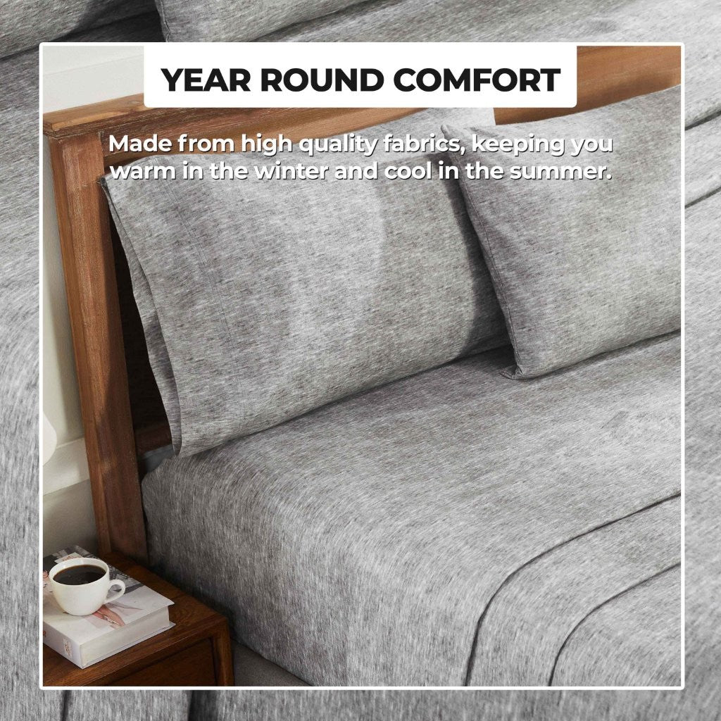 - Material Information: Chambray plain weave is naturally soft to the touch and gets softer with each wash; Insulating and breathable to keep you warmer and more comfortable when the temperature drops. Elevate your style with the distinctive two-tone look of melange fabric – a lightweight, wrinkle-resistant choice that exudes sophistication. For all sizes, this set includes an oversized deep pocket fitted sheet; Matching pillowcase(s) included to coordinate bedding ensemble.