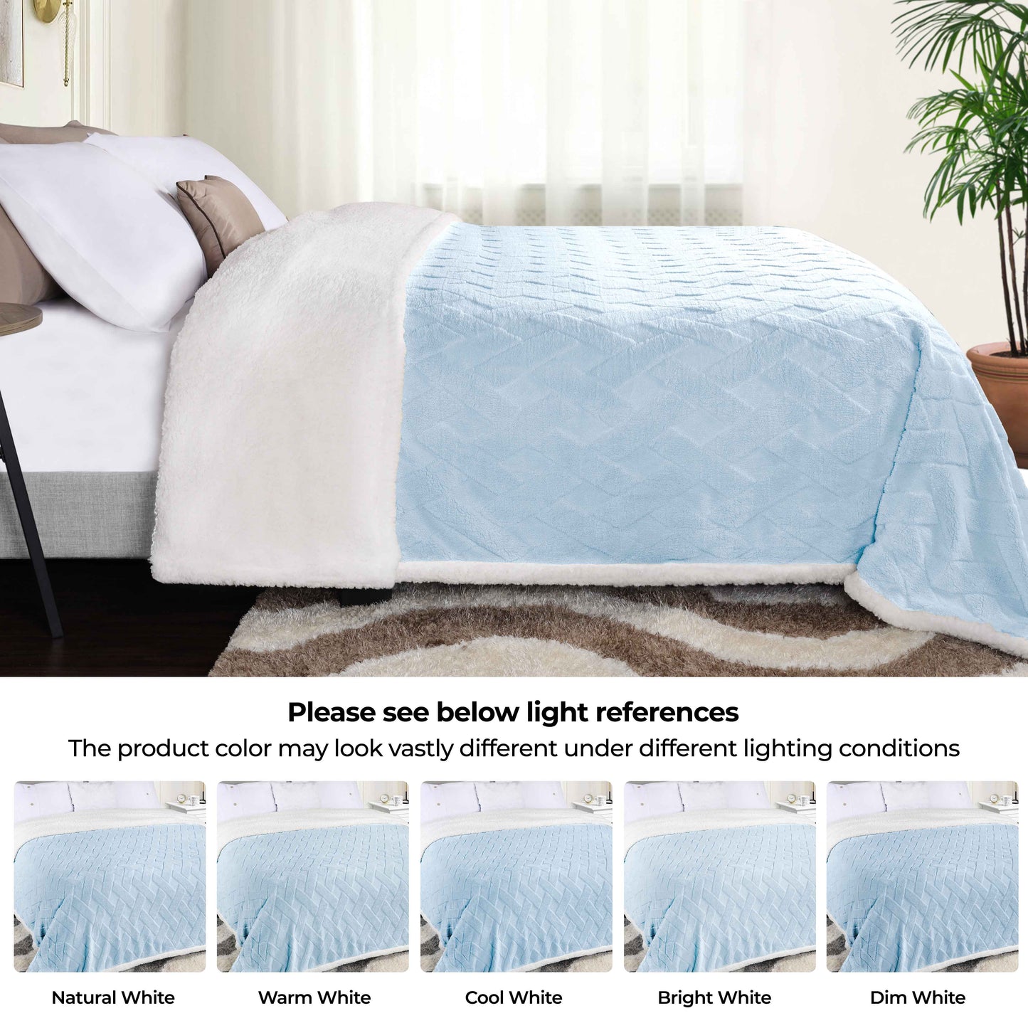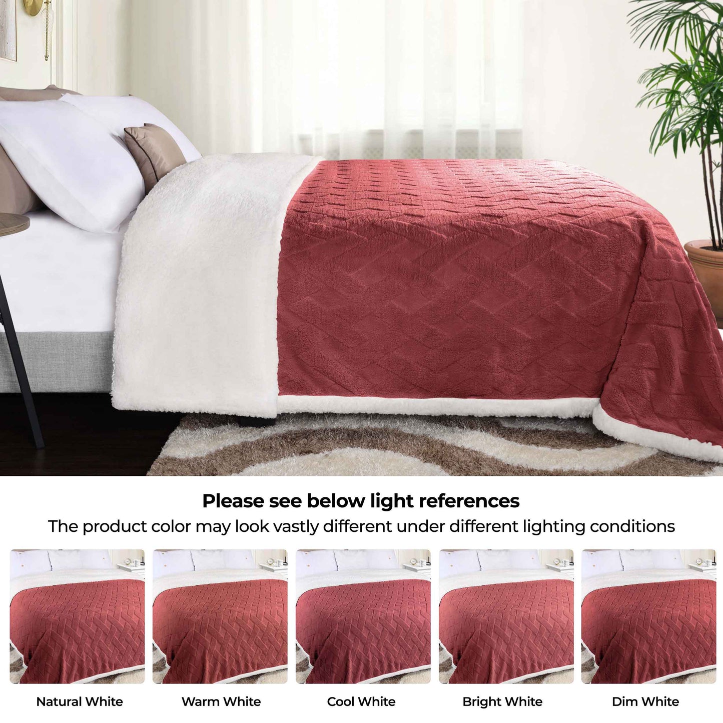 - Additional Features: Reversible with jacquard lattice design on one side and solid sherpa on the reverse. Ideal as a sofa or couch throw in the living room, or as an added layer in the bedroom; Multiple size options. Medium weight, breathable, and ultra-soft material with a smooth texture.