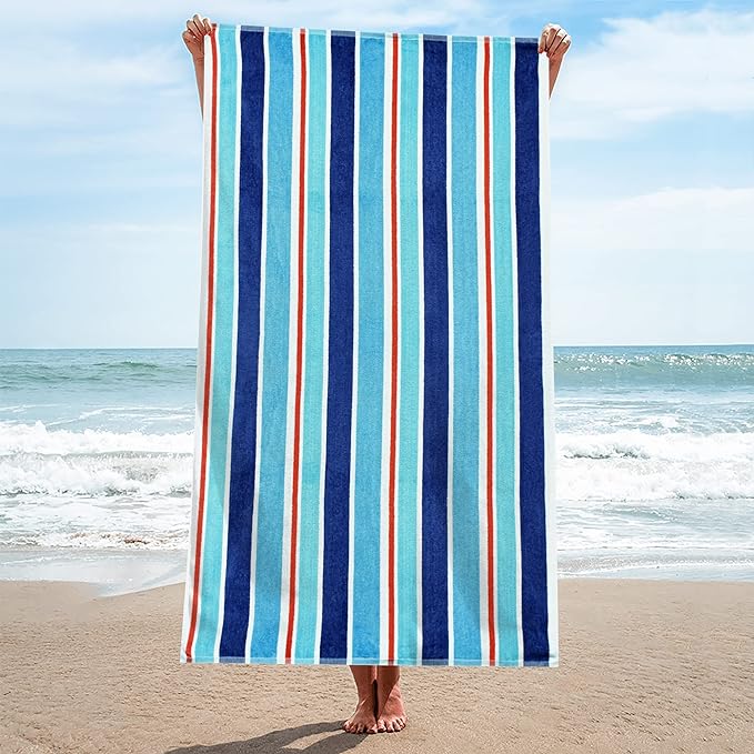 - Design Details: The fun red, white, and blue ocean stripe design makes this beach towel perfect for a day in the sun.