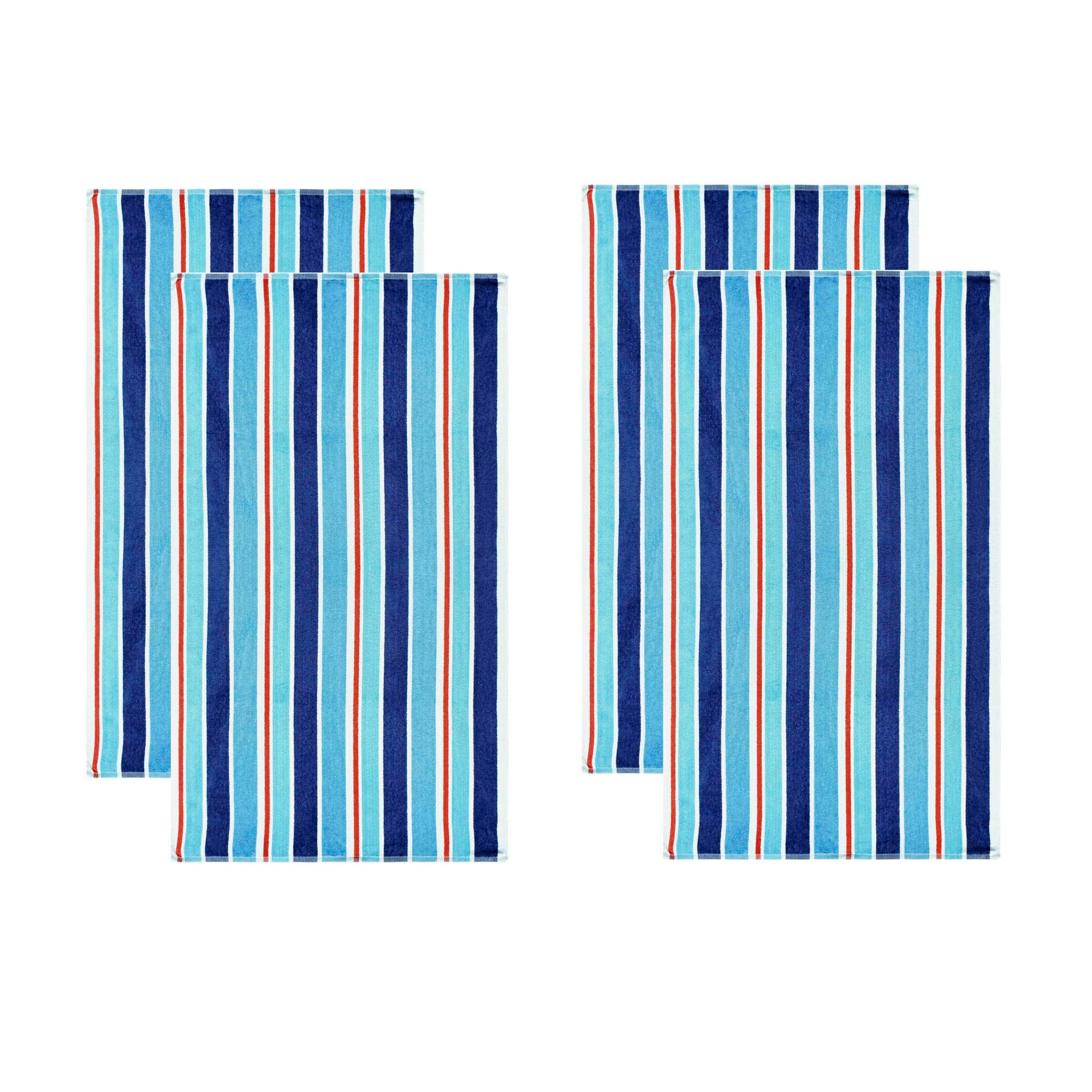 This 4 Piece Beach Towel Set is essential for summer fun at the beach or in the backyard. Made of thick cotton, this thirsty beach towel dries quickly without fading. It reverses from a soft velour side to an absorbent loop terry side, keeping you warm and dry. Our extra large beach towels are available in a wide variety of fun styles and bright colors from nautical and patriotic designs perfect for a Fourth of July pool party, to cute creature beach towels for girls and boys, and classic stripes and polka dots, an easy choice for all beachgoers.