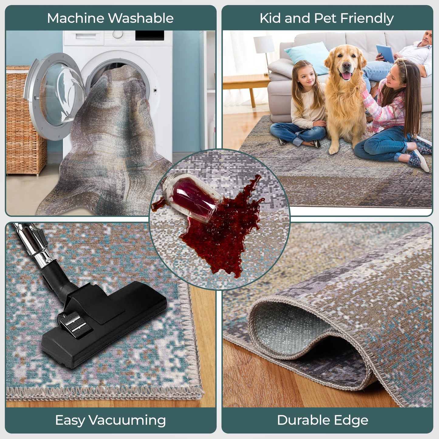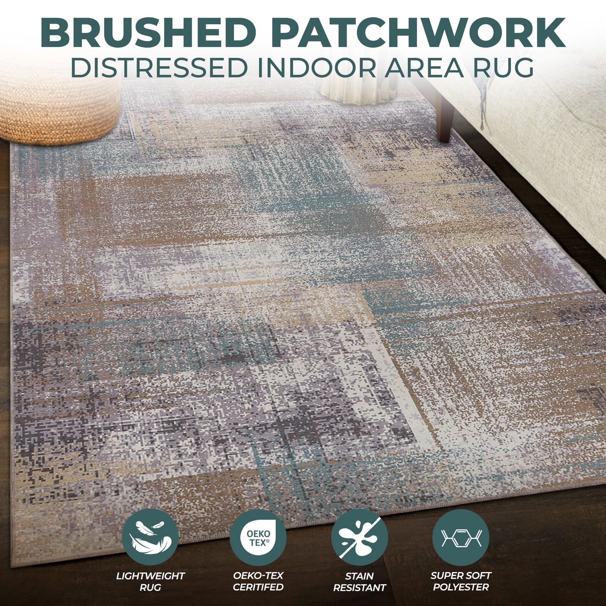Ara Brushed Patchwork Non-Slip Washable Indoor Area Rug or Runner