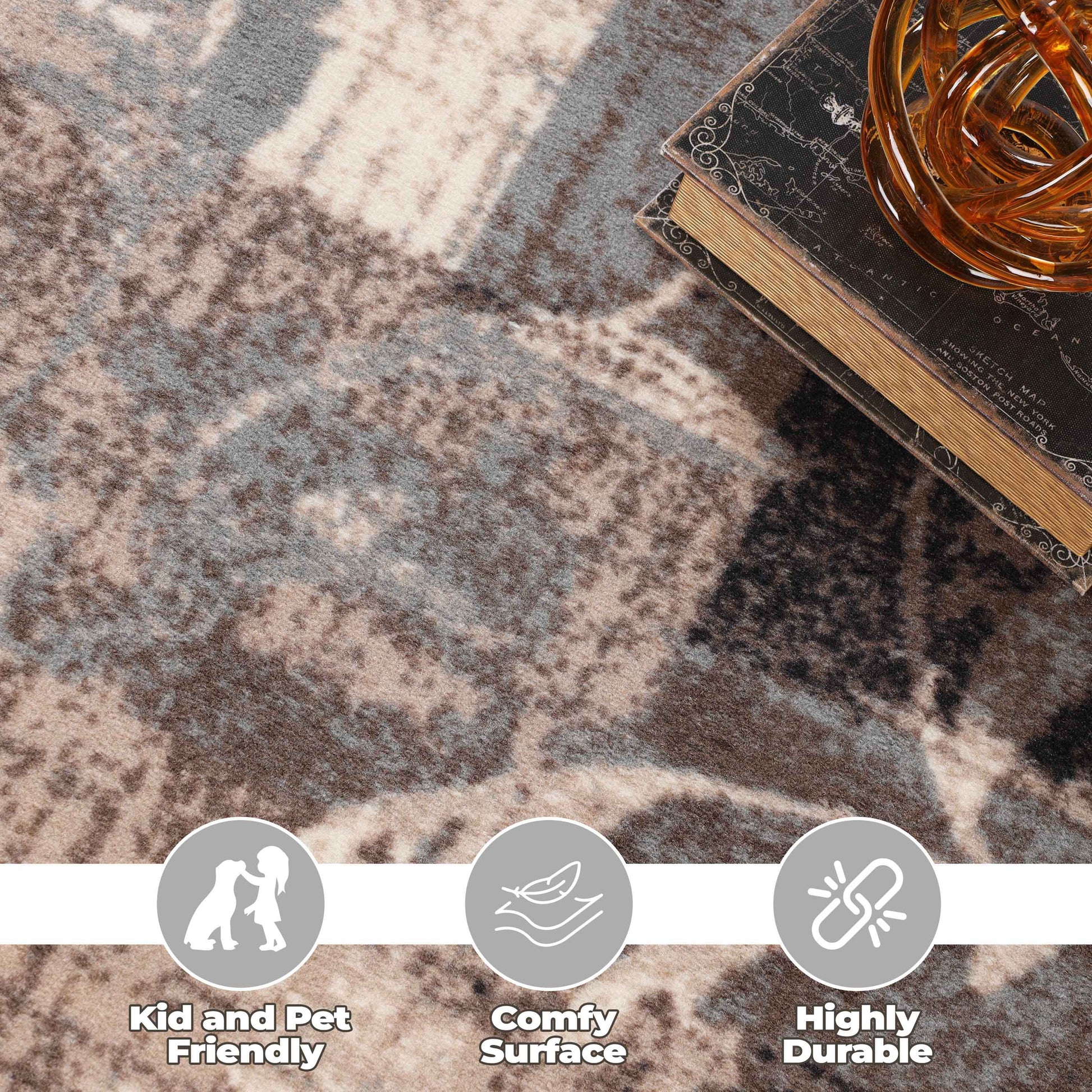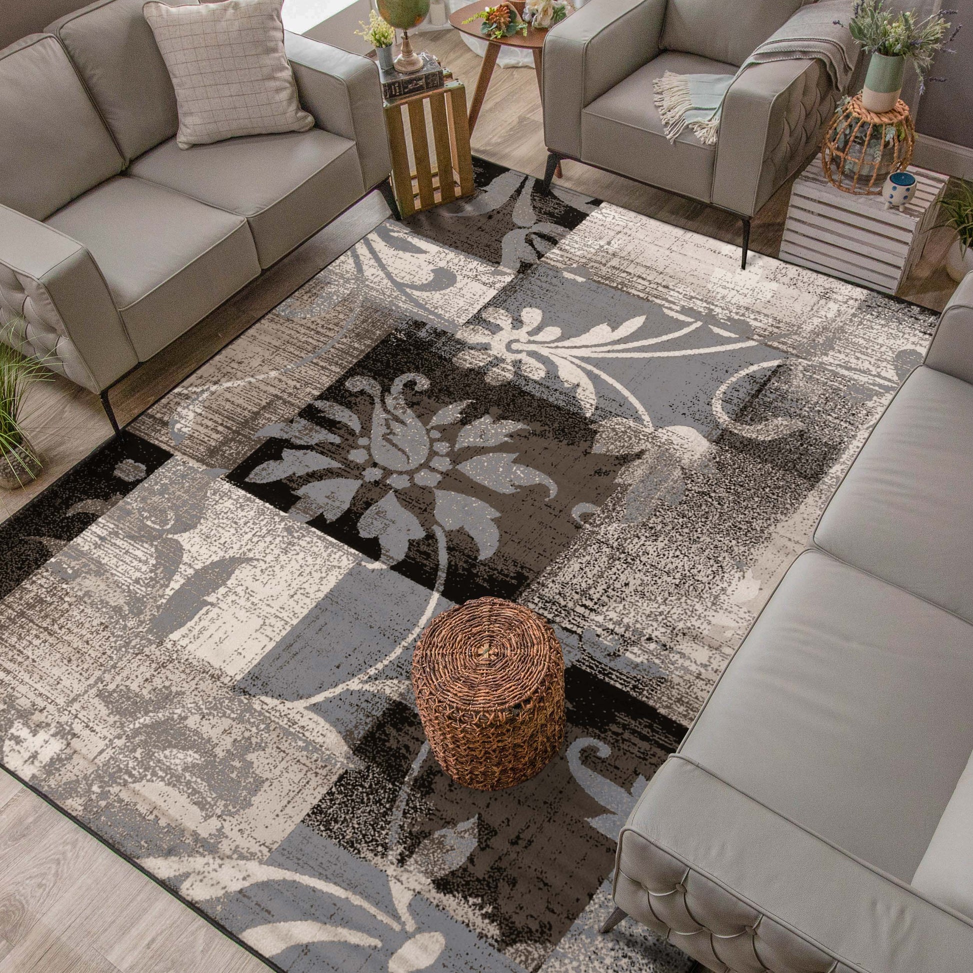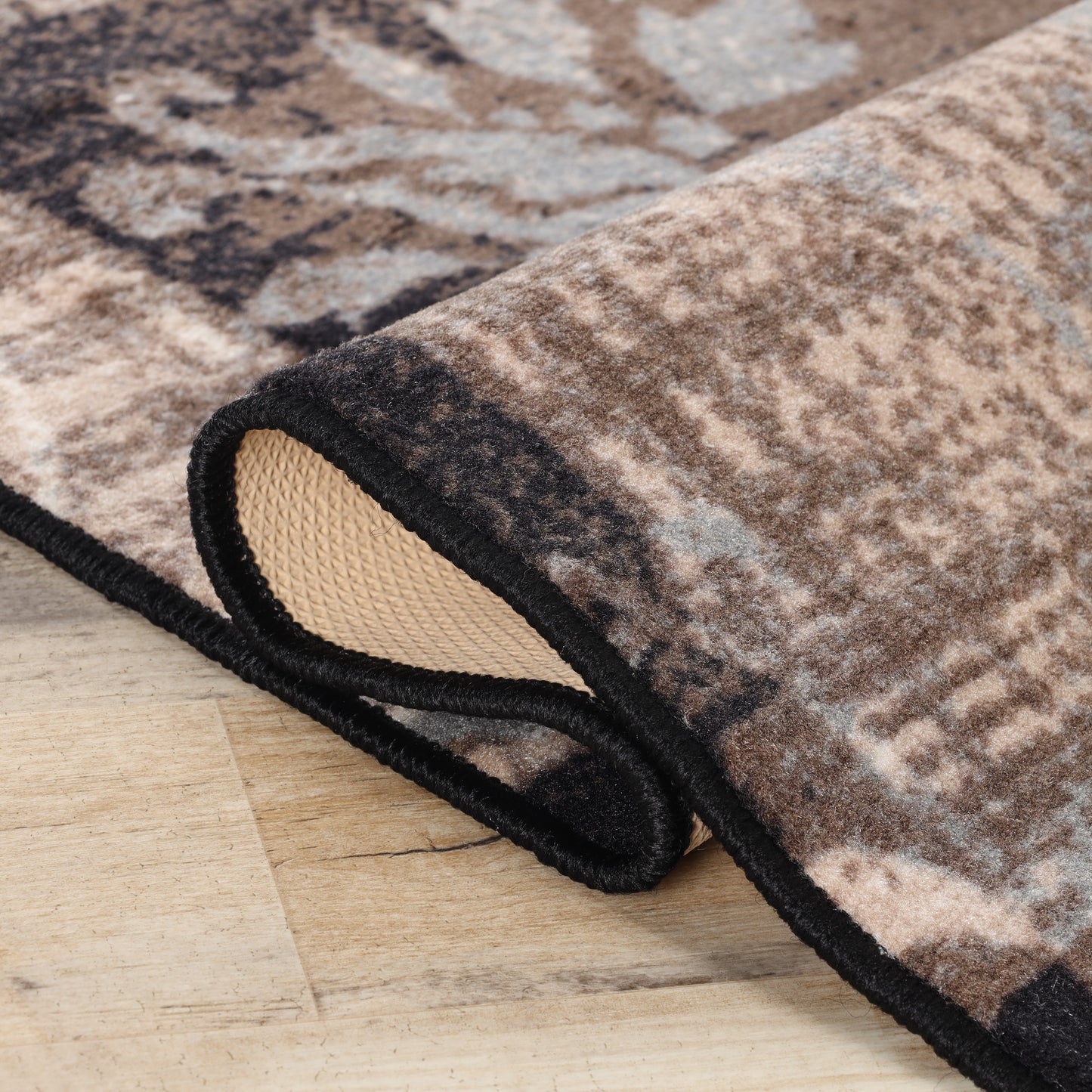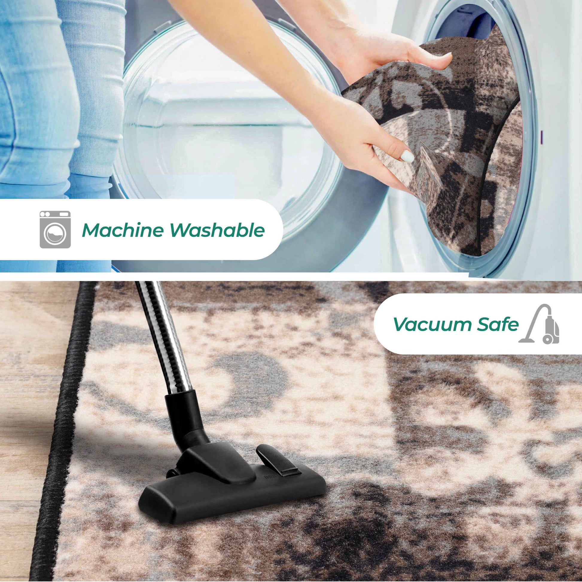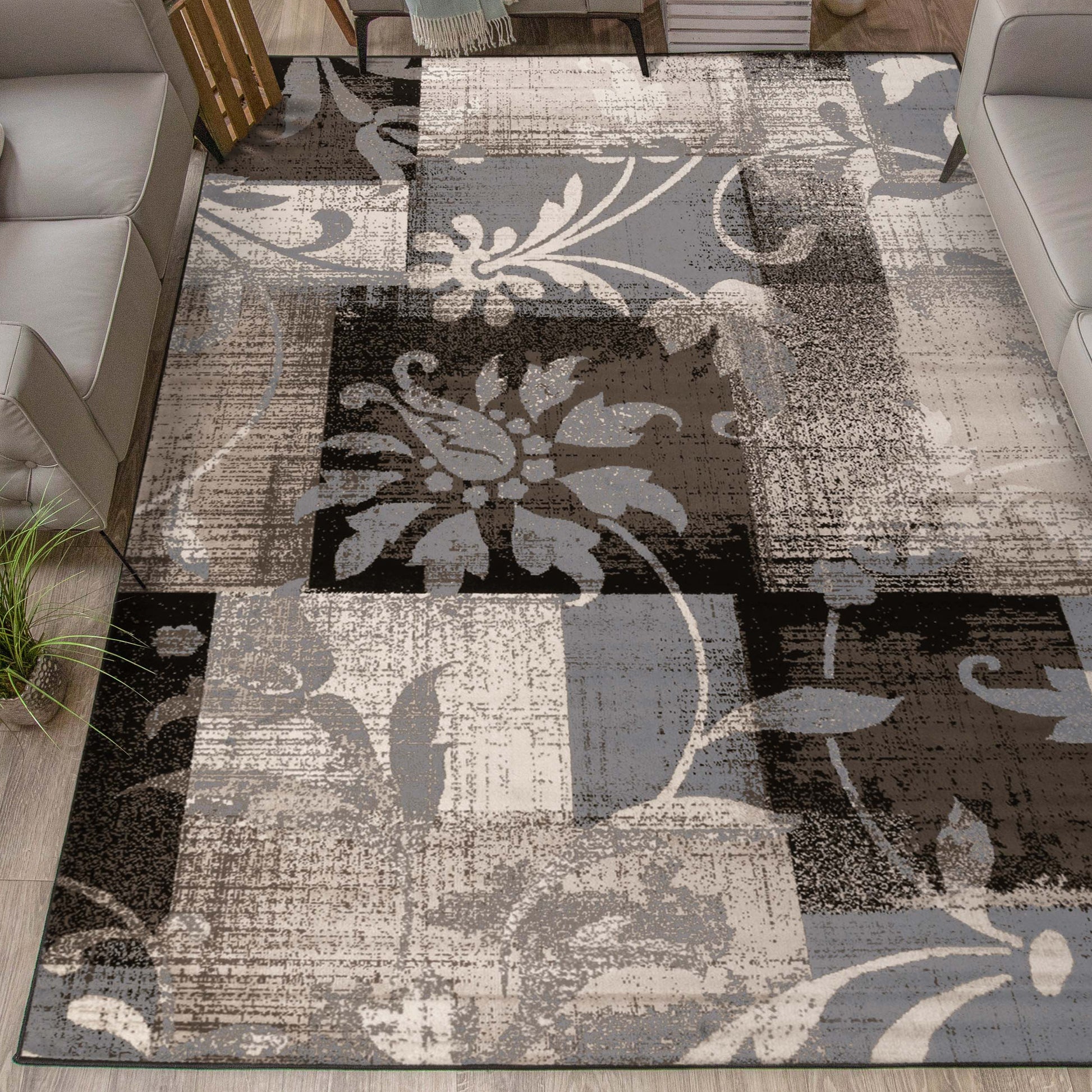 The contemporary design of the Pastiche Area Rug features oversized scrolling floral and vines that peek through a geometric grid of beige, cream, and chocolate to bring visual intrigue to any room. This bold print boasts a 0.18” rug thickness that is perfect for everyday use. Crafted from 100-percent Nylon fibers, this piece makes for the perfect finishing touch to any high-traffic area like living rooms, dining rooms, or entryways. The sturdy foam backing eliminates the need for a rug pad making this a long-lasting and durable option for homes with children and pets. These items are machine washable & rug-able. This area rug is a desirable option if you are looking for outstanding value at an affordable price, which can only be found at Superior.