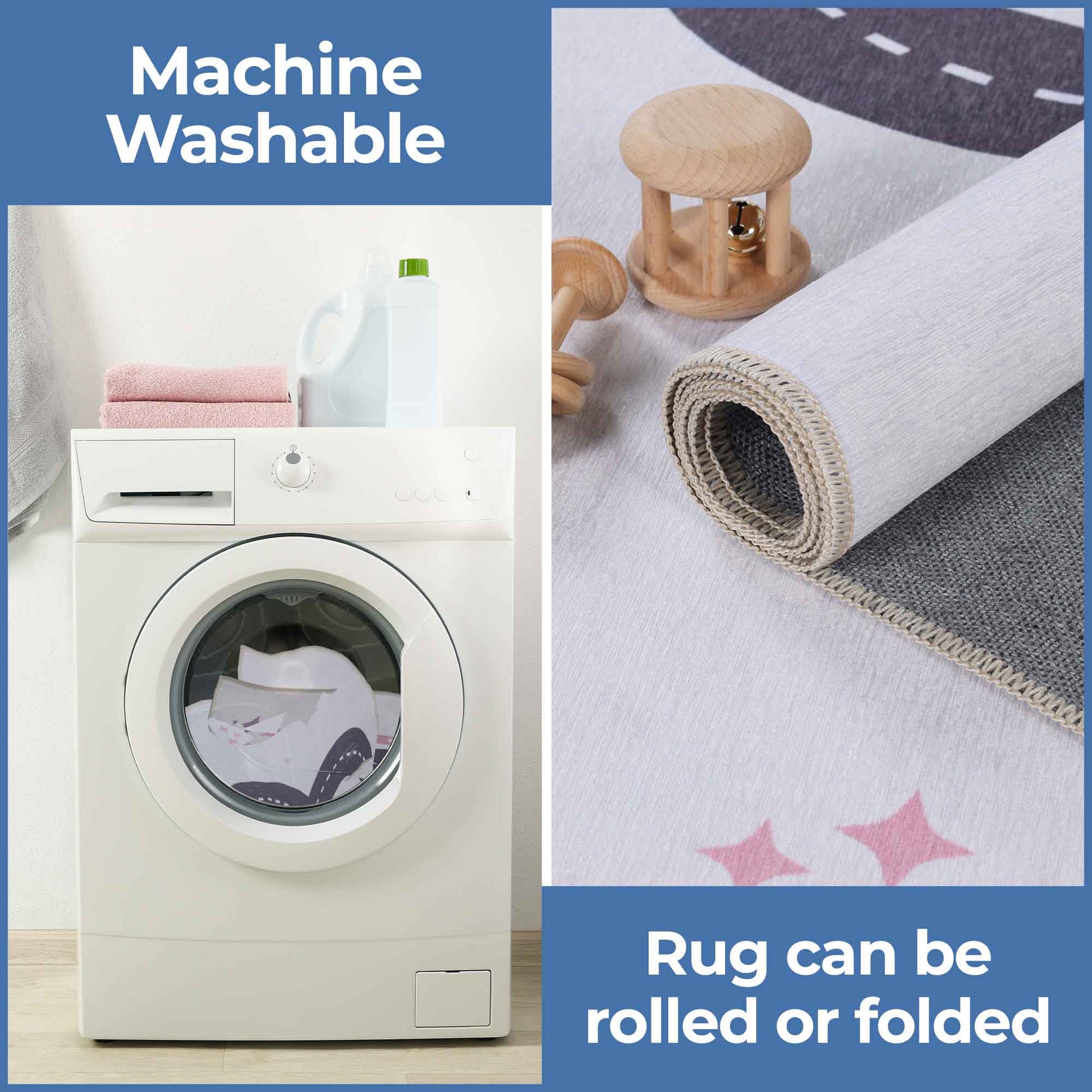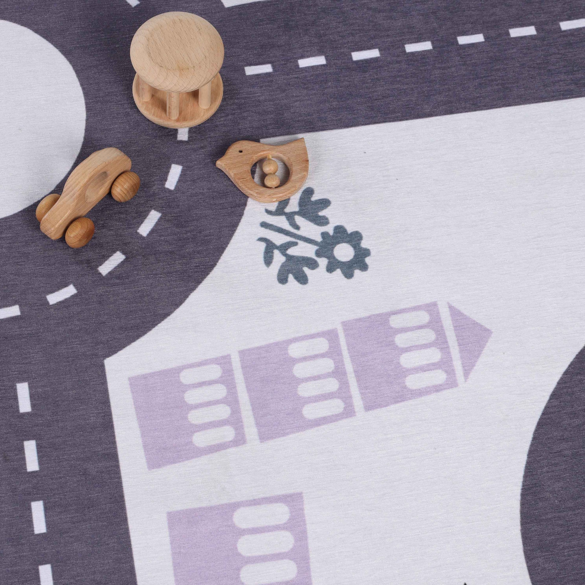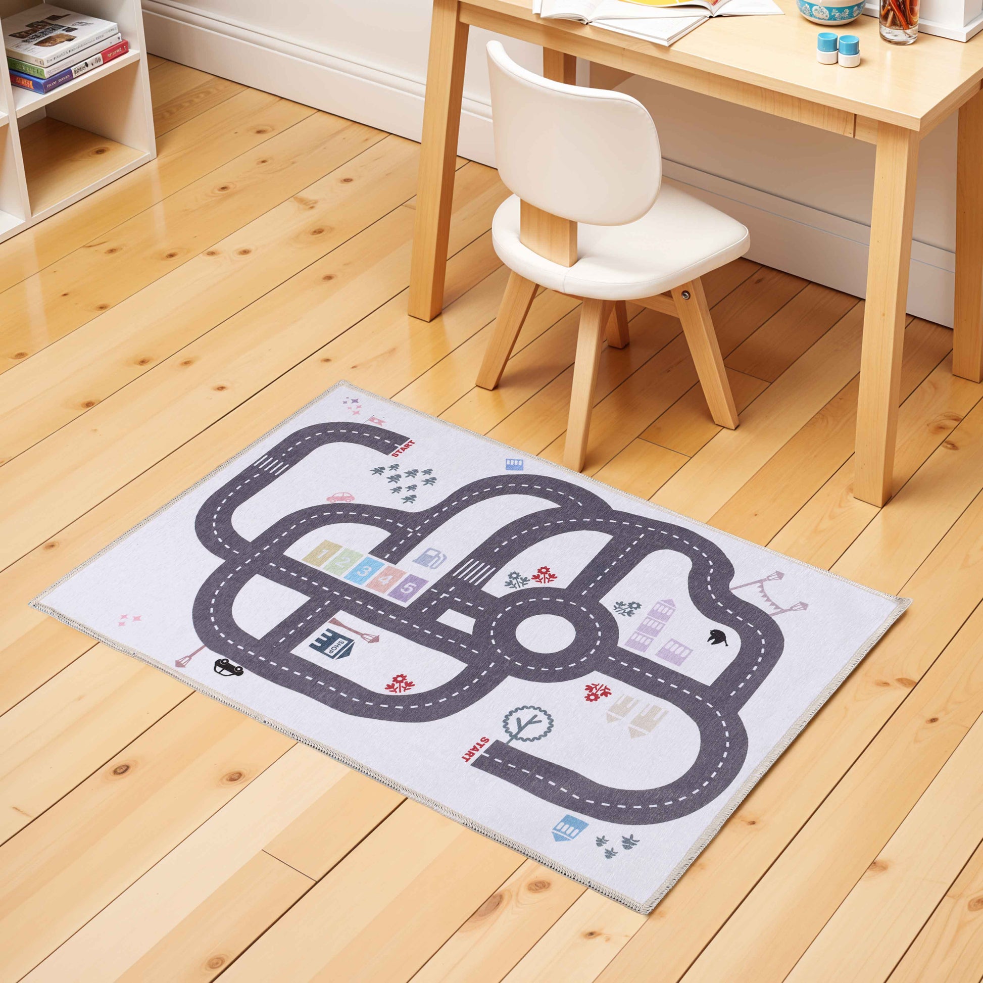 - Pattern: With roads, roundabouts, and fun locations, this rug becomes a town for toy cars and trucks, encouraging kids to create stories and explore their own miniature world.