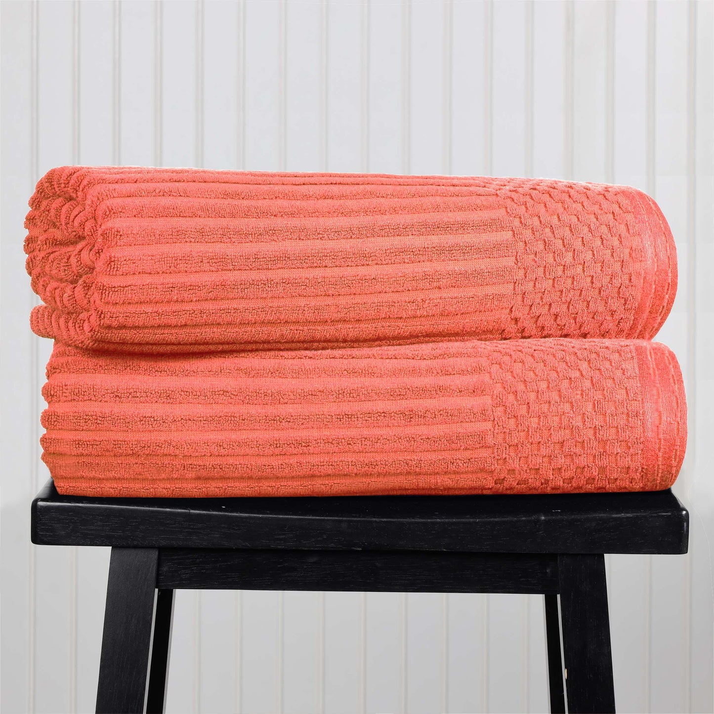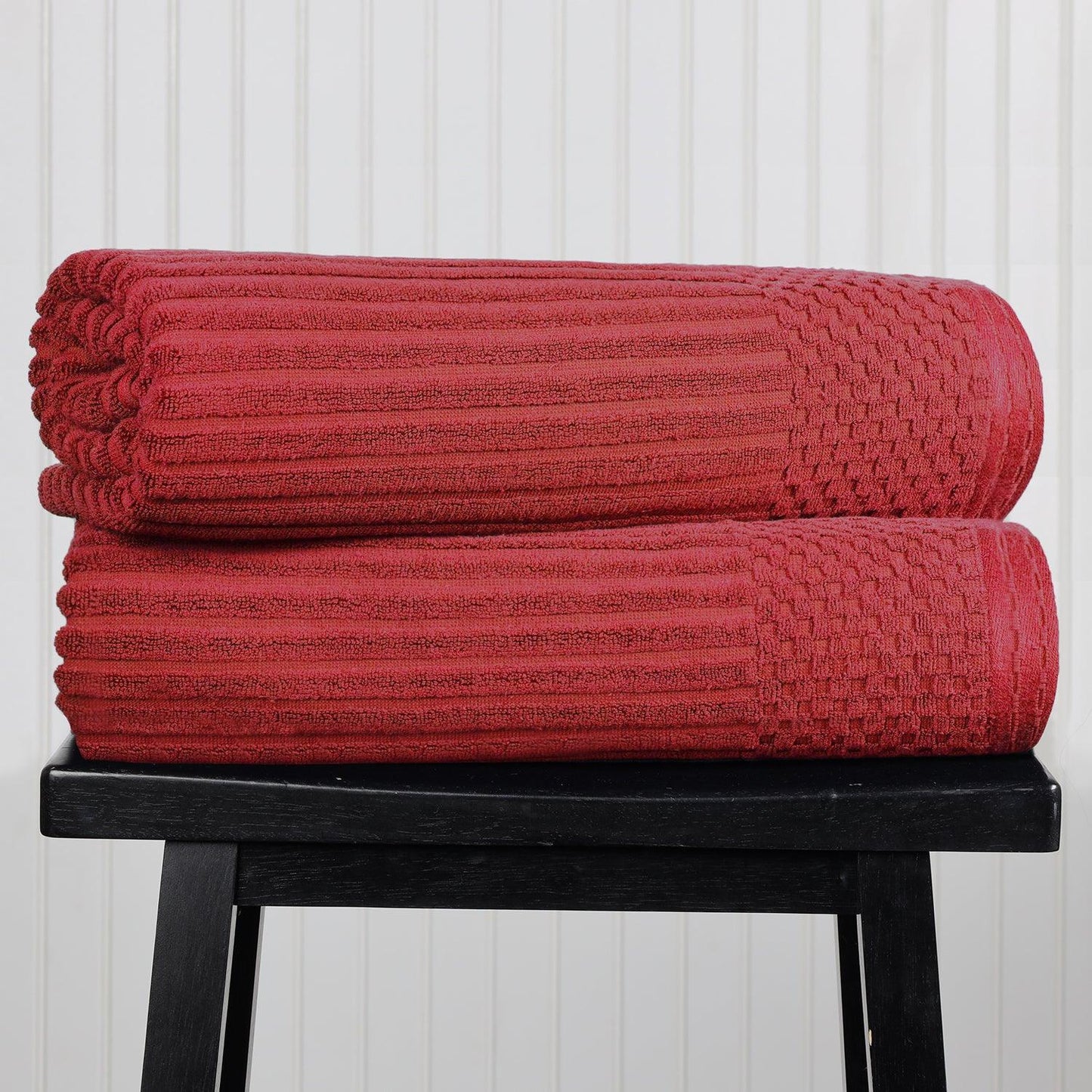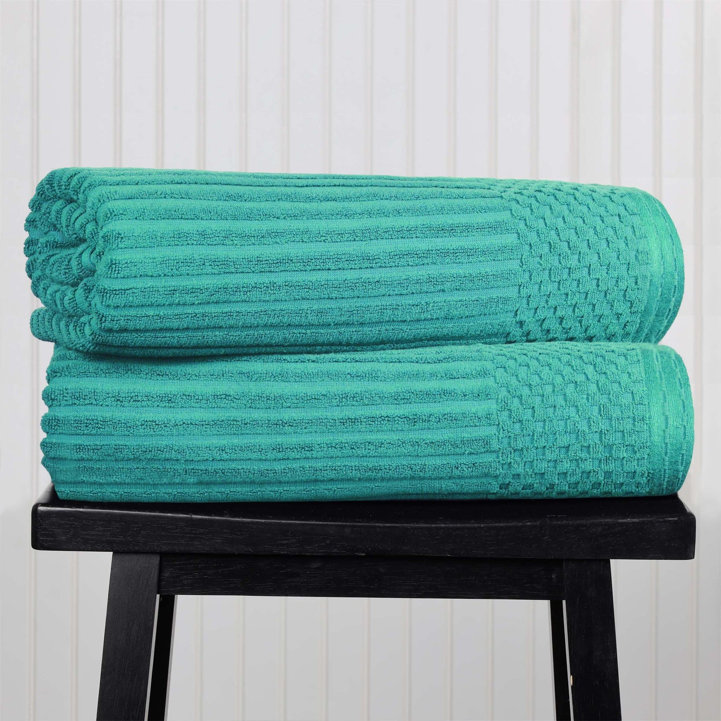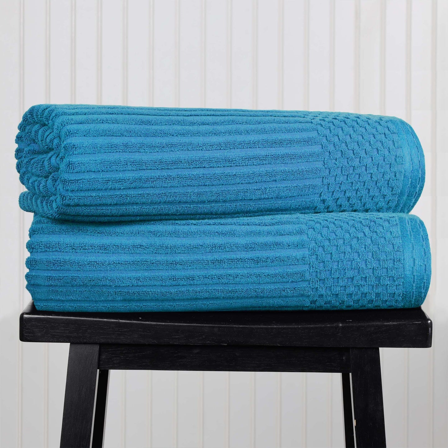 Bring your bathroom back to life with the Ribbed Textured Cotton Bath Sheet Ultra-Absorbent Towel Set. The ribbed texture features a checkered pattern along the border of the towel that will effortlessly make a stylish statement and wow your guests. Each towel is made with a singly-ply construction to ensure that you will get dried quickly and comfortably after each use. The towel is crafted with premium quality Cotton which will withstand many washes. This incredibly soft towel set includes two bath sheets in an assortment of solid colors to match any modern or transitional style.