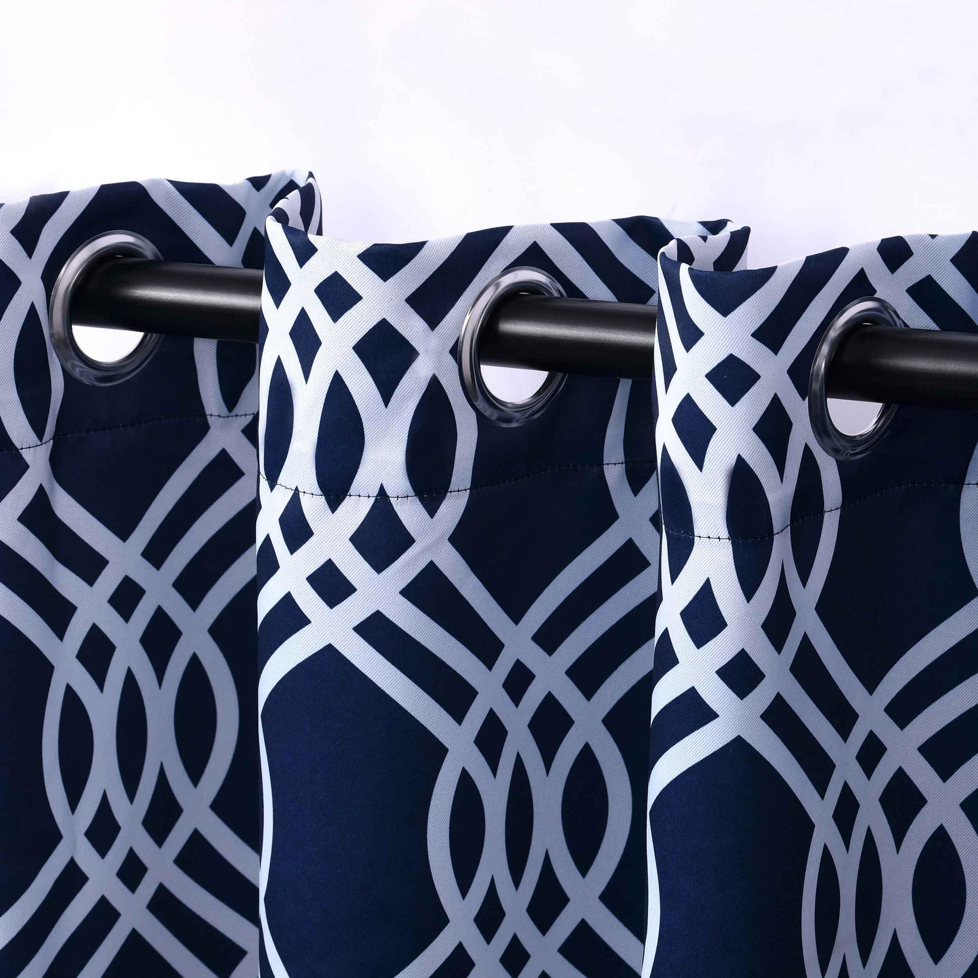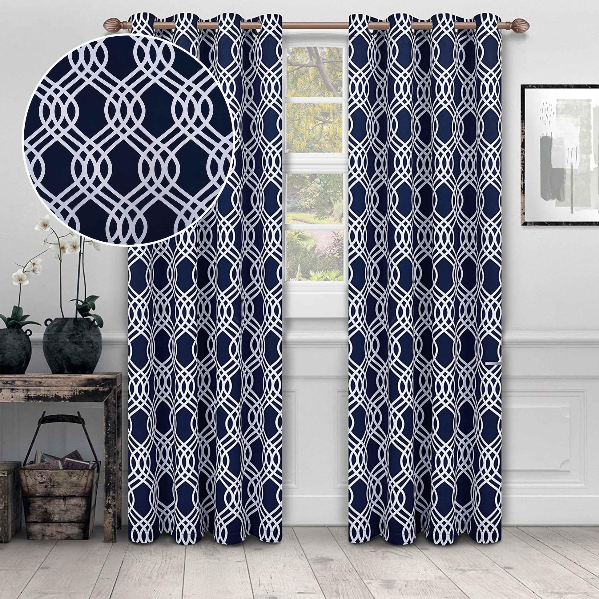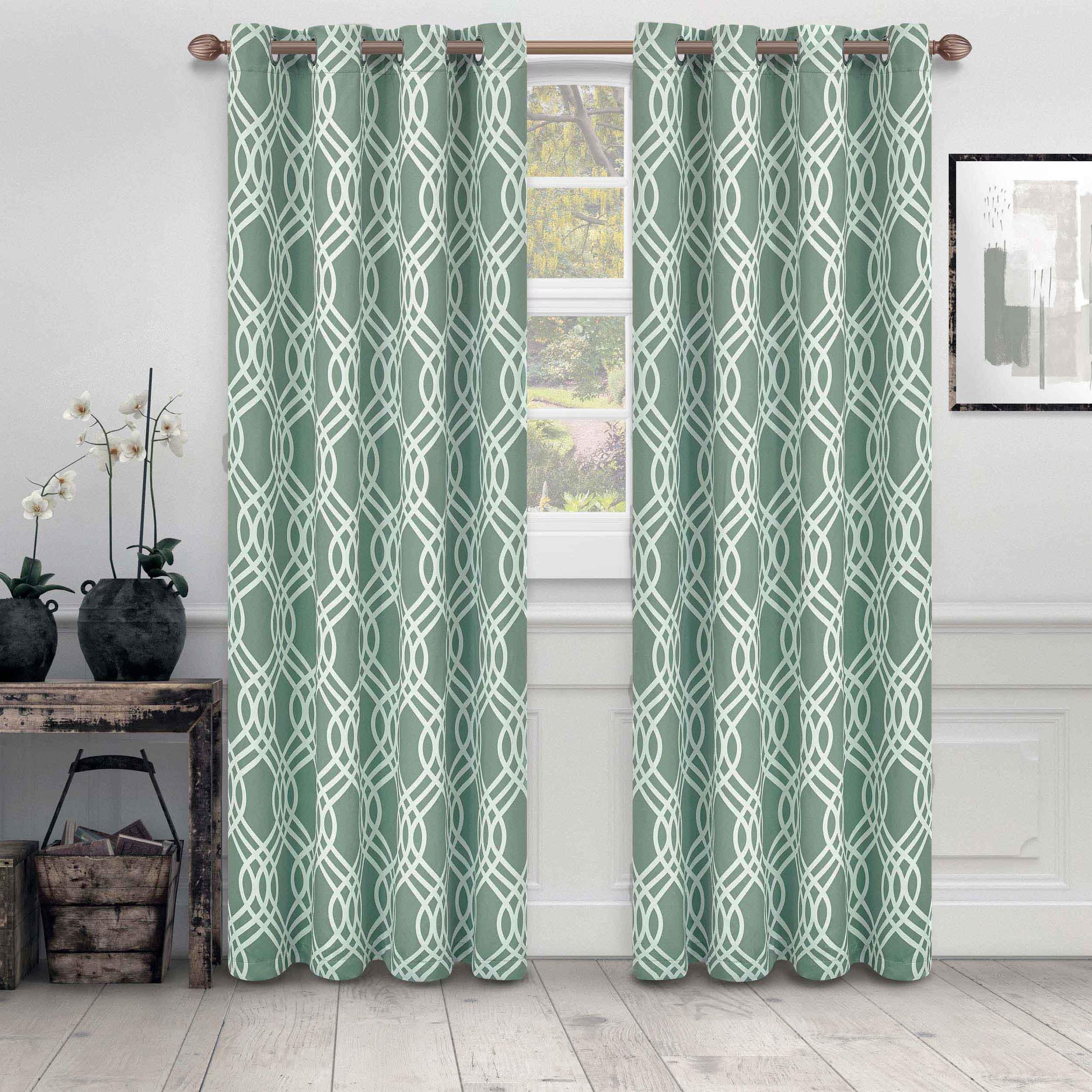 Accent your windows with the eye-catching modern style of the Ribbon Room Darkening Blackout Curtains by Superior. Crafted from 100% polyester with a rod pocket or rust-free grommet header (depending on size), this panel set is durable and modern in design. Our blackout curtains block out 70-80% unwanted sunlight and UV rays, so you can feel cozy in your home. Perfect thermal insulators, each panel in this set reduces room heat and cold loss through your windows to help you save energy and maintain the ideal temperature. These curtain panels display a classic all-over trellis design giving you an elegant window accent with the comfort and convenience of sun blocking features.