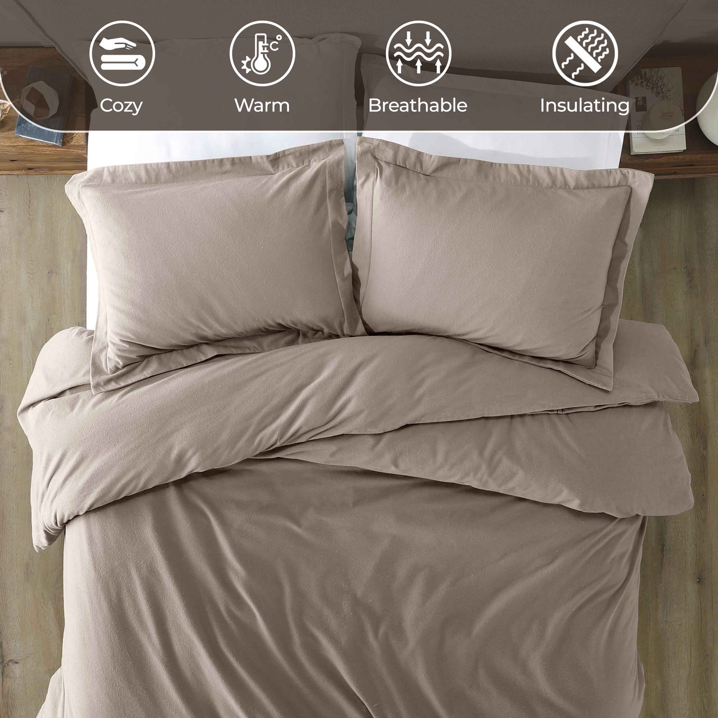 Give your bedroom the ultimate cozy update with our Rome Flannel Cotton Duvet Cover Set. This duvet cover set is crafted from luxuriously soft brushed flannel cotton, which is strong, plush, breathable. As an added bonus, this fabric gets softer after every wash. Stay warm on crisp mornings and cold nights with this insulating bedding set. This duvet cover fastens with buttons to make sure your duvet insert or comforter doesn't shift or come undone. This unique solid design is available in soothing color options to instantly update your bedroom decor style. For a matching look, the included pillow sham(s) feature an elegant 2 inch flange.