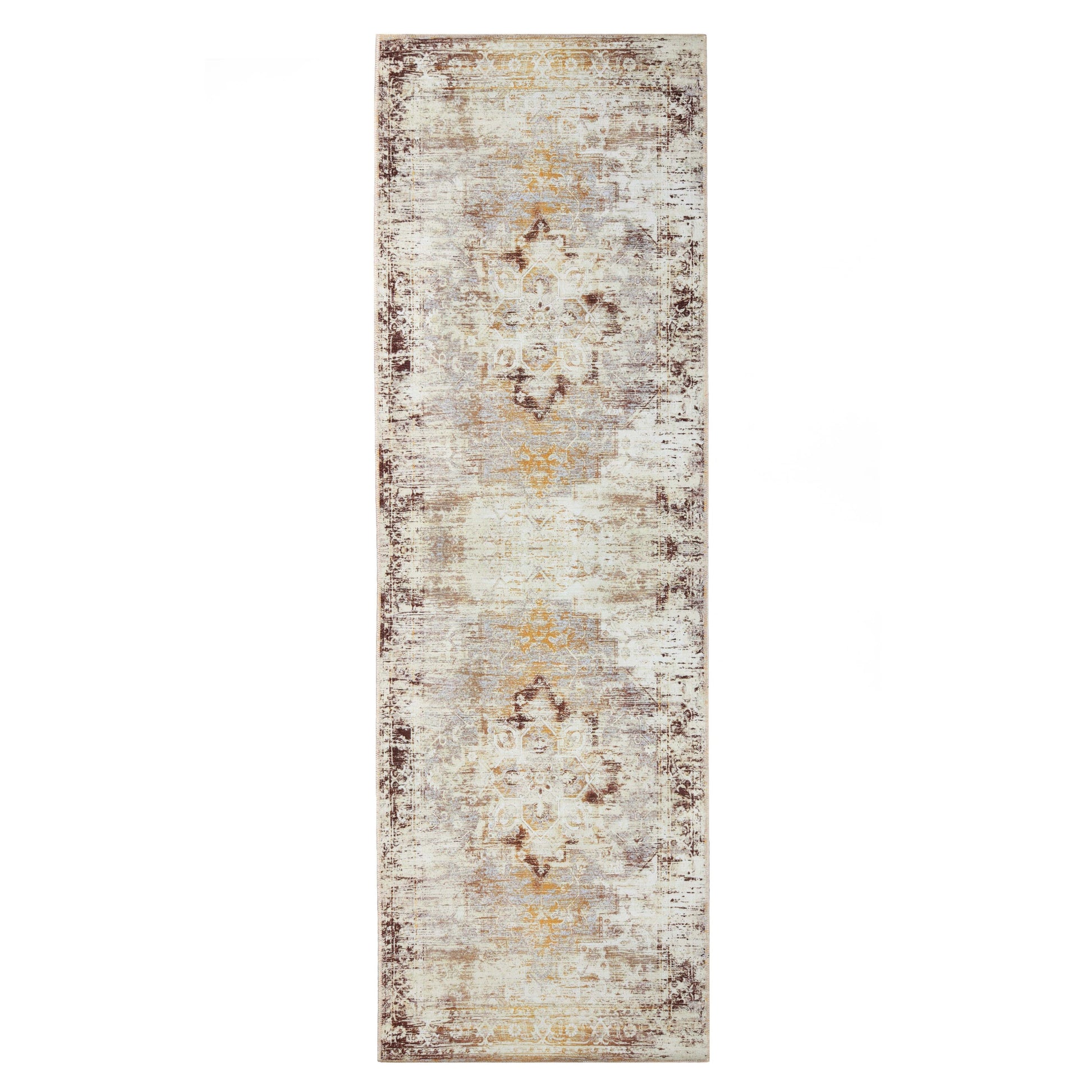 Dove Faded Medallion Machine Washable Indoor Area Rug or Runner Rug
