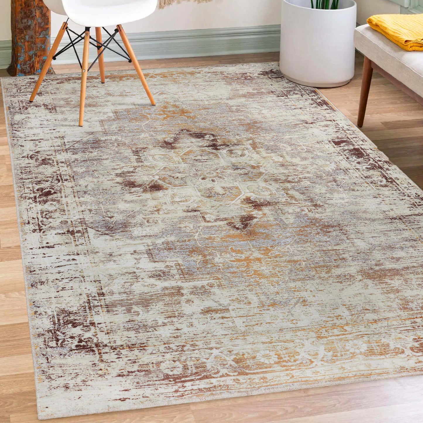 Protect your floors while adding a dash of charm to your home with our Dove Rustic Faded Medallion Machine Washable Indoor Area Rug. Crafted from durable polyester, this indoor area rug features the ultimate comfort with its thin and flexible rug thickness. This luxurious rug provides relief from cold tile or hardwood floors and is machine washable for easy maintenance. Available in a soothing distressed cream color, this rug is a durable and long-lasting option for homes with children and pets.