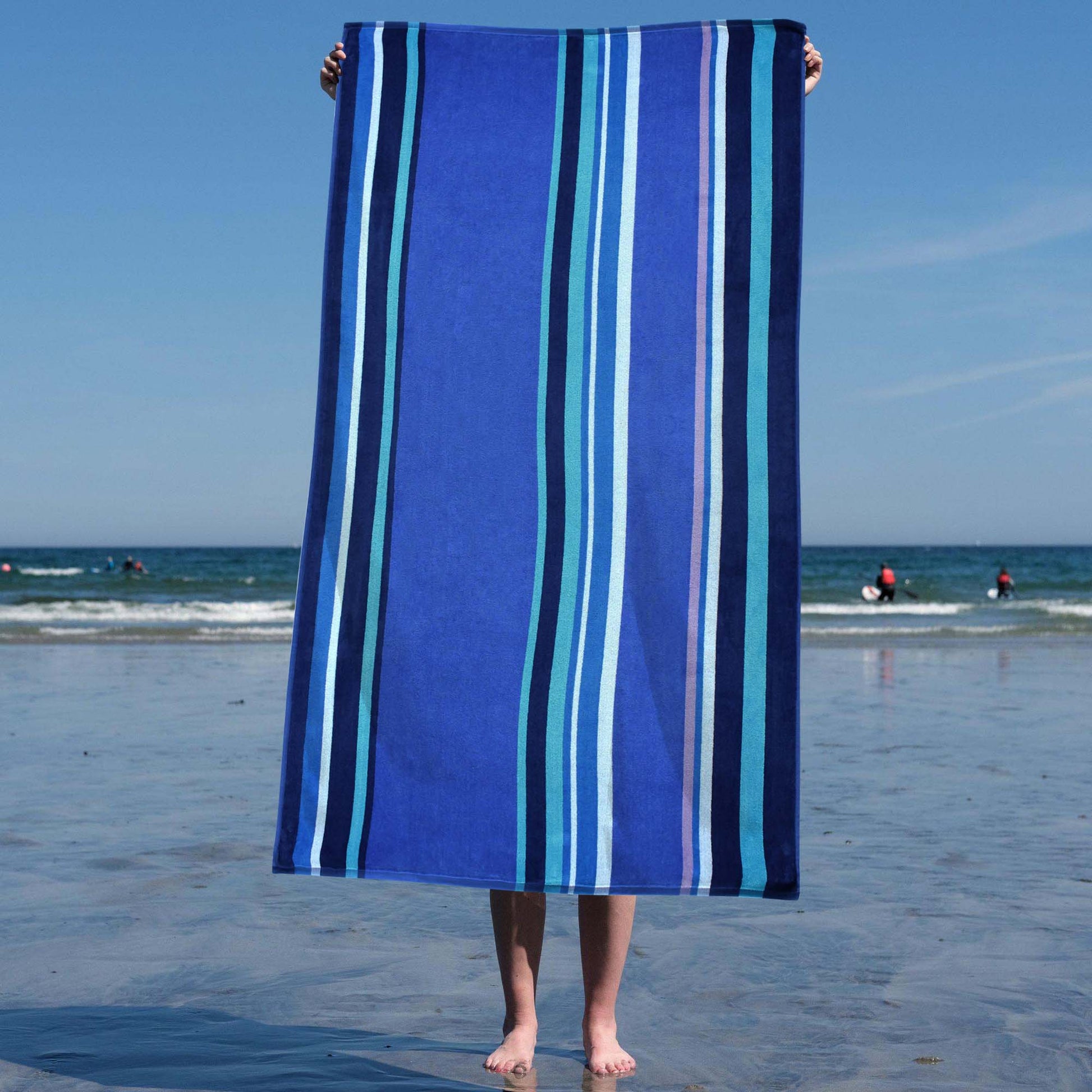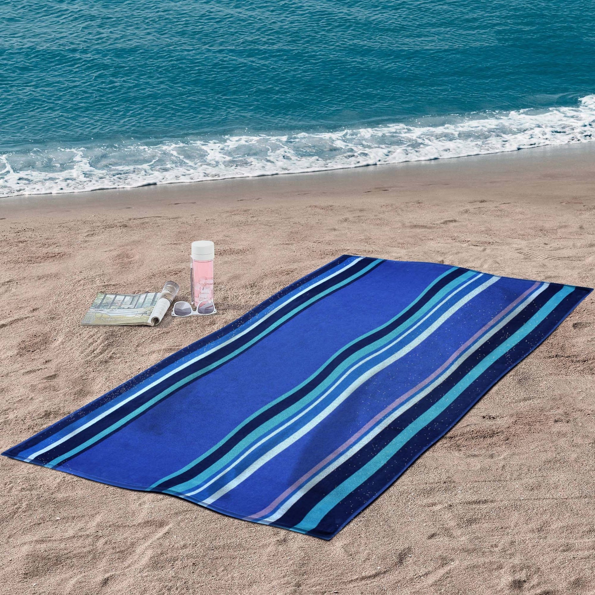 Enjoy some much-needed summer fun with the Seafinst Oversized Cotton Beach Towel. This 100-percent Cotton towel features an absorbent loop terry construction on one side and a soft velour on the other helping to keep you warm and dry. This towel features a playful wide stripe design and a sturdy hem and trim, making this towel a desirable choice season after season. This machine washable summer essential is available in a variety of color options that are sure to add a splash of color to any outing.