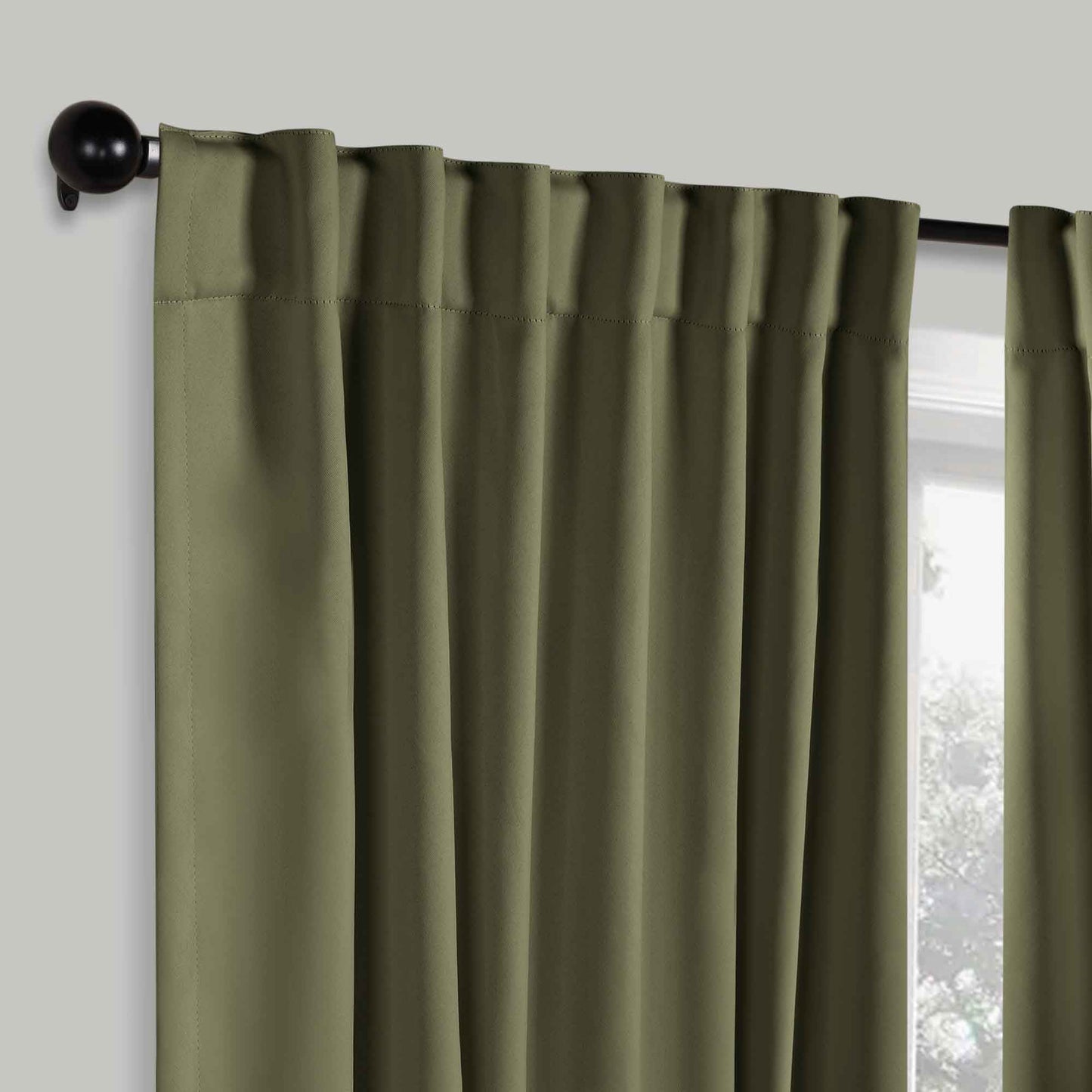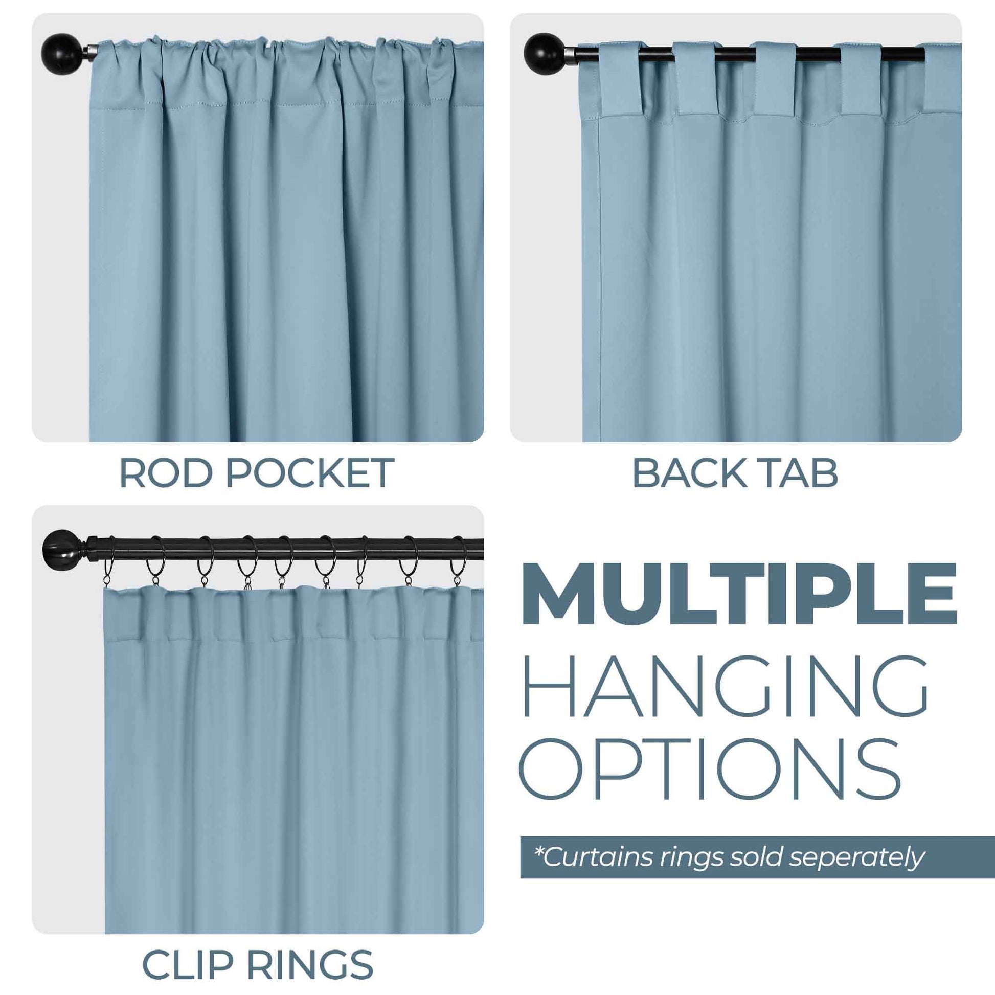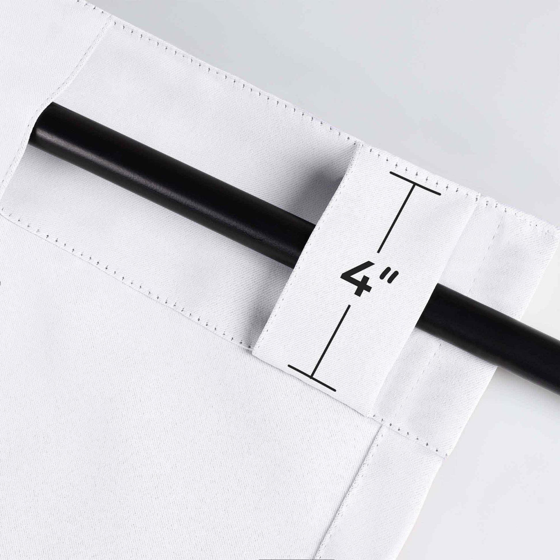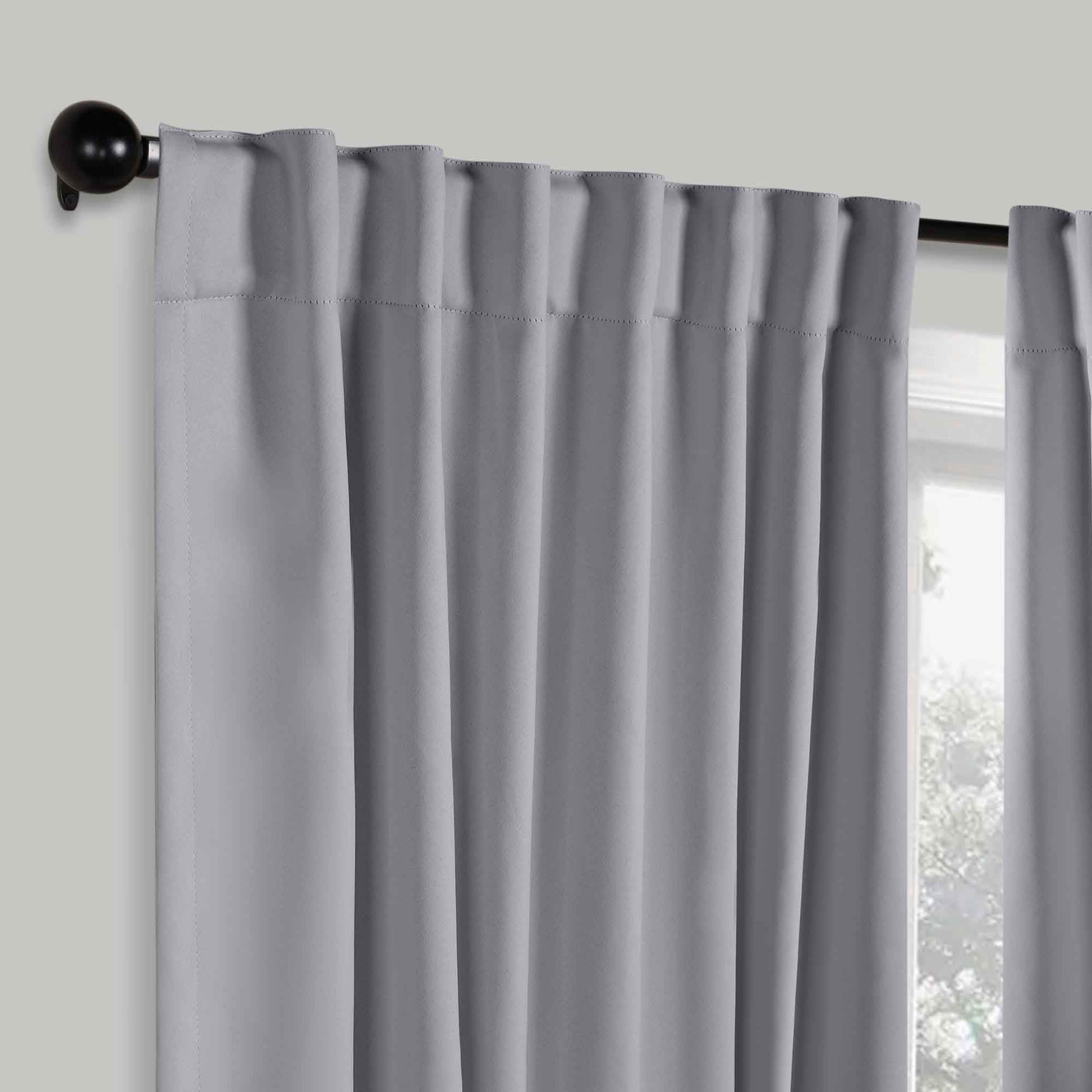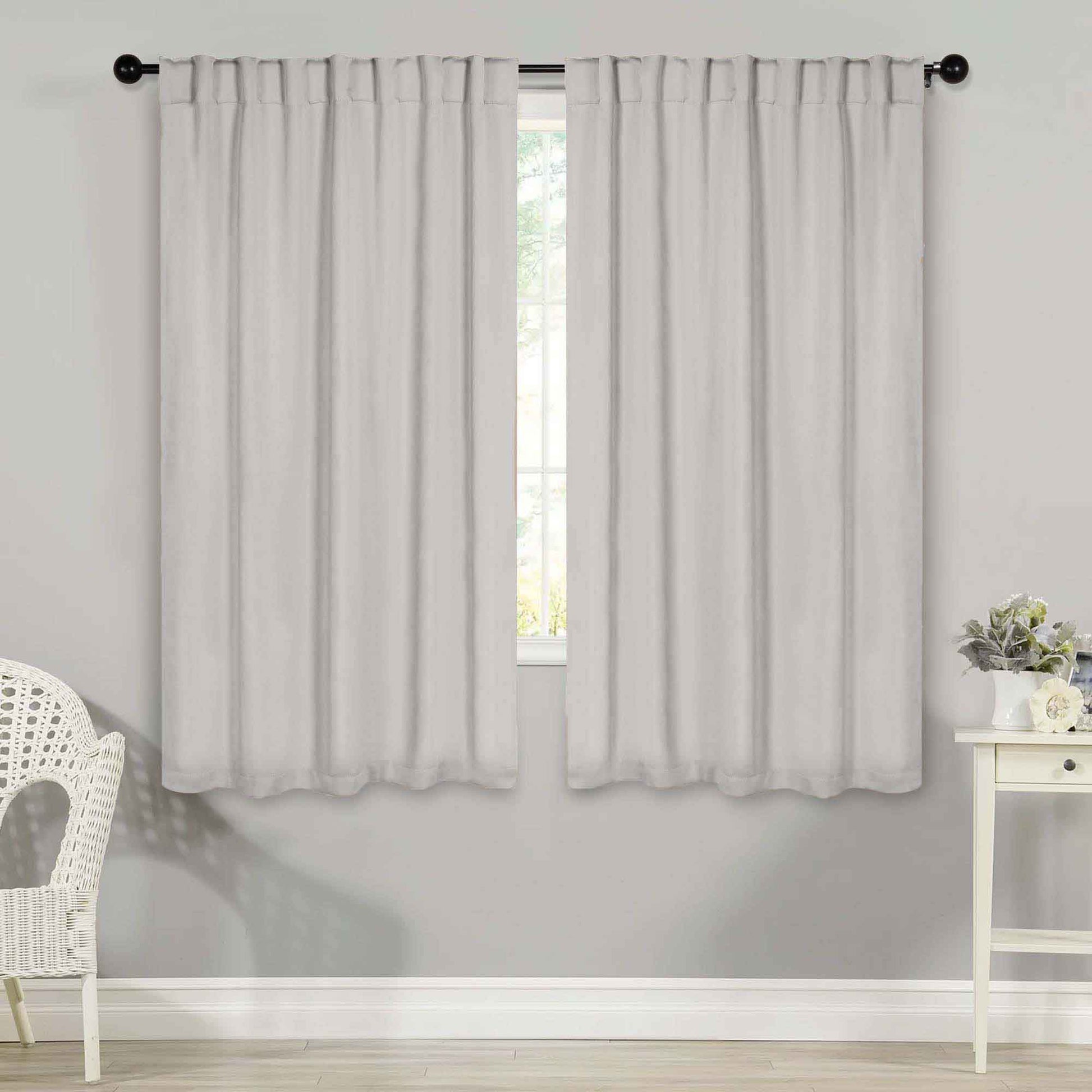 - Additional Features: 4” back tab header offers three stylish installation options: neat and streamlined back tabs, a rod pocket, or the ability to attach clip rings (sold separately). Blocks up to 70-80% sunlight and UV rays, helps reduce noise, and provides optimal privacy. Energy efficient and thermal insulating; Reduces room heat and cold loss through window to maintain cozy room temperature.