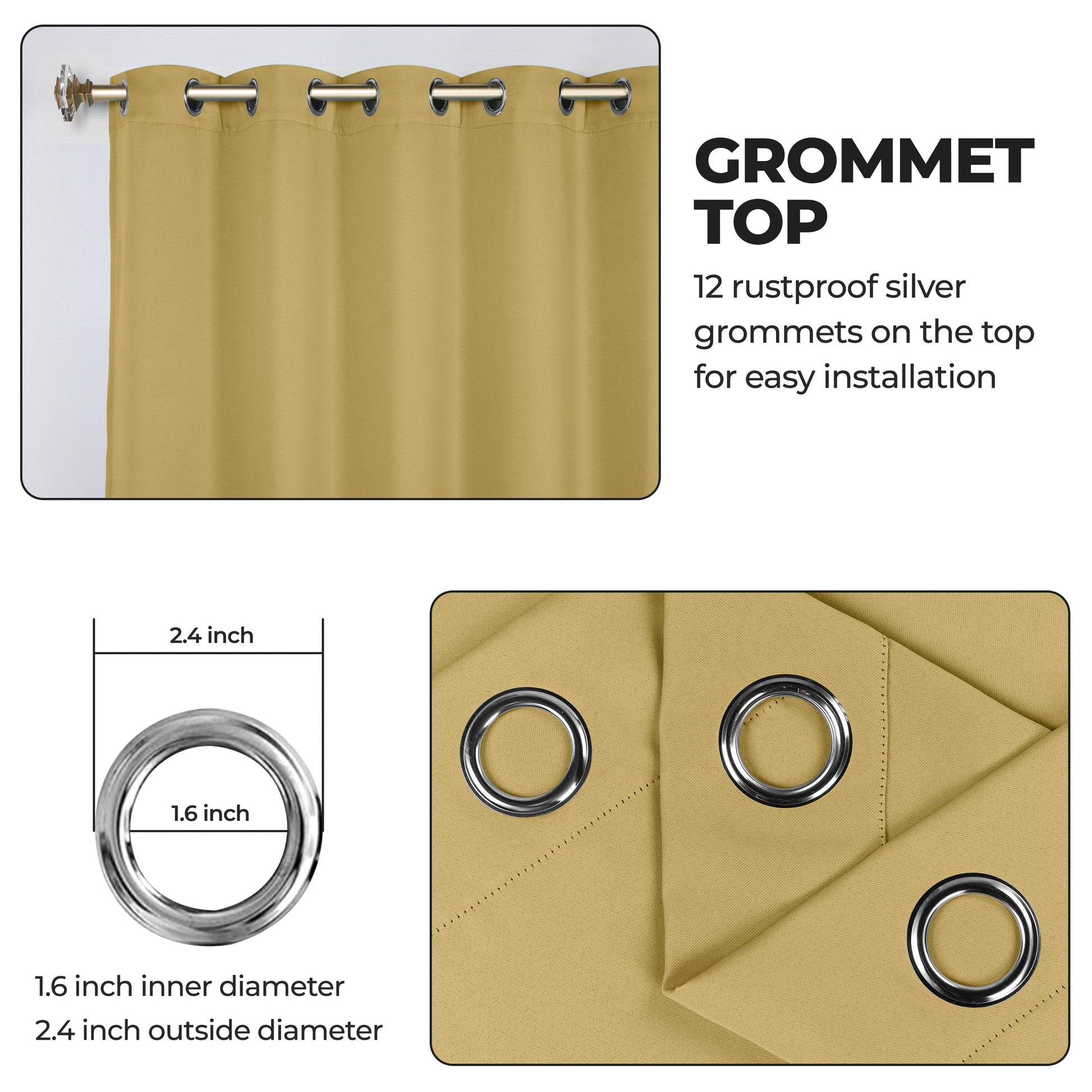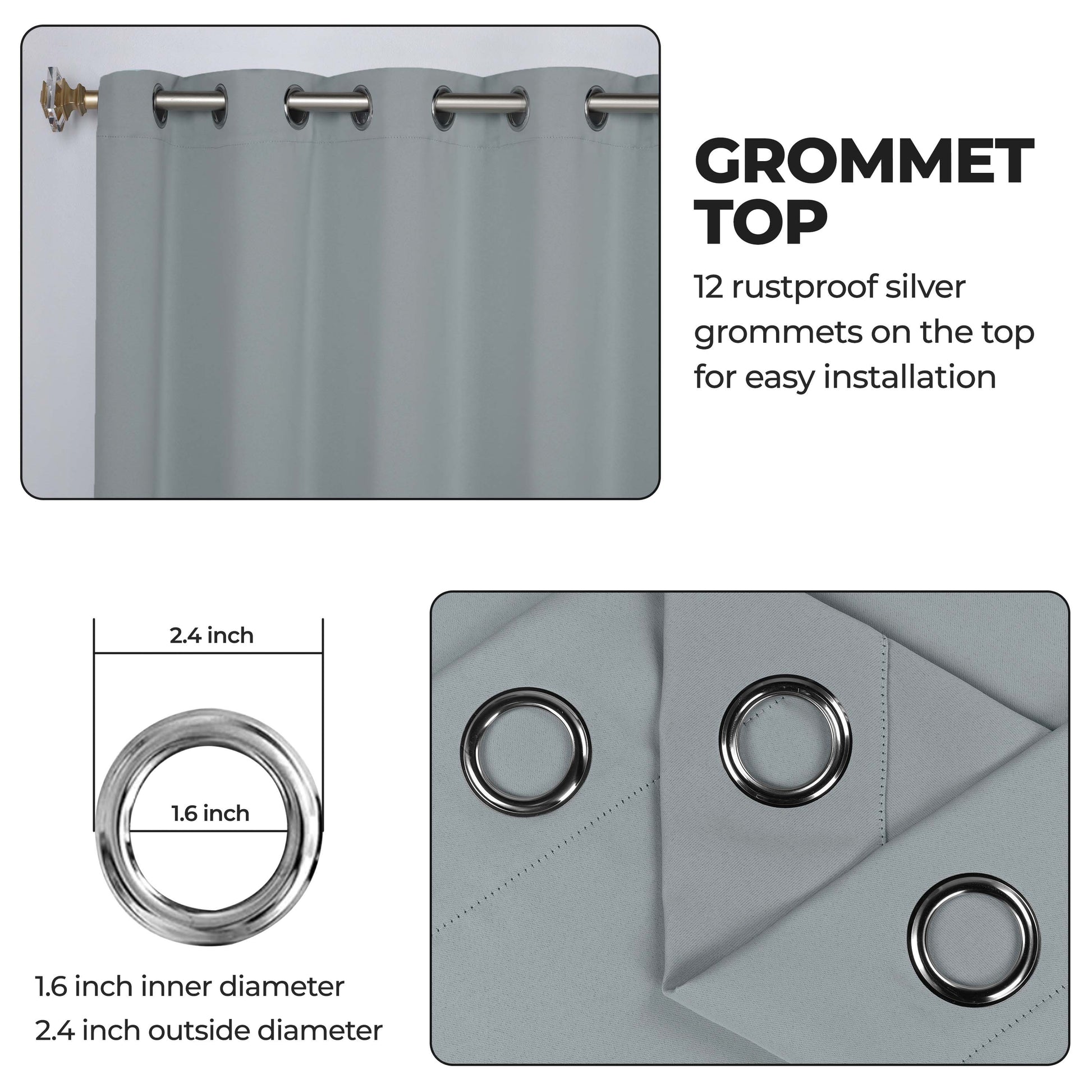 - Additional Features: Blocks up to 70-80% sunlight and UV rays, helps reduce noise, and provides optimal privacy. Stainless steel grommet header for easy installation. Energy efficient and thermal insulating; Reduces room heat and cold loss through window to maintain cozy room temperature.