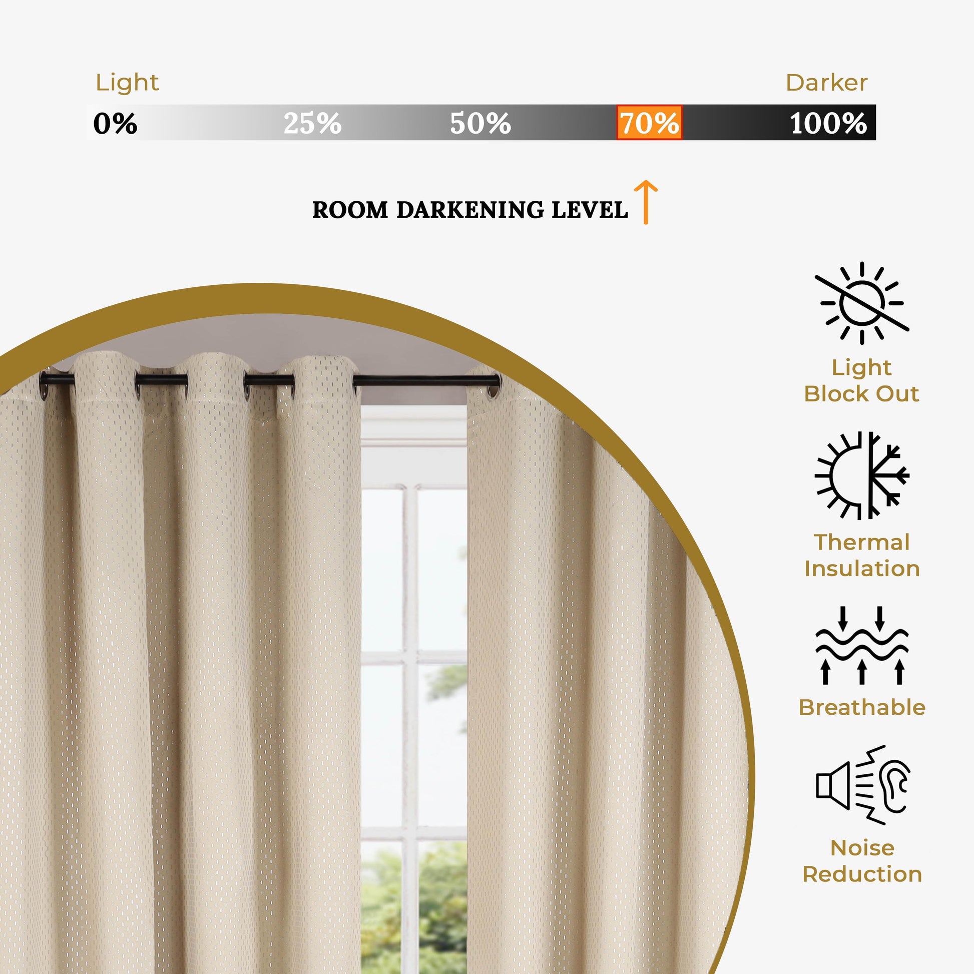 - Additional Features: Blackout blocks up to 70% of sunlight and UV rays; Energy efficient and thermal insulating; Reduces room heat and cold loss through the window to maintain cozy room temperature; Fade, wrinkle, and shrink-resistant.