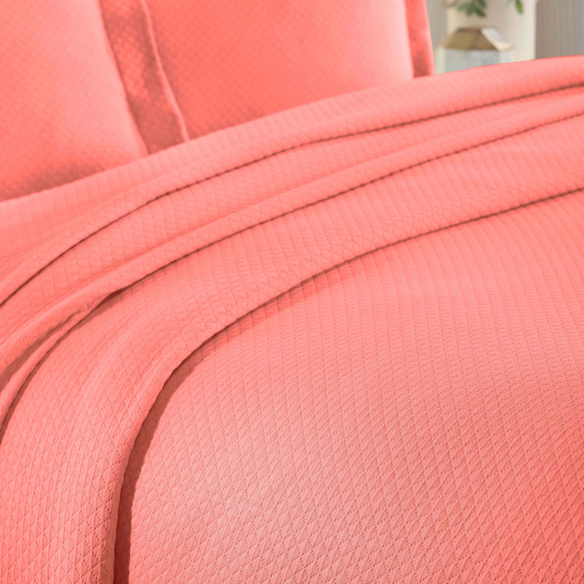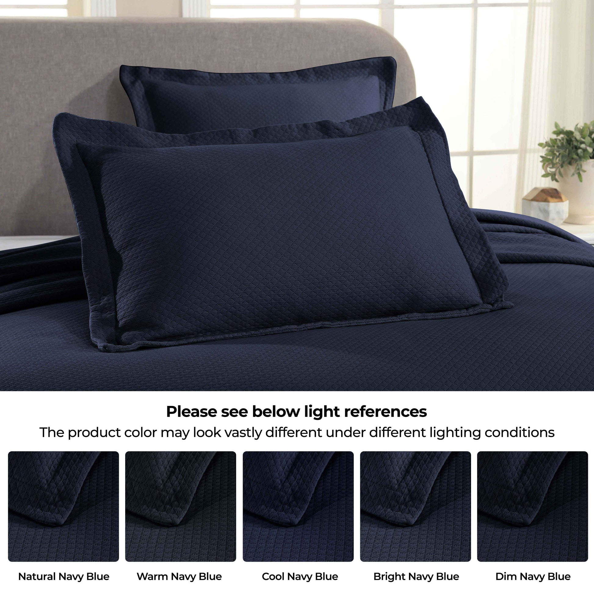 Add a dramatic layer to your bedding with the Jacquard Matelassé Diamond Solitaire Bedspread Set. This classic diamond lattice pattern is crafted from 100-percent Cotton and is woven into a matelassé pattern on a jacquard loom to lend subtle elegance and charm to your bedroom décor. This bedspread is the perfect balance of being lightweight while still providing maximum warmth and comfort. For a finished look, this set comes with two matching pillow shams (Twin size includes one pillow sham).