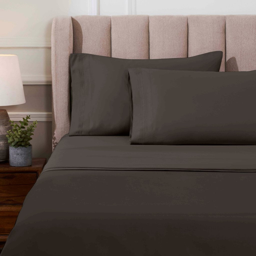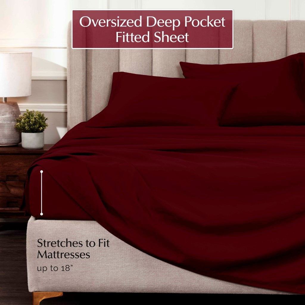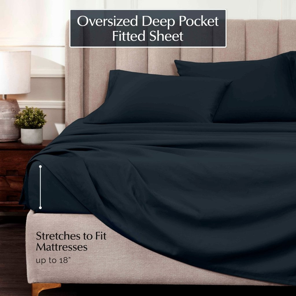 Matches with many decor styles including Modern, Traditional, Casual and Transitional. - Design Details: Durable and ideal for year-round use; Breathable, naturally luxurious and ultra-soft. Buttery-smooth texture; Subtle shimmer from sateen weave finish. Oversized deep pocket fitted sheet stretches to fit mattresses 15" to 18" thick; Matching pillowcases included to coordinate bedding.
