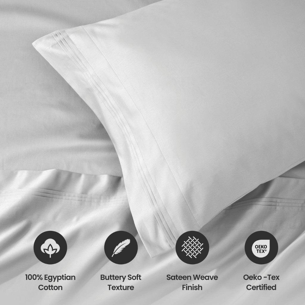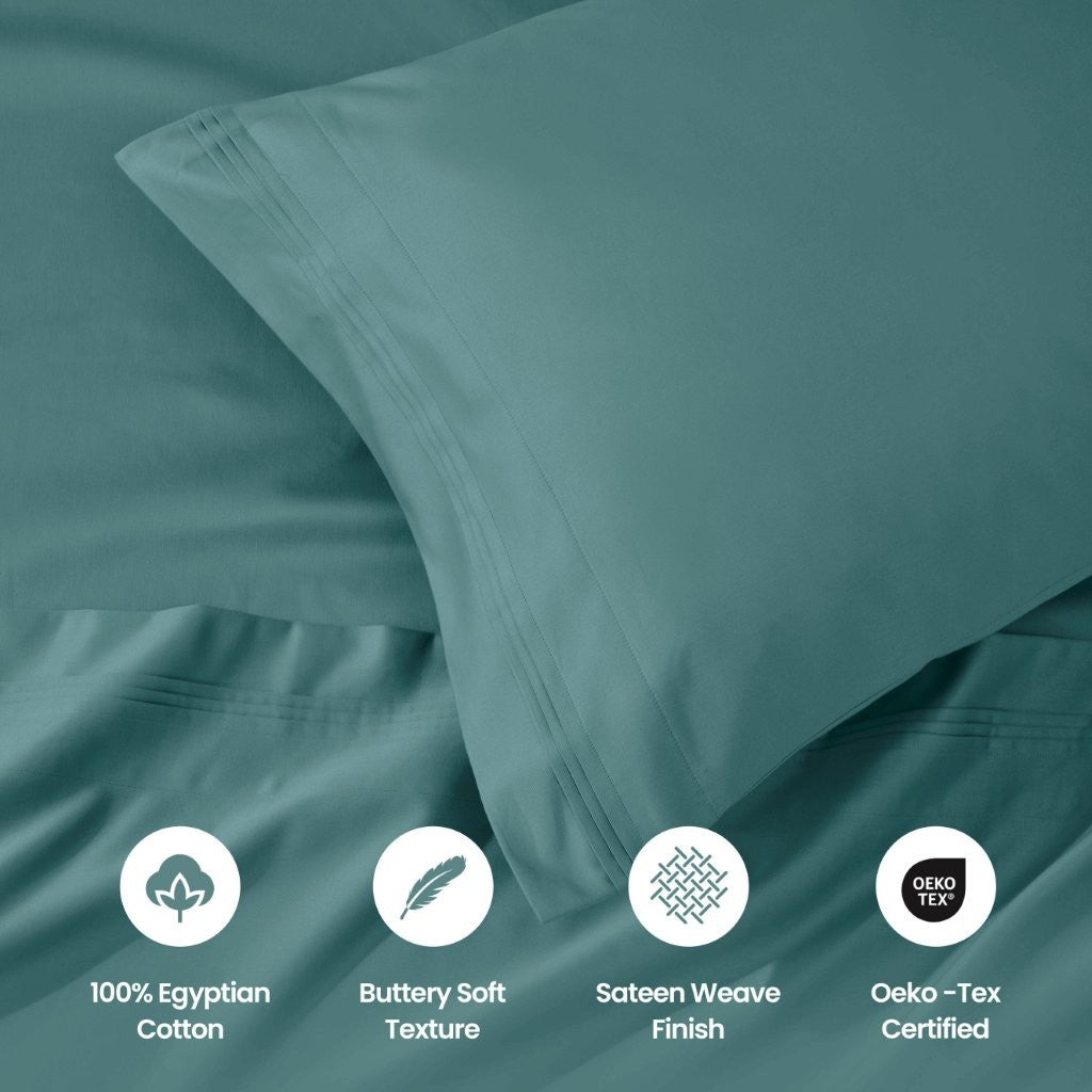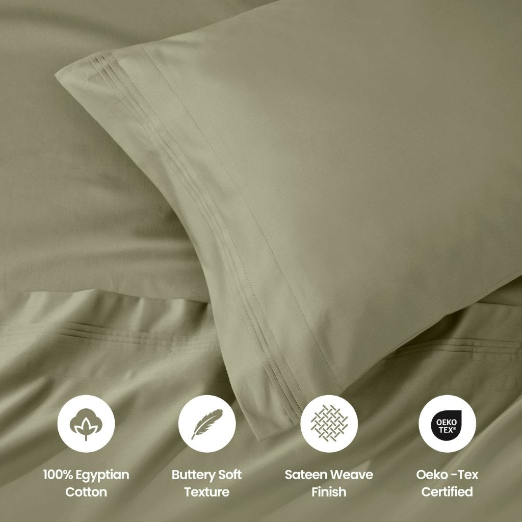 Add refreshing style and elegance to your bedroom with our Egyptian Cotton 1000 Thread Count Eco-Friendly Sheet Set. Crafted from luxurious Egyptian Cotton, these sheets boast a rich, buttery-smooth feel and a luminous sheen from the sateen weave finish. The extra long fibers of Egyptian Cotton are spun into fine, strong yarns making this material breathable, plush and more durable than other varieties of Cotton. Available in a variety of color options and sizes, this bedding set will instantly refresh any bedroom. Each piece in this set is STANDARD 100 and MADE IN GREEN by OEKO-TEX Certified. Not only tested for harmful substances, but produced in sustainable textile facilities to ensure your home has the best quality eco-friendly bedding available.