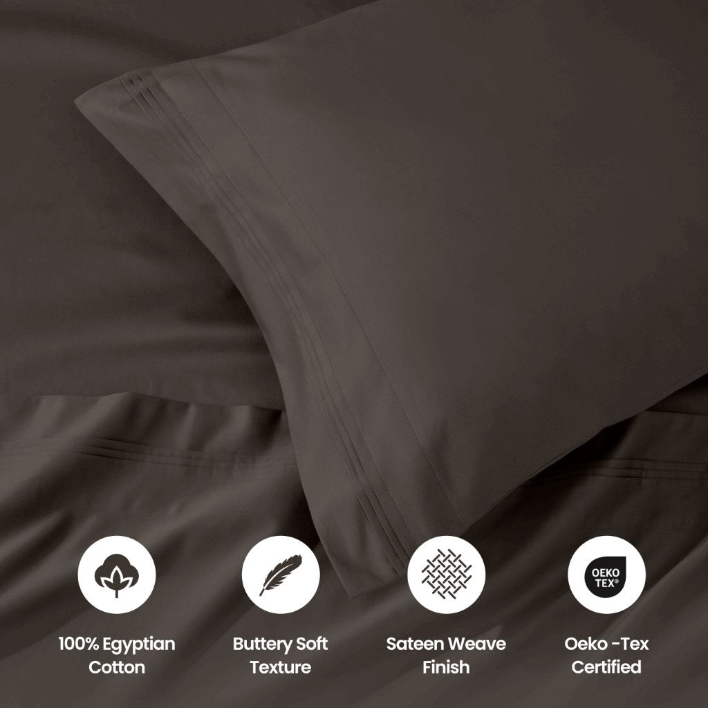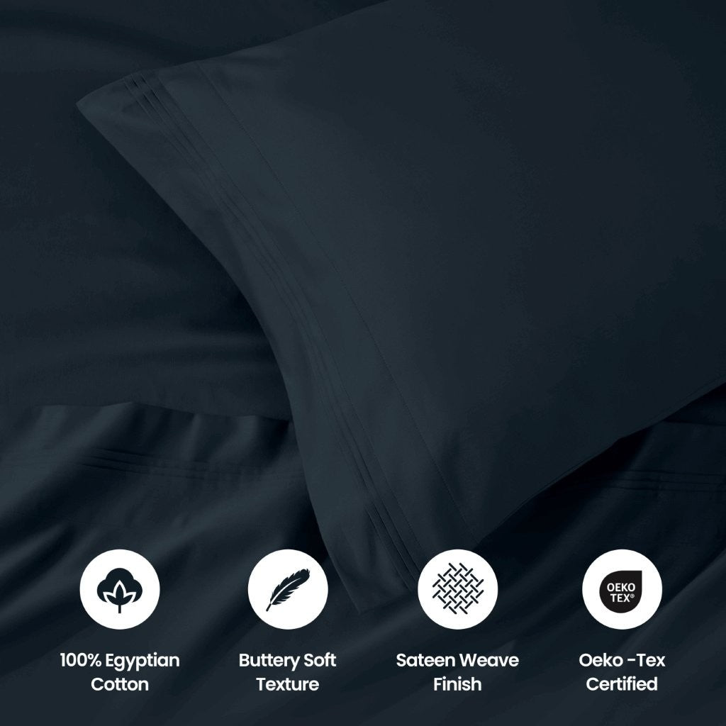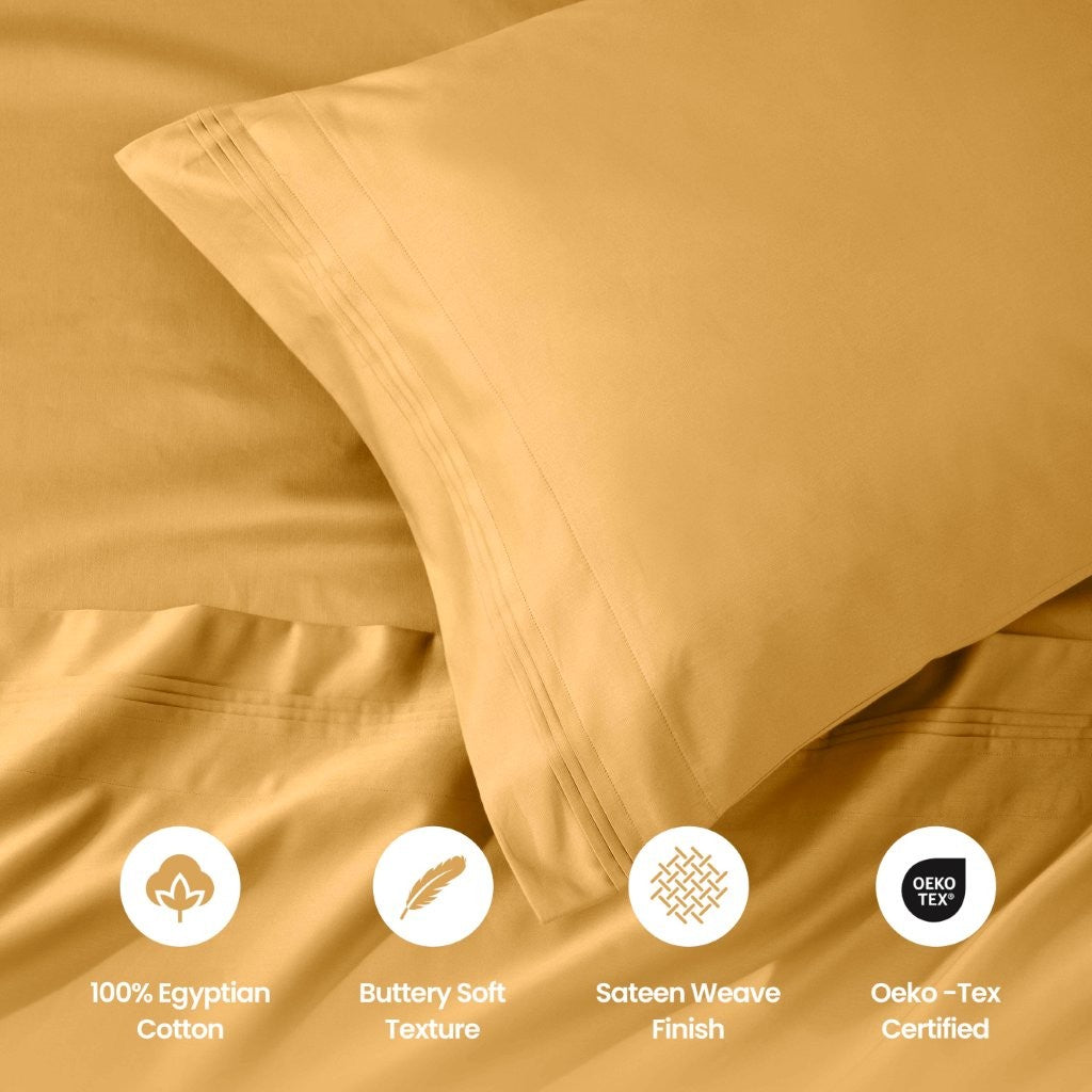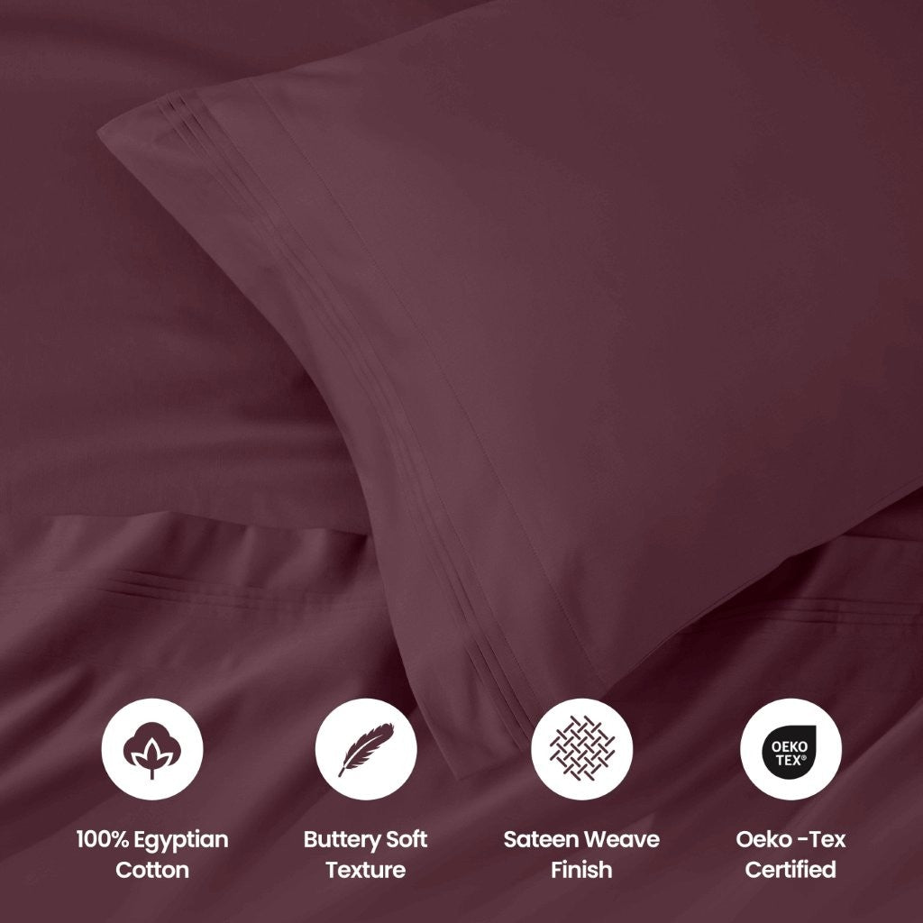 Add refreshing style and elegance to your bedroom with our Egyptian Cotton 1000 Thread Count Eco-Friendly Sheet Set. Crafted from luxurious Egyptian Cotton, these sheets boast a rich, buttery-smooth feel and a luminous sheen from the sateen weave finish. The extra long fibers of Egyptian Cotton are spun into fine, strong yarns making this material breathable, plush and more durable than other varieties of Cotton. Available in a variety of color options and sizes, this bedding set will instantly refresh any bedroom. Each piece in this set is STANDARD 100 and MADE IN GREEN by OEKO-TEX Certified. Not only tested for harmful substances, but produced in sustainable textile facilities to ensure your home has the best quality eco-friendly bedding available.