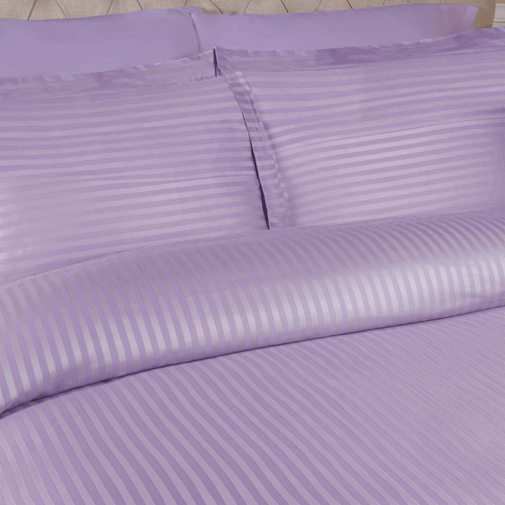 Sleep soundly and enjoy a restful night's sleep with the 300-Thread Count Stripe Egyptian Cotton Duvet Cover Set. Crafted from 100-percent Egyptian Cotton with a cozy 300-thread count, this set boasts a rich, silky-smooth feel and a luminous sheen from the sateen weave finish. The extra-long fibers of Egyptian Cotton are spun into fine, strong yarns making this material breathable, plush, and more durable than other varieties of Cotton. To help make life easy, this duvet features a clear, hidden button closure for a clean, streamlined look. The included pillow shams feature a 2-inch flange for added style and a back envelope closure. Complement your current bedding ensemble and dress your bed in this monochromatic stripe duvet cover set, which is available in a variety of stylish colors.