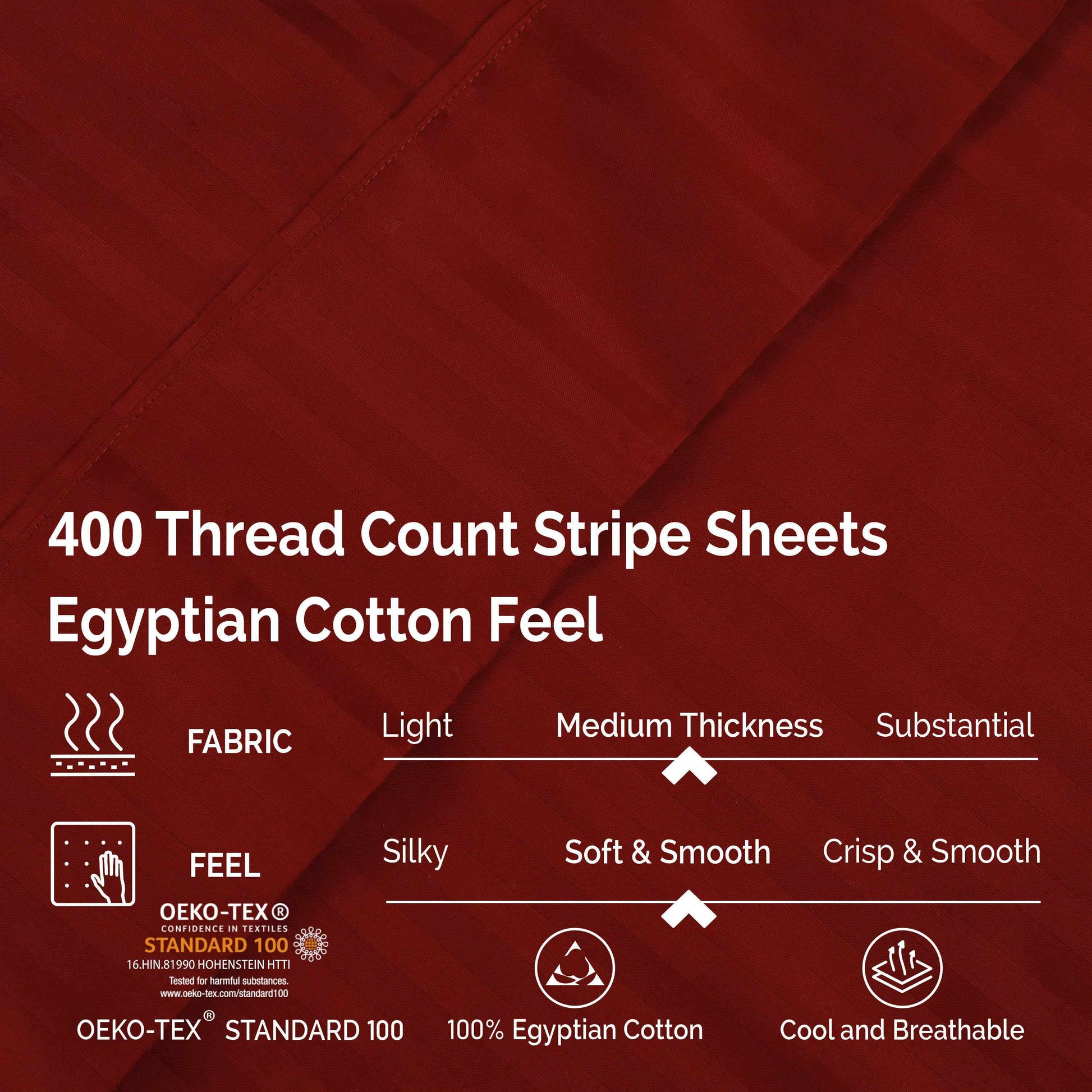 Elevate your bedding with the incredible softness of the 400 Thread Count Egyptian Cotton Striped Sheet Set by Superior. Crafted from premium Egyptian Cotton, these luxury sheets are super soft and silky smooth. For your convenience, the fitted sheet fits deep pocket mattresses 15-18 inches thick, perfect for beds mattress pads, or toppers. With a lightweight and breathable feel, these sheets will keep you wrapped in dreamy softness all night long, . This sheet set is available in a variety of sizes and classic striped color options for a complete bedroom update.