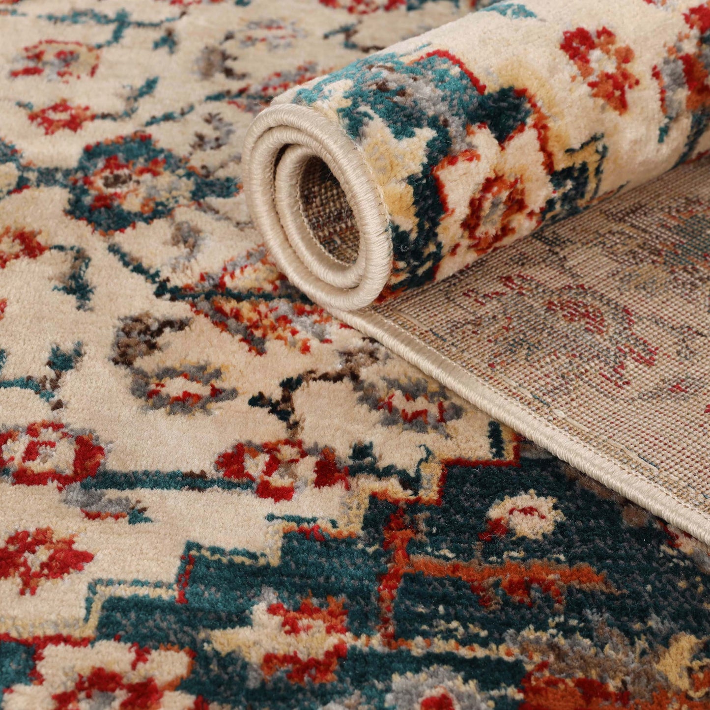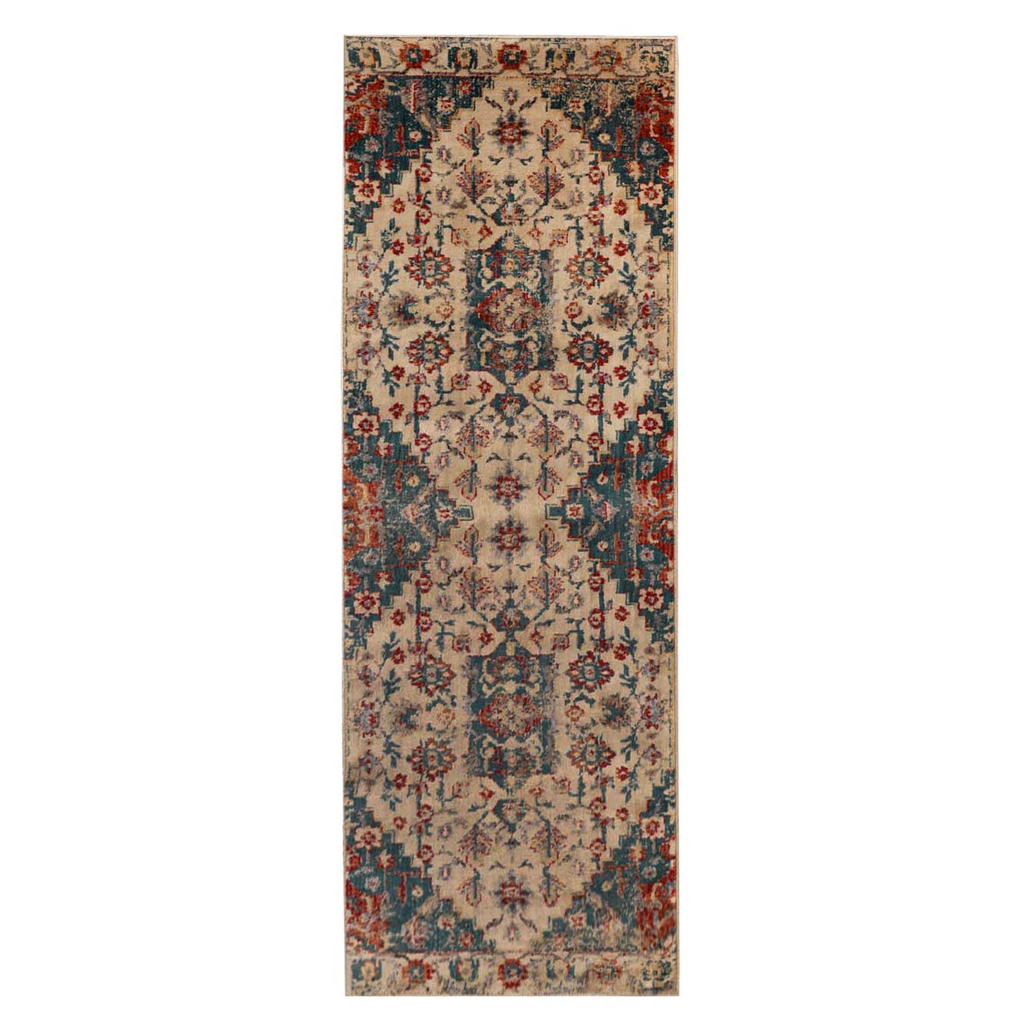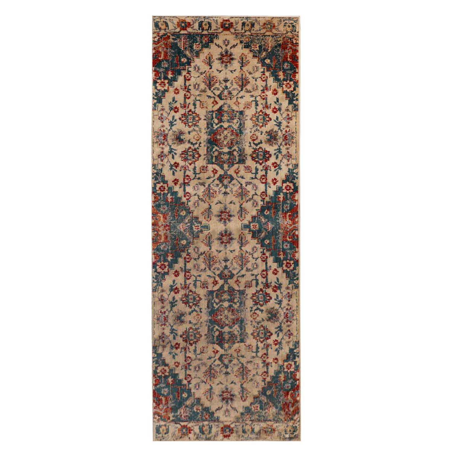- Colors: The rug boasts shades of Red, Blue, and Cream.