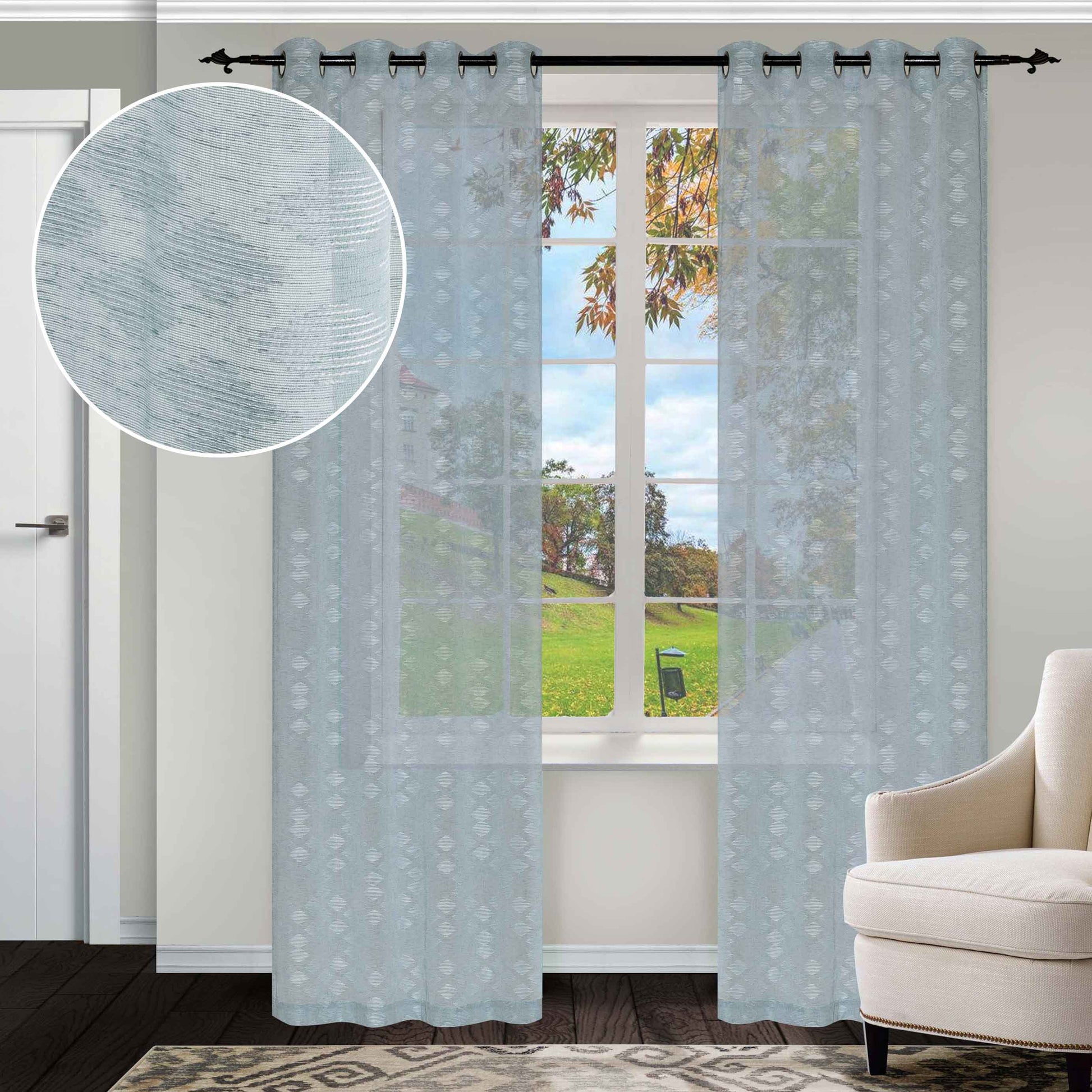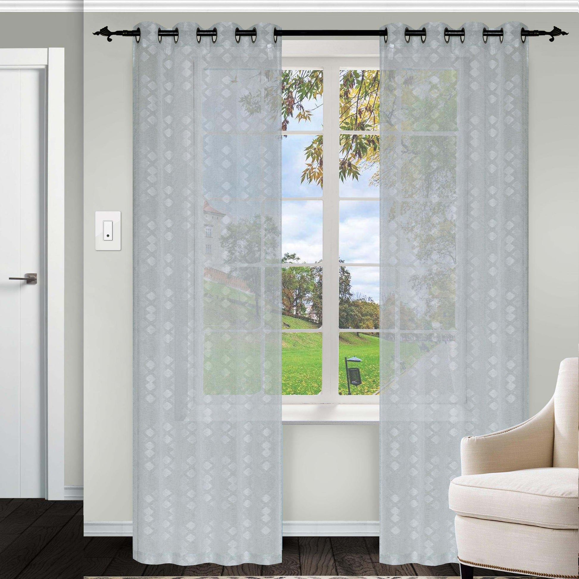 Offering the perfect balance between privacy and filtered light, the Embroidered Argyle Sheer 2-Piece Grommet Curtain Panel Set dresses your windows with contemporary flair. The embroidered argyle pattern brings dimension and interest to your windows without overpowering them. They're finished with durable polished stainless steel grommets that make installation quick and easy. Display on their own for a light and breezy vibe or layer for a fuller appearance. Choose from the available size and color options to discover premium quality at affordable prices.