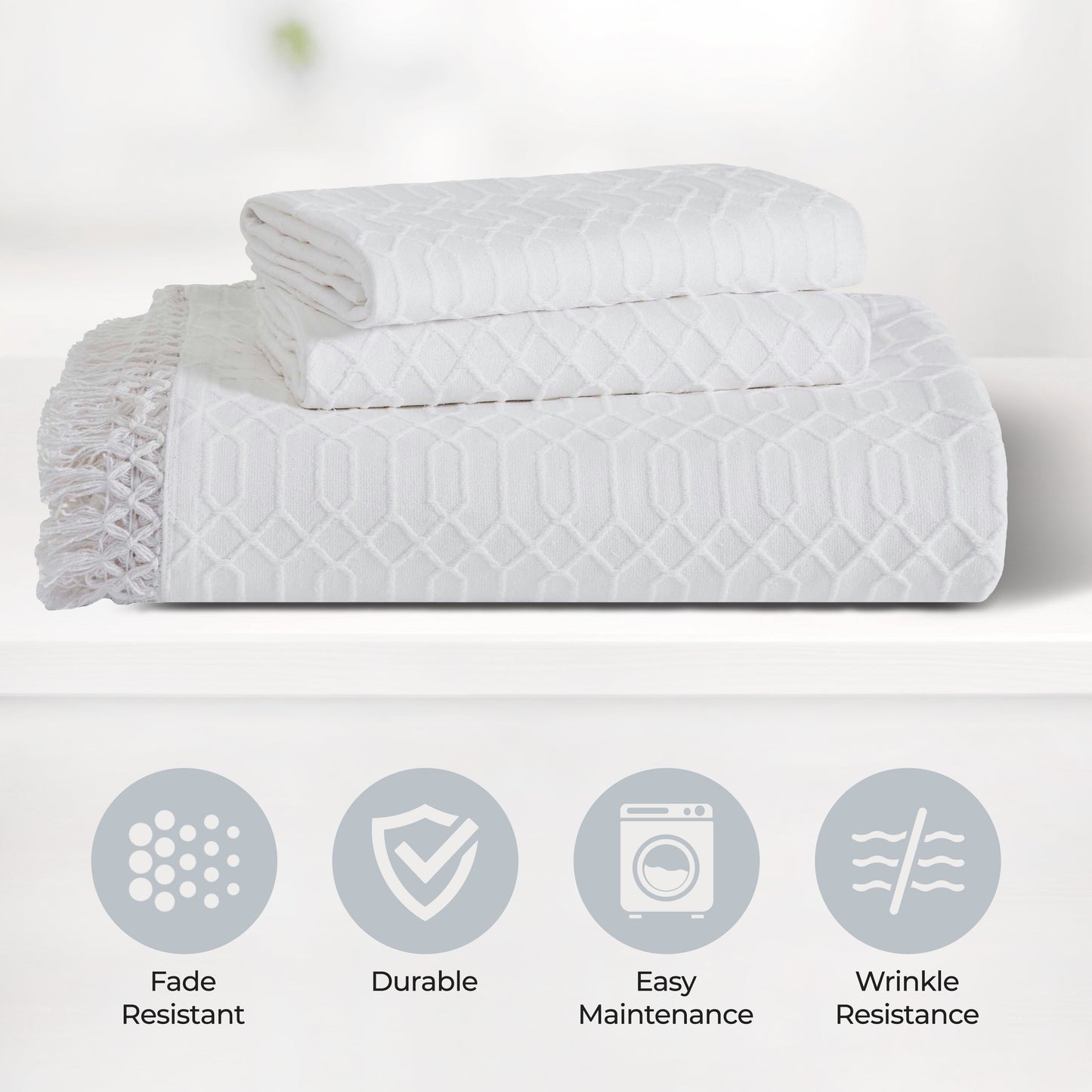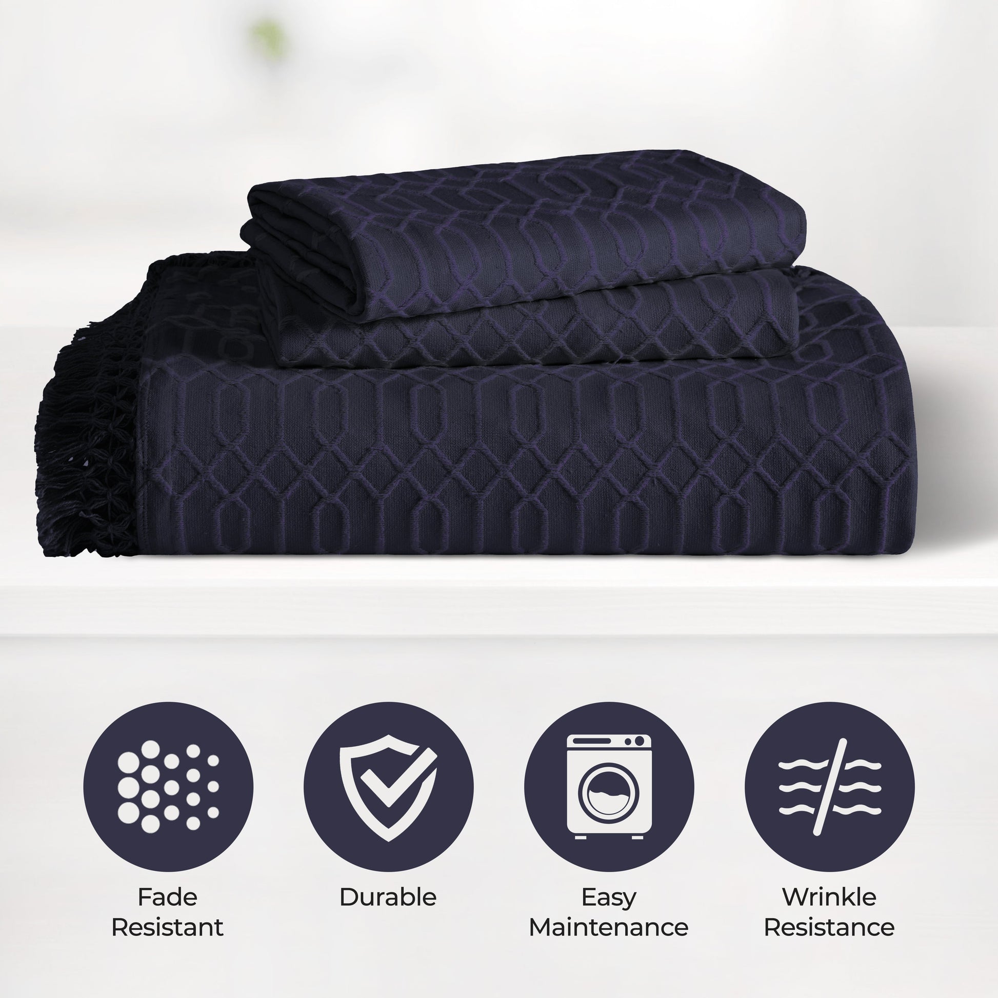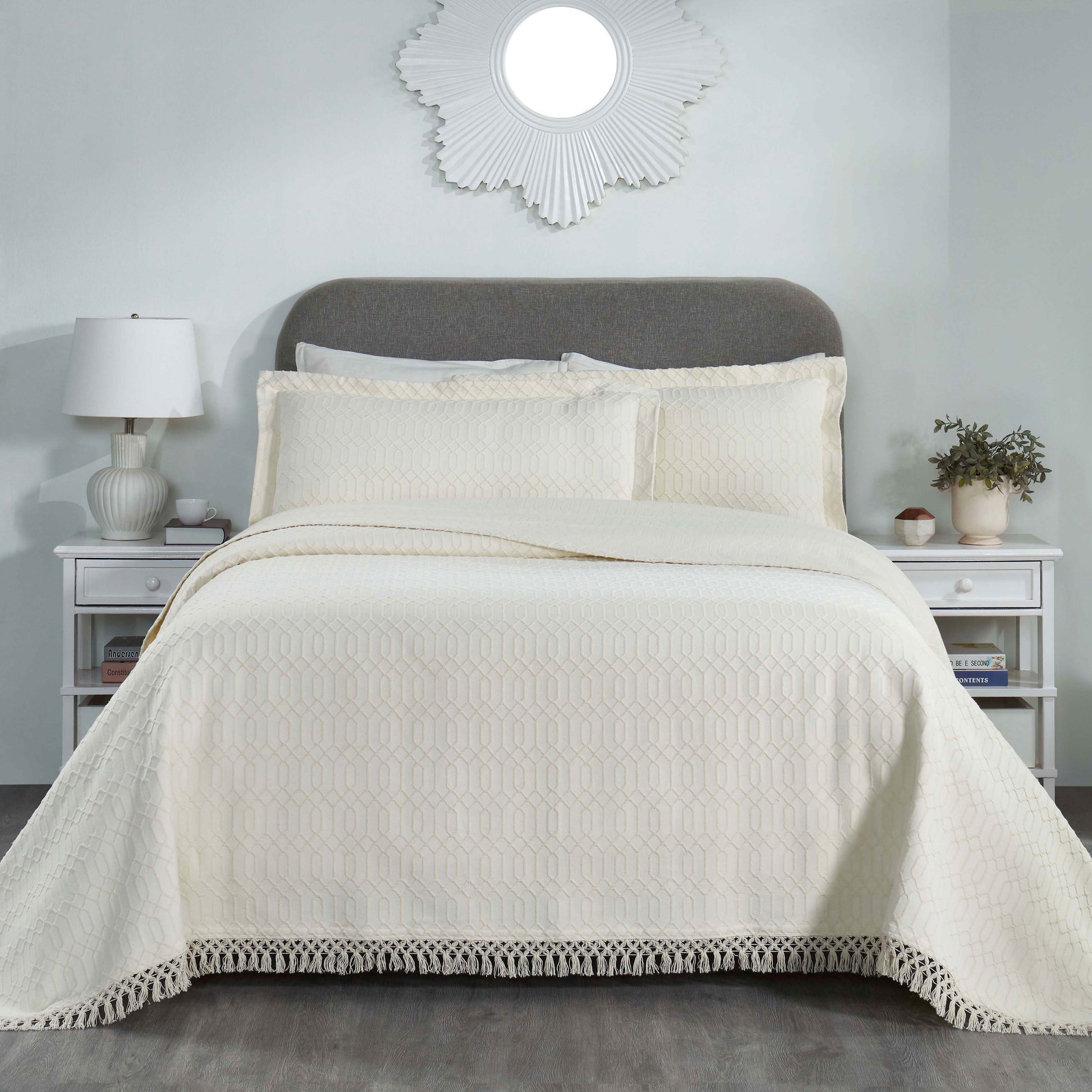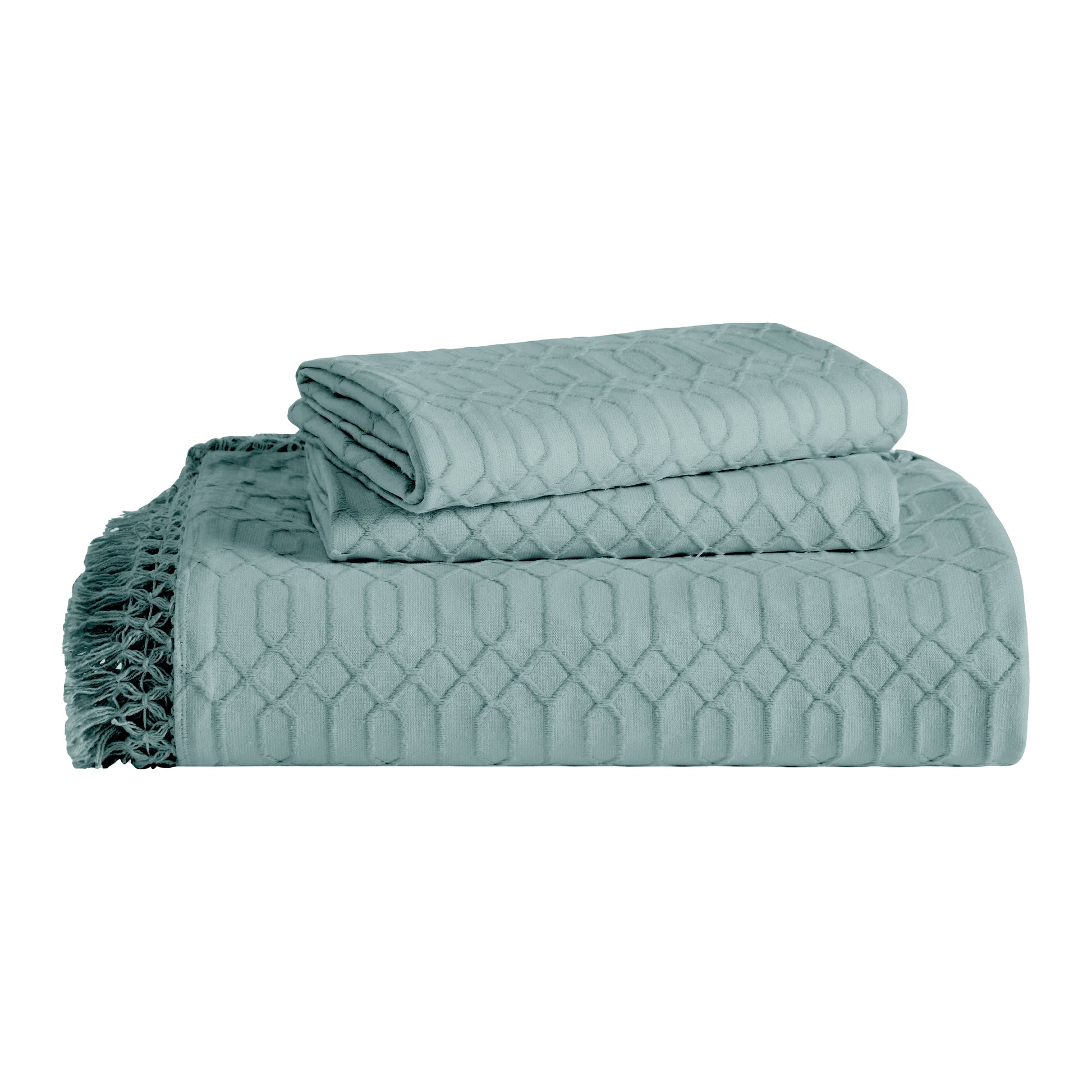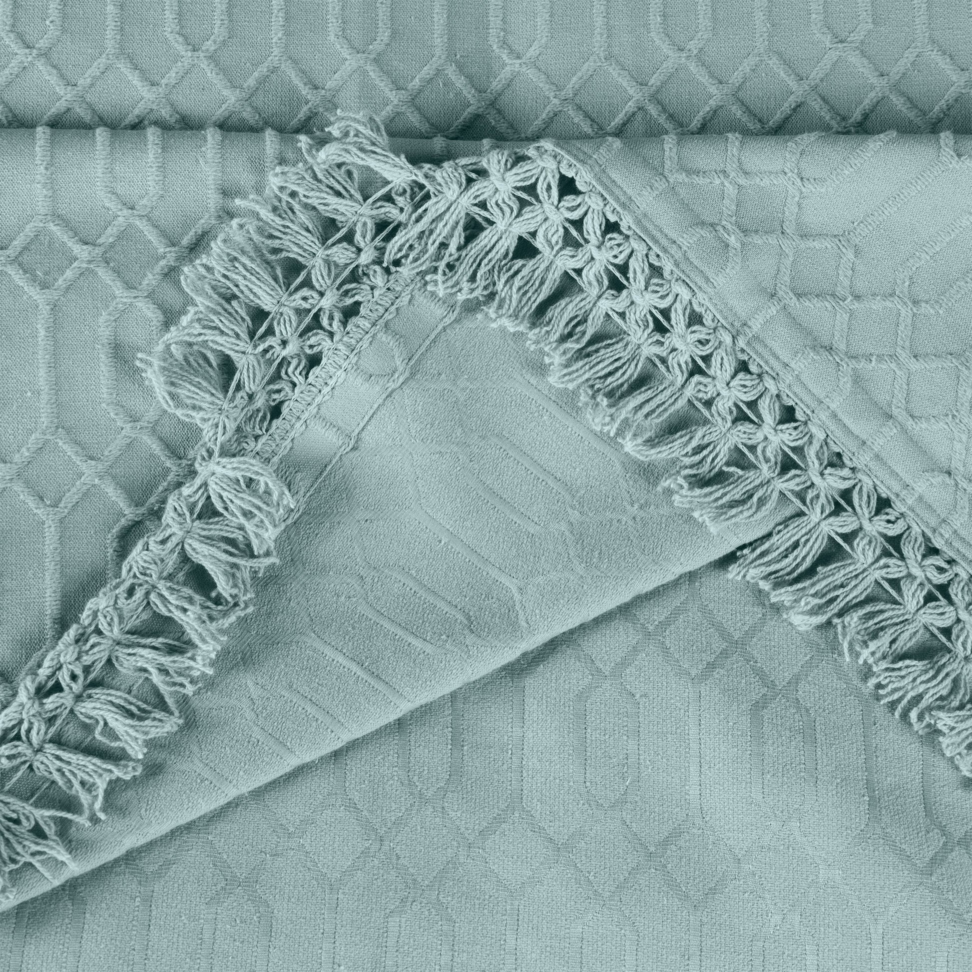Remi Cotton Blend Jacquard Geometric Fringe Bedspread Set