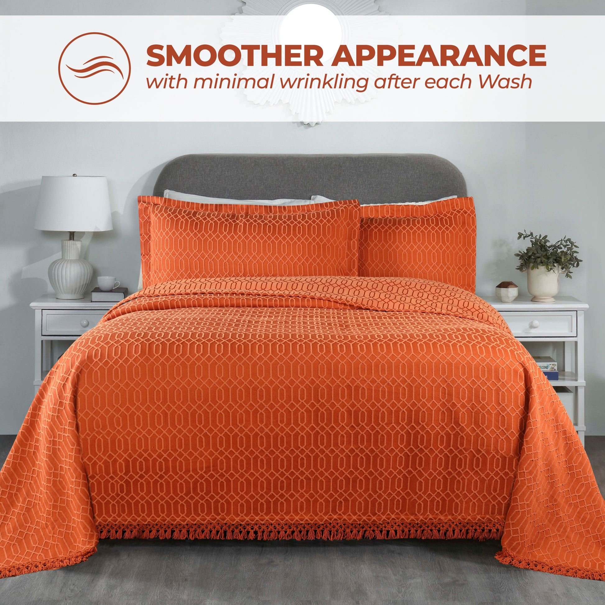 Experience the perfect blend of comfort and style with the Superior Remi Bedspread and Sham Set. Crafted from a premium blend of Cotton and Polyester, this versatile set is medium-weight and breathable, perfect as an added layer or on its own. This beautifully jacquard woven set boasts a two-toned, geometric pattern to bring relaxed elegance to your modern or transitional bedroom. This gorgeous bundle includes 1 oversized bedspread that hangs to the floor, eliminating the need for a bed skirt, and 2 matching pillow shams (Twin size includes 1 pillow sham). Finished with a stylish fringe trim, updating the look of your modern or shabby chic bedroom has never been easier.