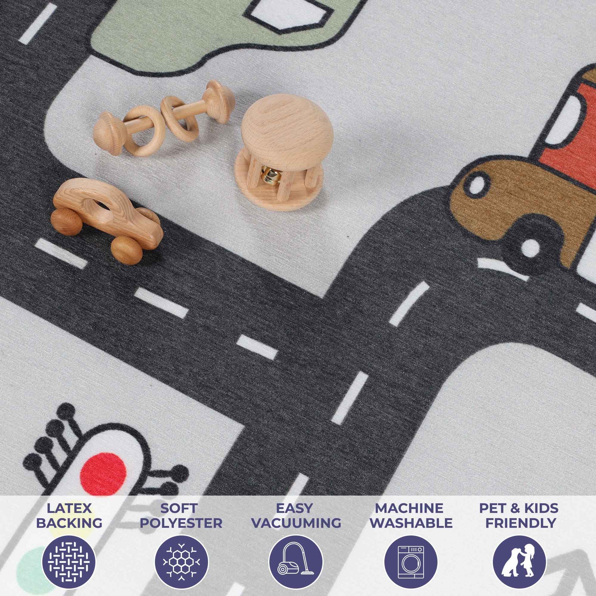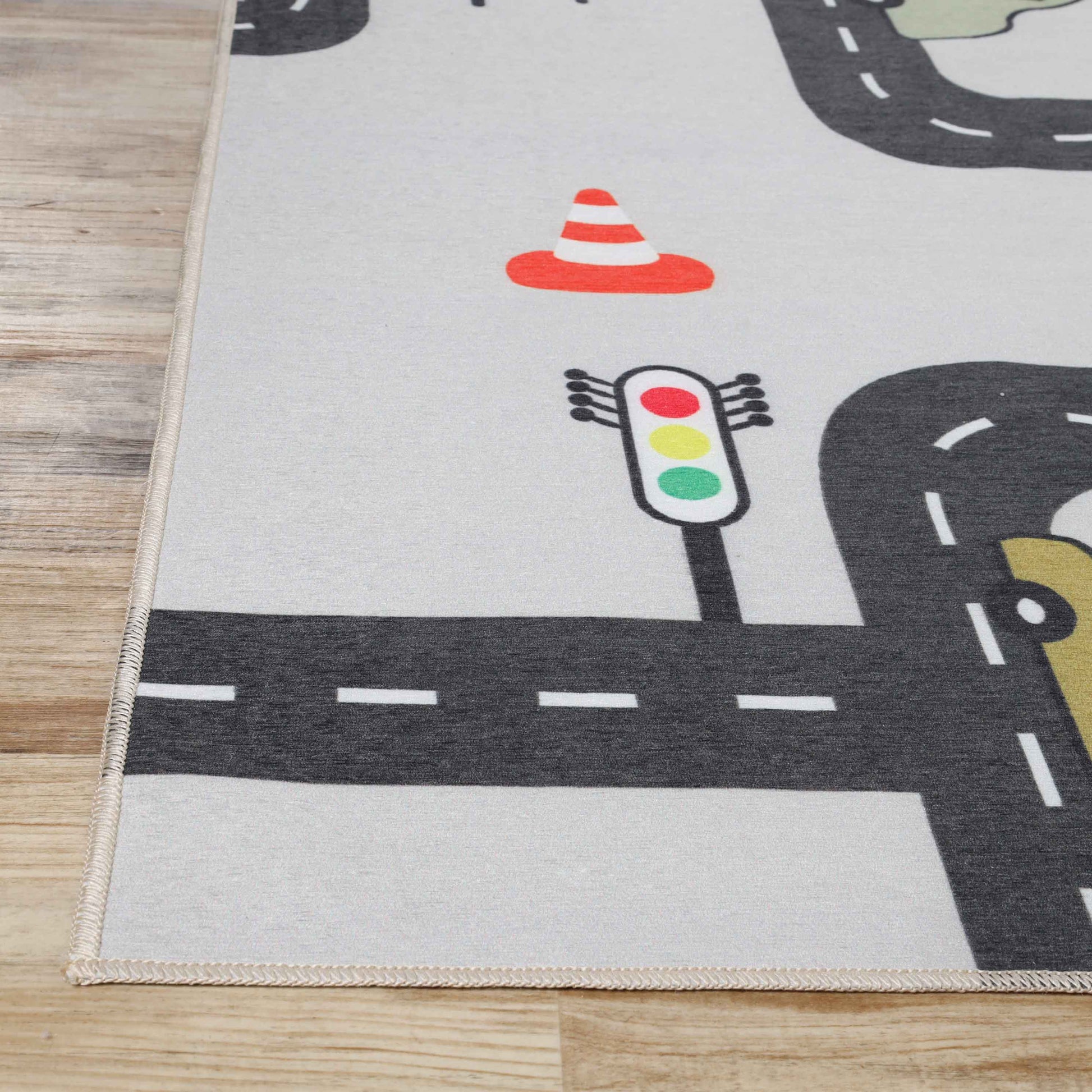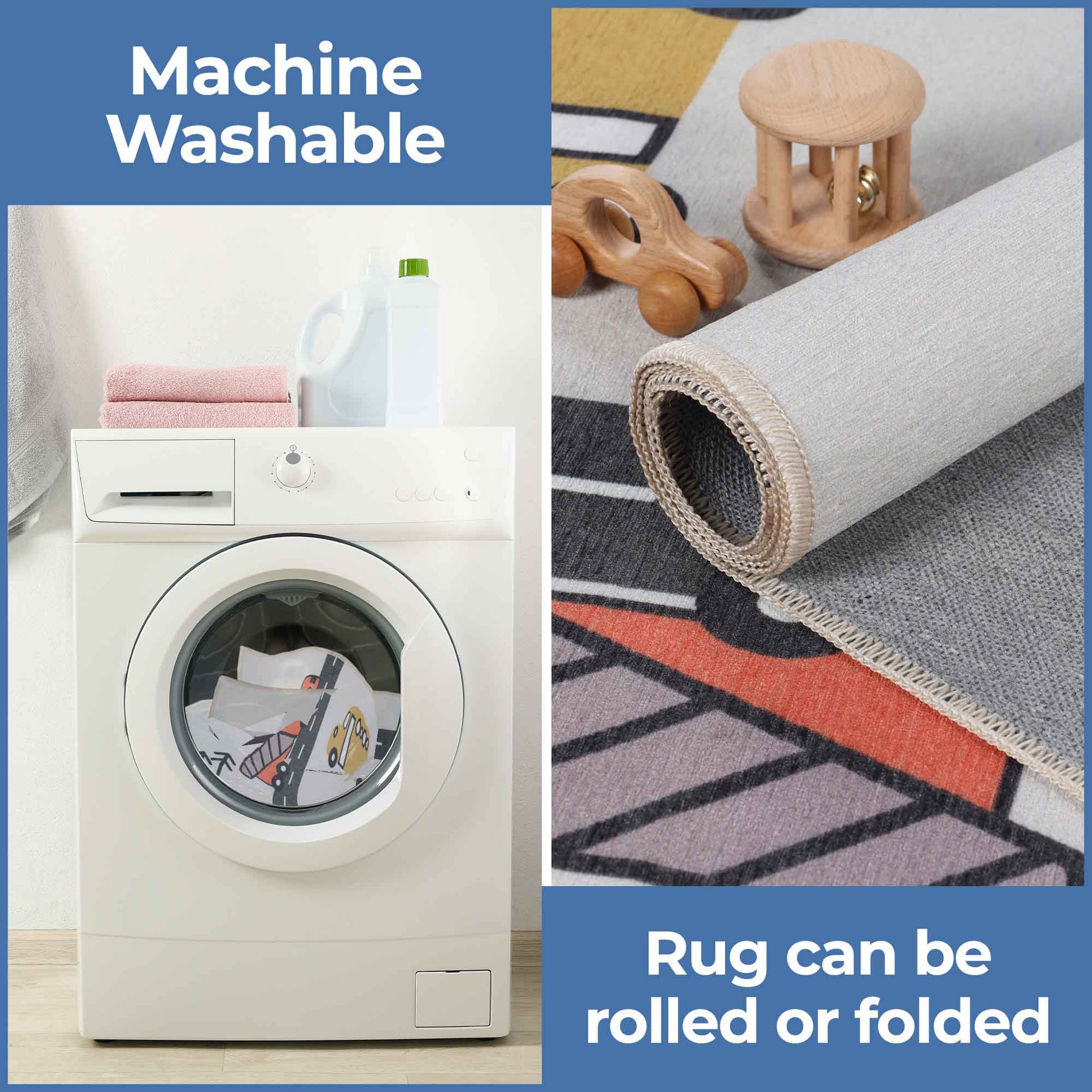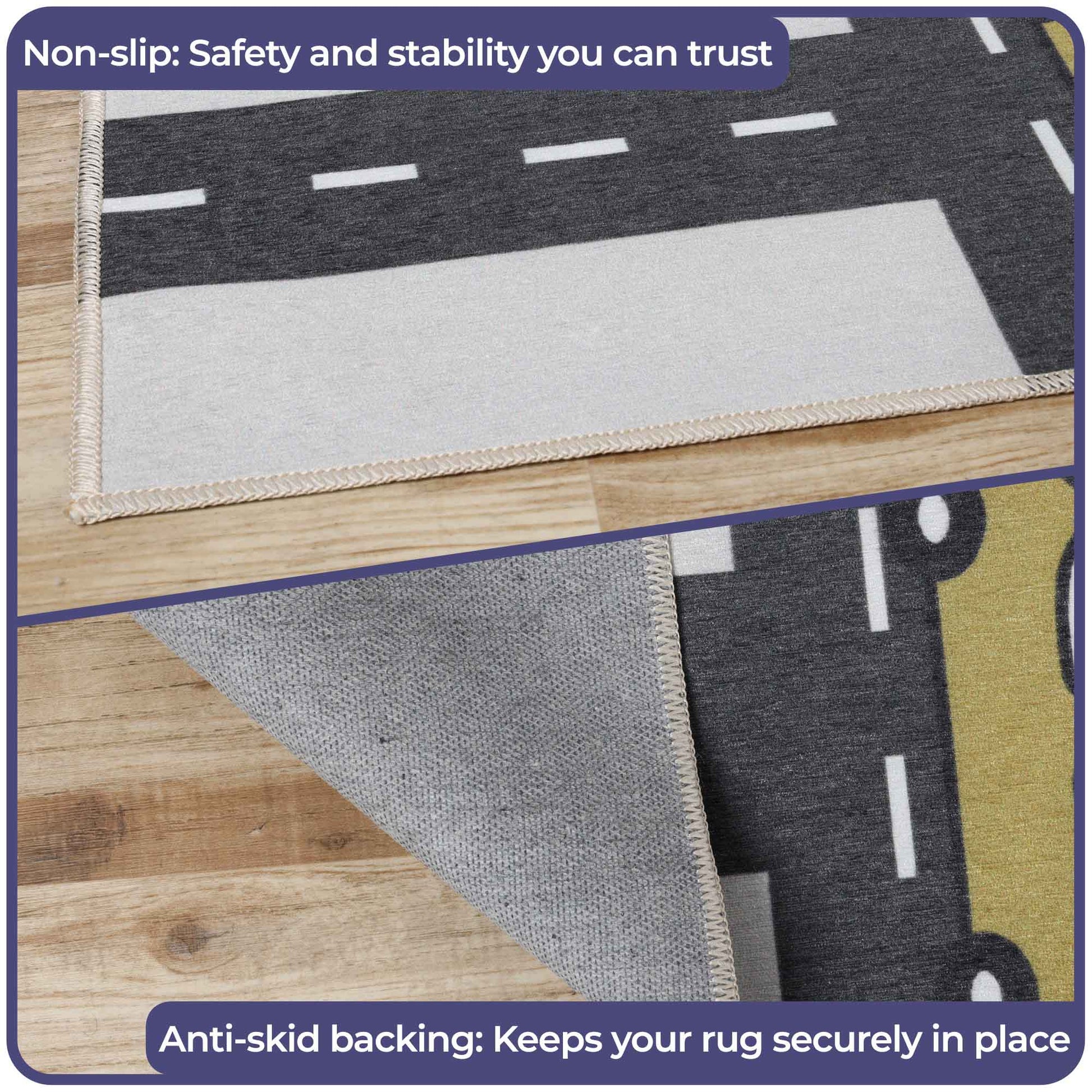 Construction Zone Non-Slip Kids Playroom Washable Indoor Area Rug