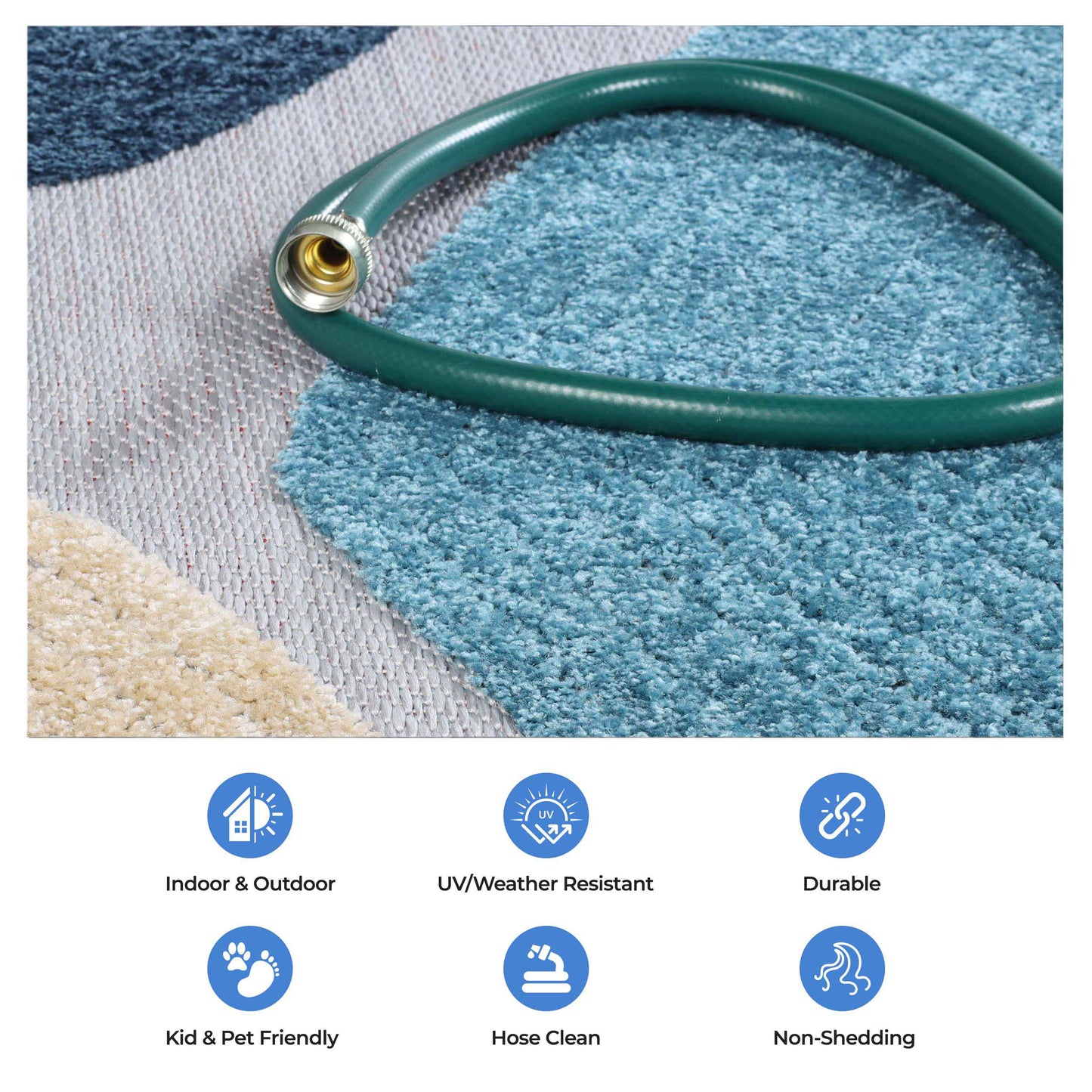 Boldly accent your favorite hangout space with the Tulip Indoor Outdoor Area Rug. Made with durable and weather-resistant polypropylene, this rug can handle the most high-traffic areas of your home or yard. Featuring oversized geometric shapes, this rug has a hardwearing woven design that is ideal for any room inside or outside the home. For outdoor use, this rug will transform your deck, poolside or patio into a great entertaining space.
