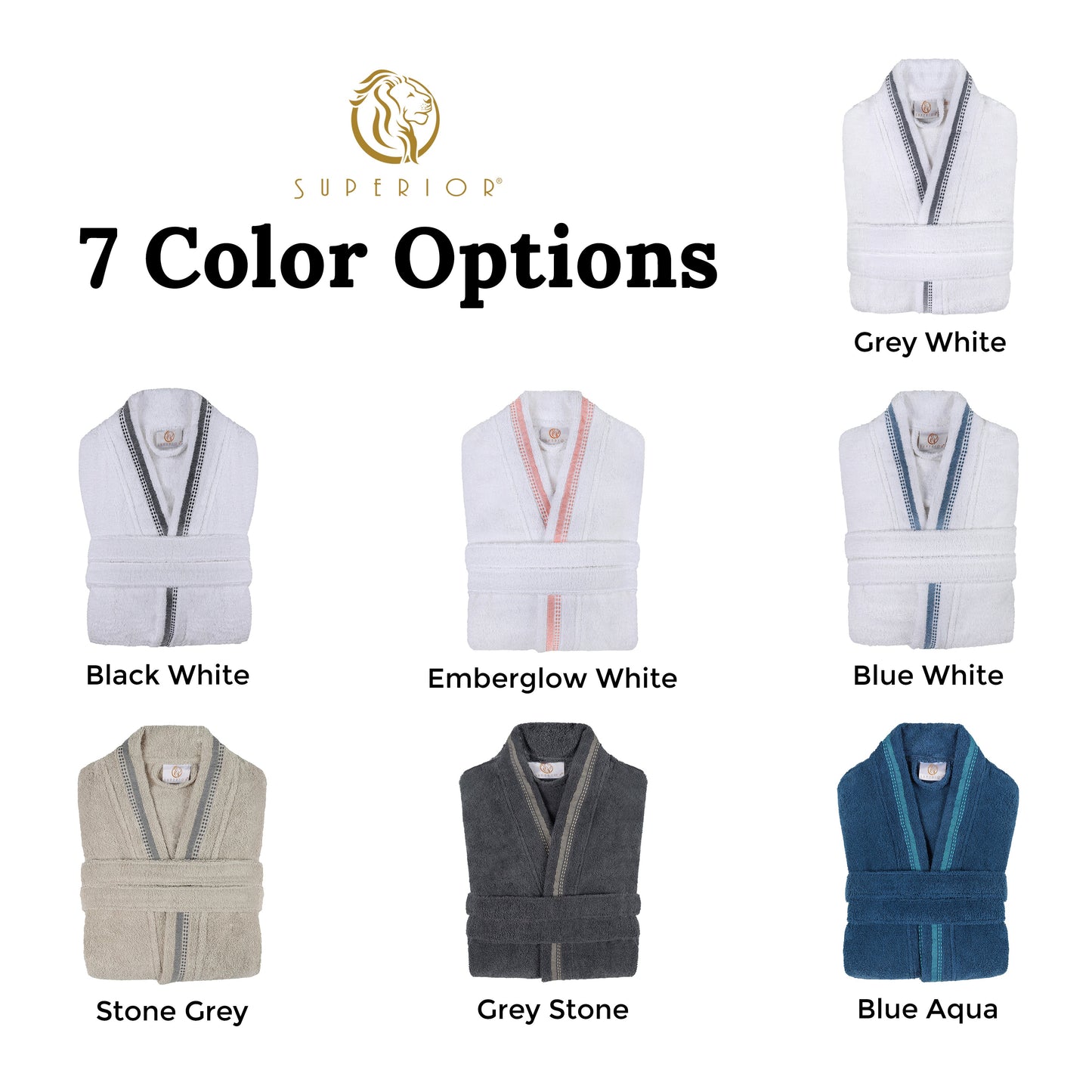 Dry yourself with the Turkish Cotton Kimono Terry Embroidered Super-Soft Unisex Bathrobe. Step out of the shower and give yourself a spa-like experience using this absorbent yet ultra-plush robe. Turkish Cotton is distinguished by its extra long and durable fibers along with the terry loop construction that this bathrobe features ensures that you will be dried gently and comfortably. This bathrobe is beautifully designed with a subtle pop of color using elegant embroidery which runs from the collar all the way down to the bottom of the front panel and along the edge of the sleeves. This bathrobe is complete with two front pockets, a V-neck collar, and a matching wrap-around belt to give you a luxurious post-bath look.
