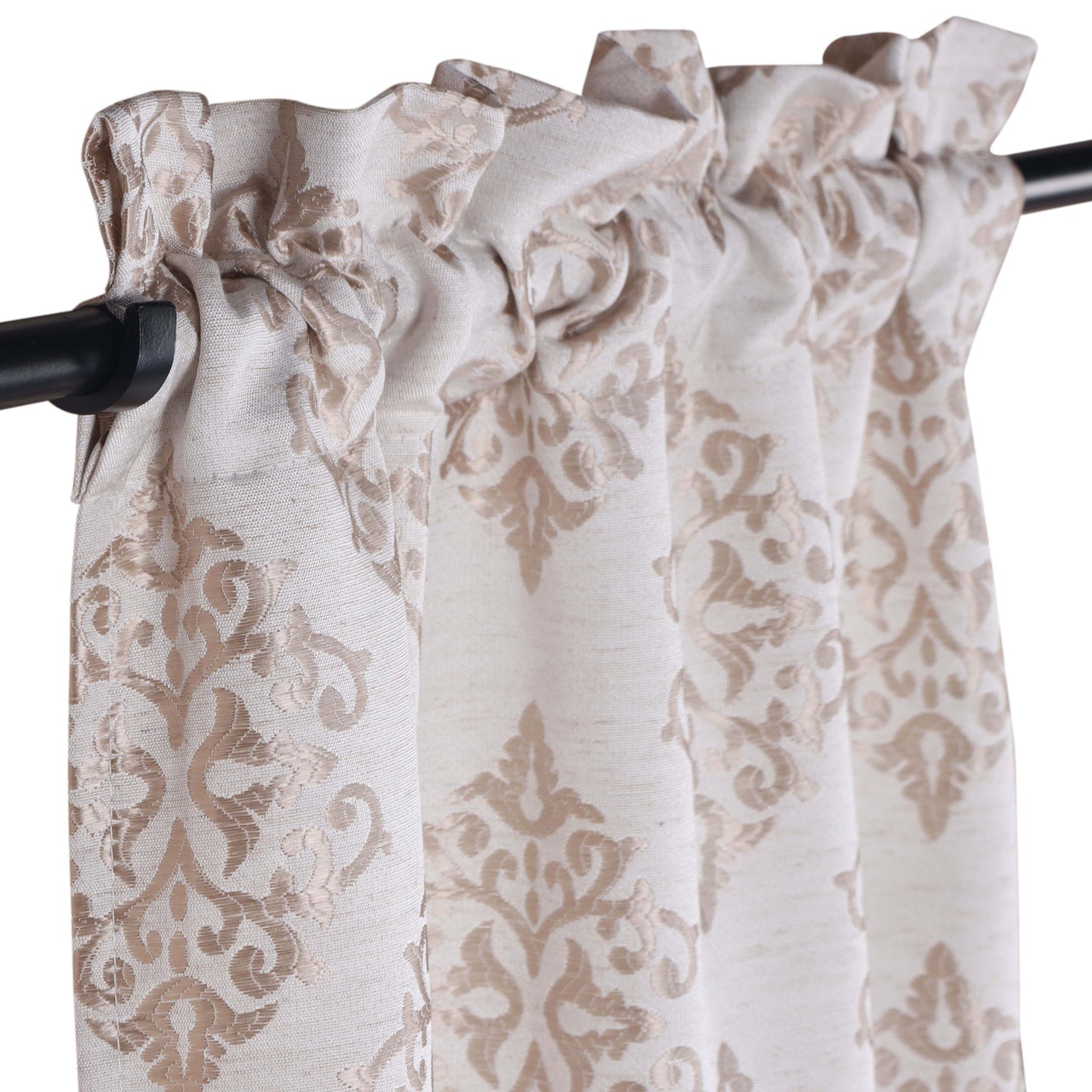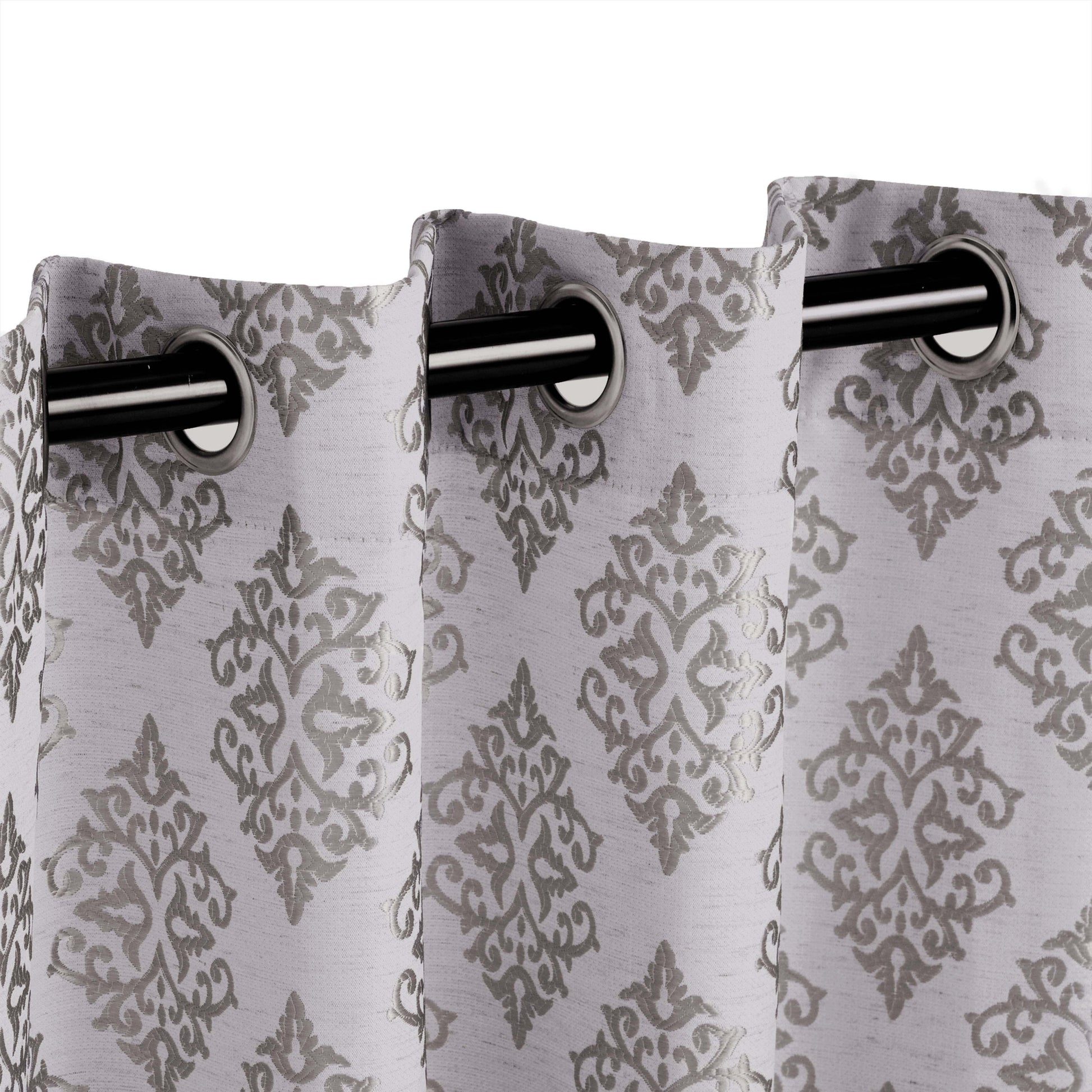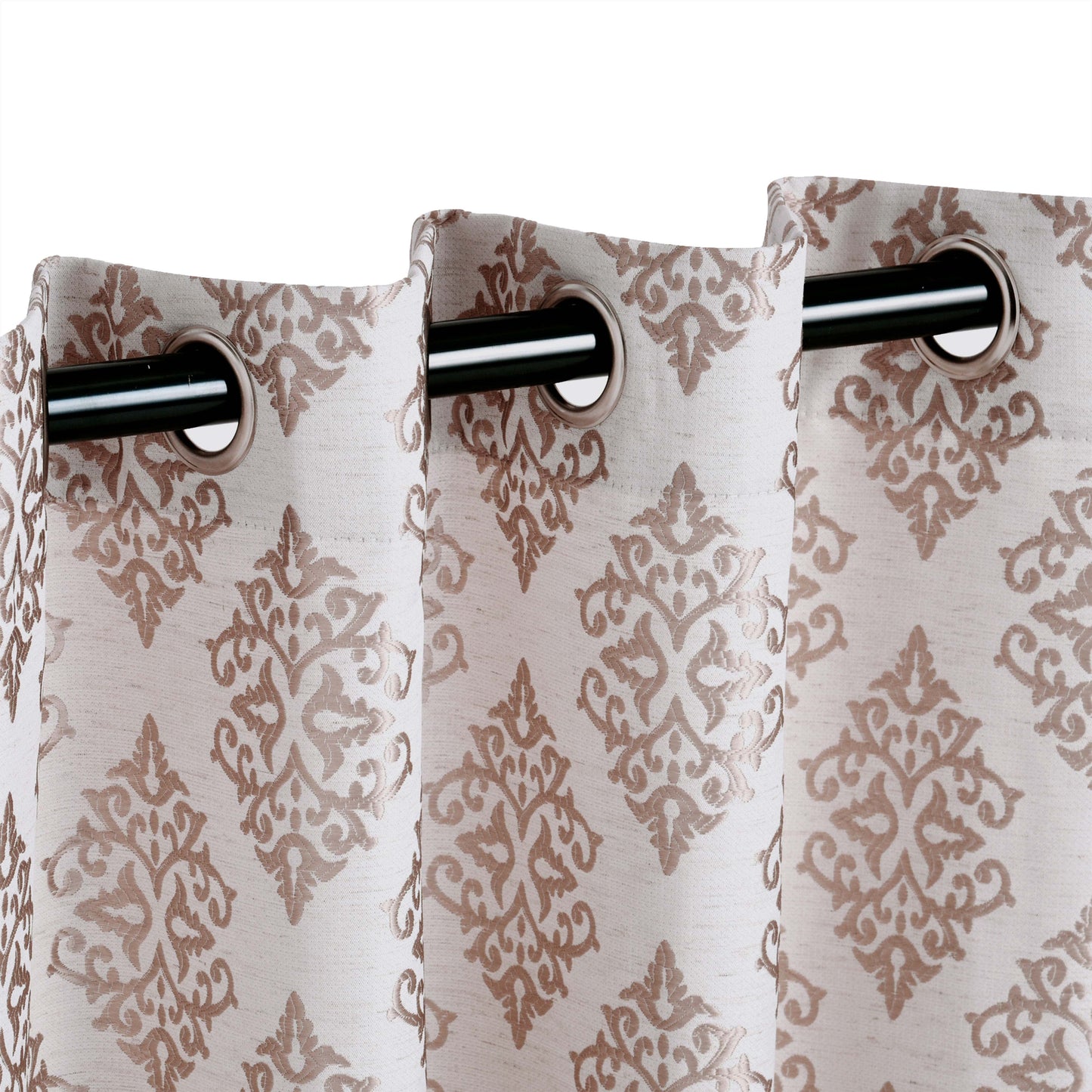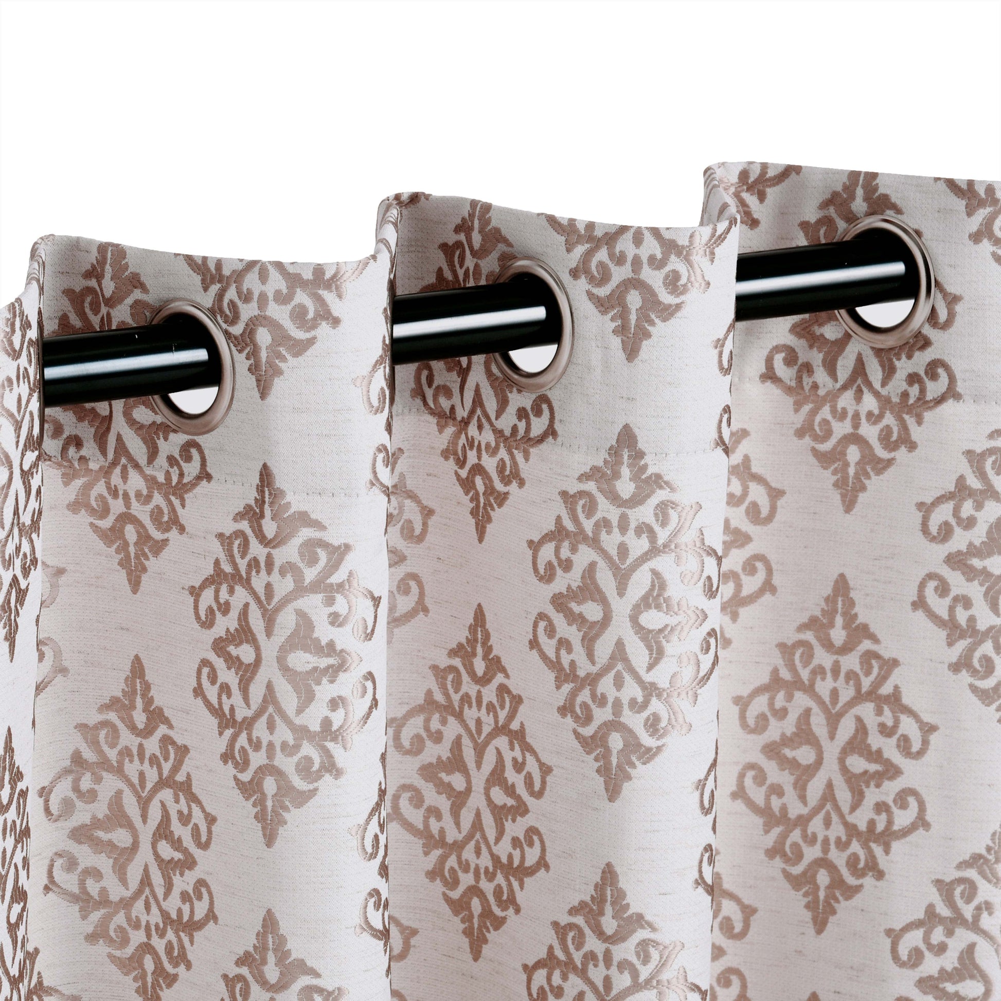 Add a traditional vibe to your windows with our Venetian Damask Curtain Set. This beautiful panel duo features a regal Venetian damask pattern with a jacquard weave. Each curtain panel has a distinct rustic detailing throughout, giving these window accents a more natural look and feel. Crafted from quality 100% polyester and complete with a polished, stainless grommet header, this set is modern in design and easy to install.