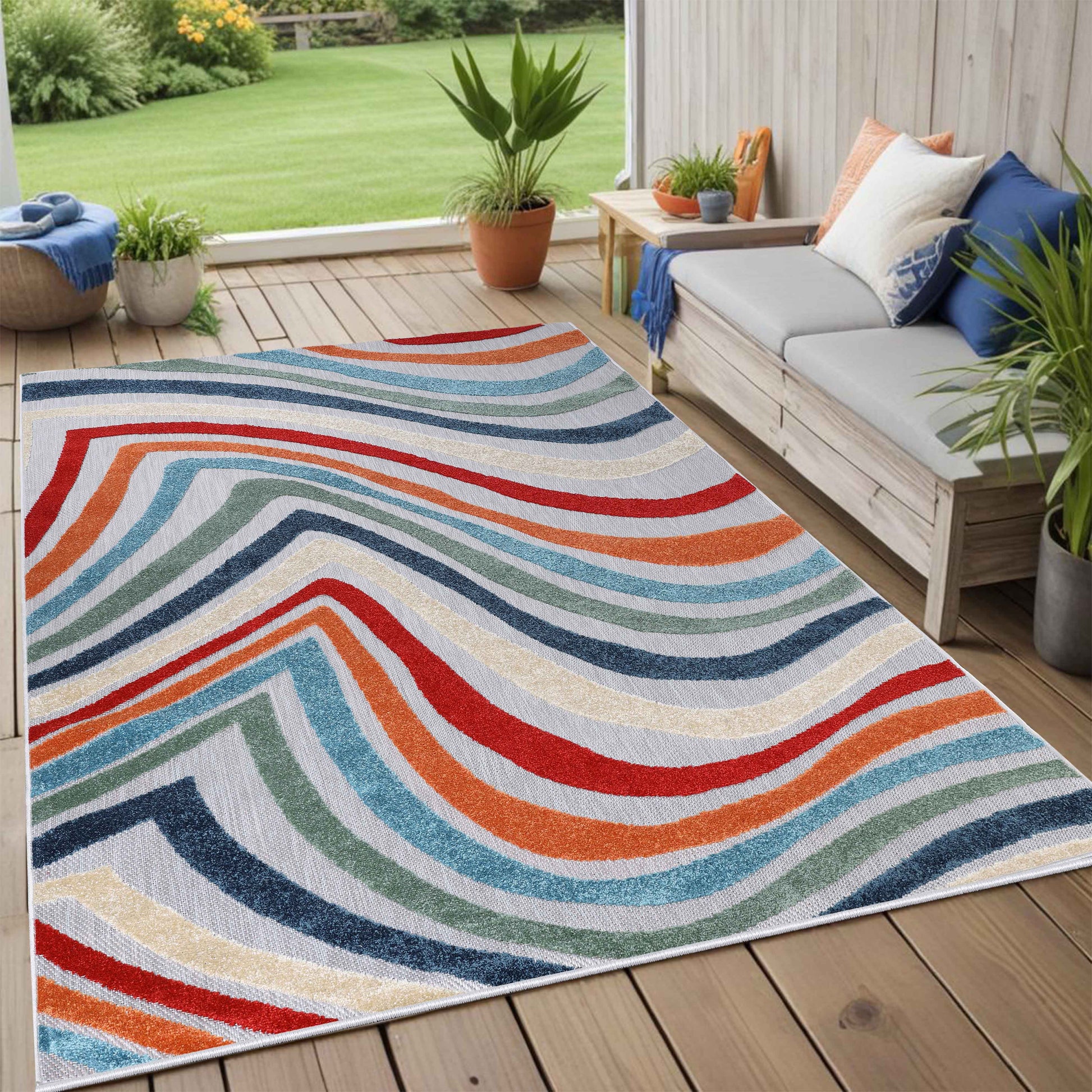 Bring a relaxed and calming style to your floors with the Wave Indoor Outdoor Area Rug. Made with durable and weather-resistant polypropylene, this rug can handle the most high-traffic areas of your home or yard. Featuring a contemporary take on the classic striped design, this wavy pattern rug is the perfect accent piece. This rug has a hardwearing woven design that is ideal for any room inside or outside the home. For outdoor use, this rug will transform your deck, poolside or patio into a great entertaining space.